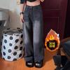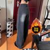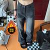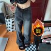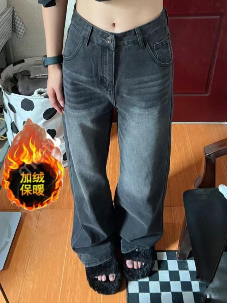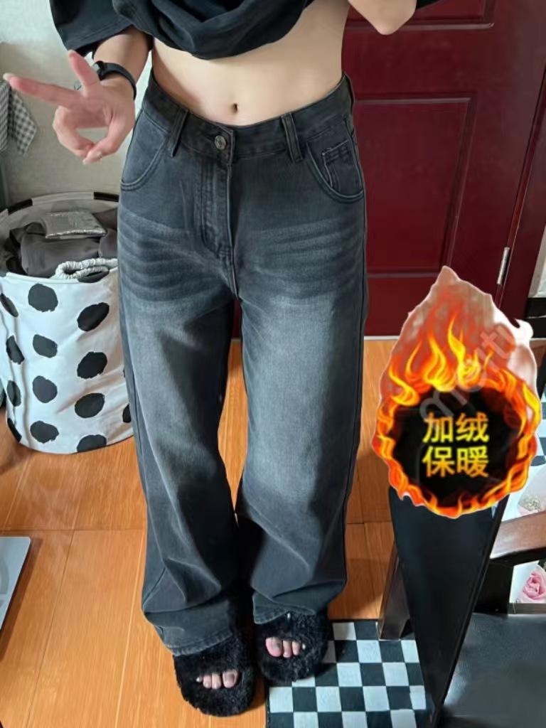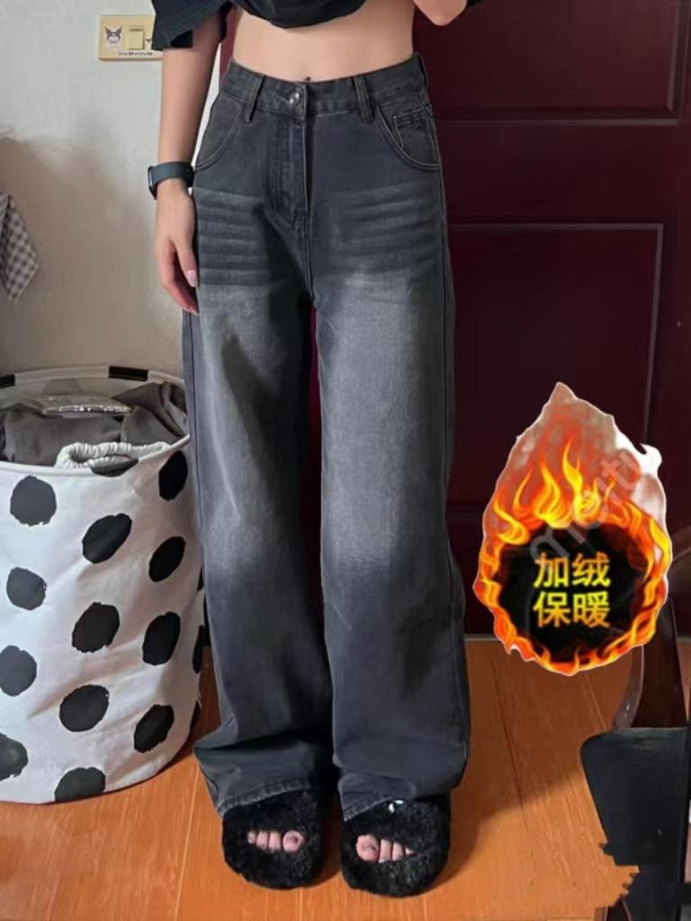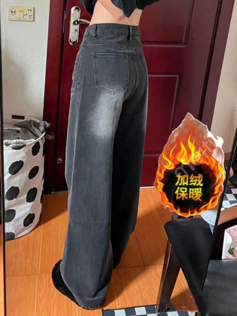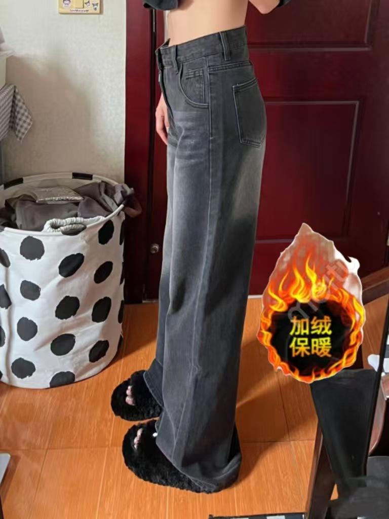 Gordita mm jeans de talla grande mujer otoño e invierno más terciopelo negro gris cintura alta pantalones de pierna recta figura de pera adelgazantes pierna ancha pantalones largos