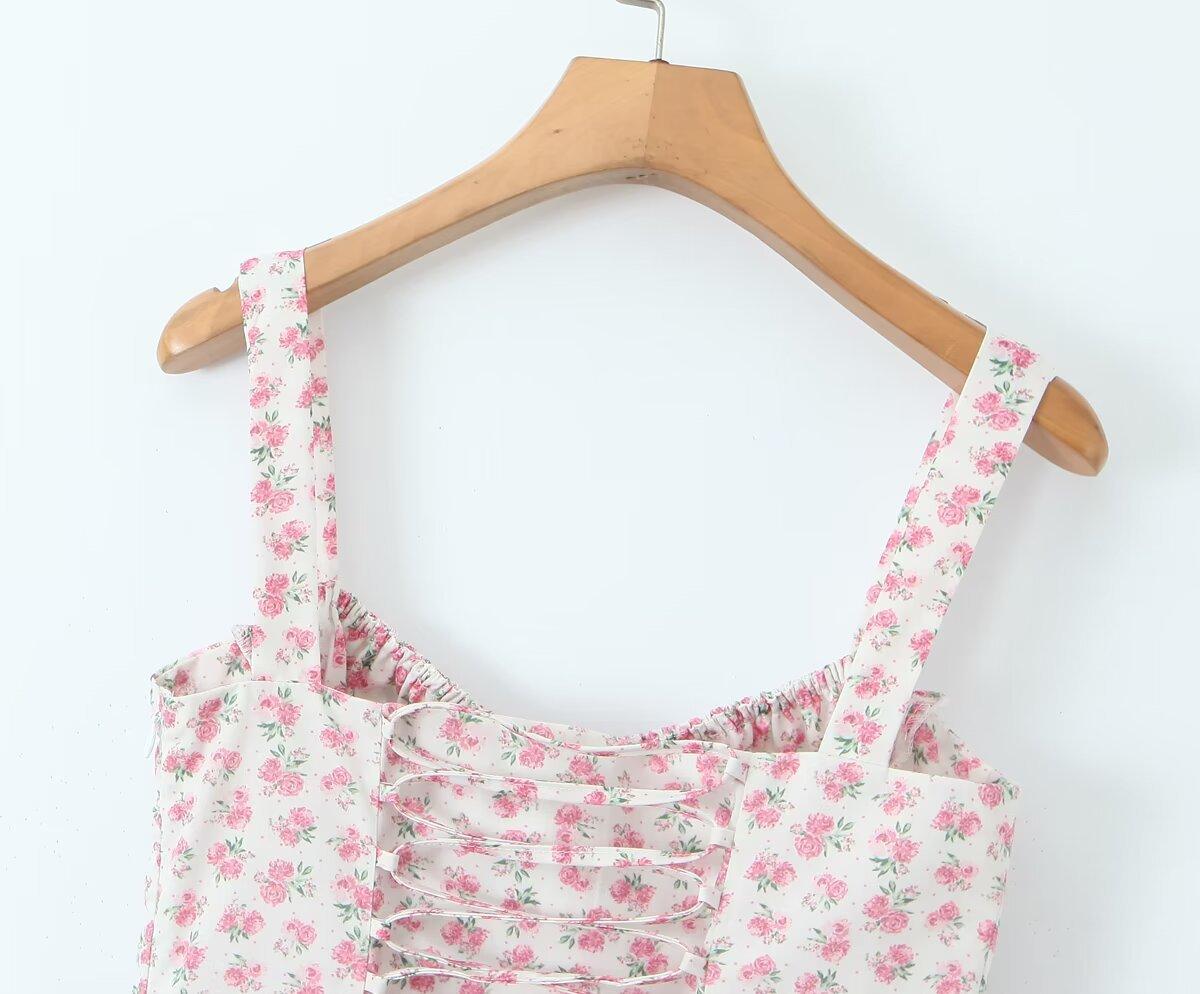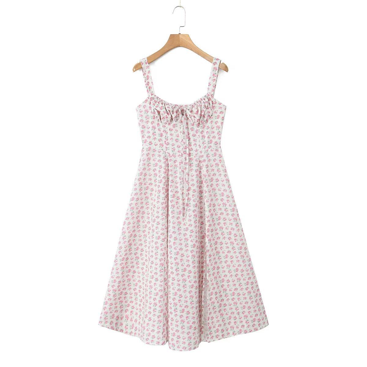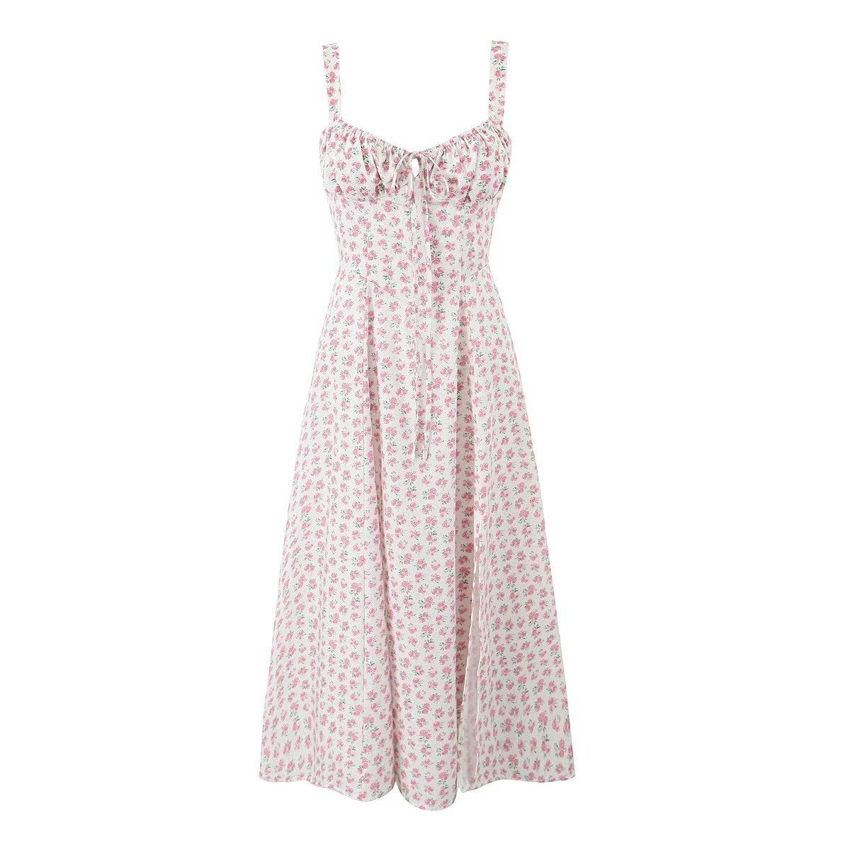 Estilo Francés Estilo Deseo Puro Estilo Pastoral Floral Banda con Cordón Cintura Ceñida Abertura Vestido de Tirantes para Vacaciones Vestido de Hora del Té para Mujer
