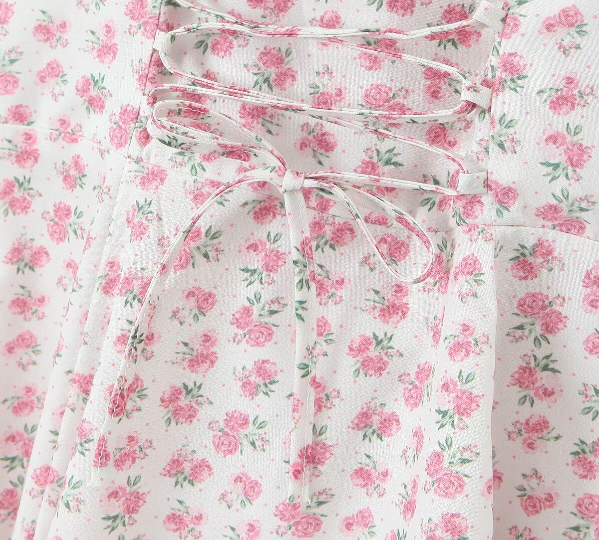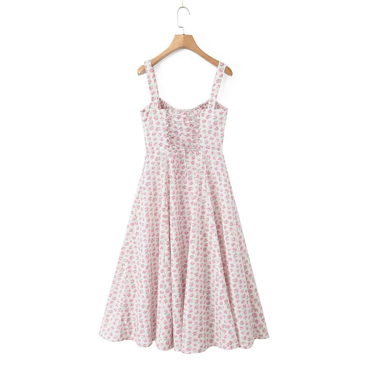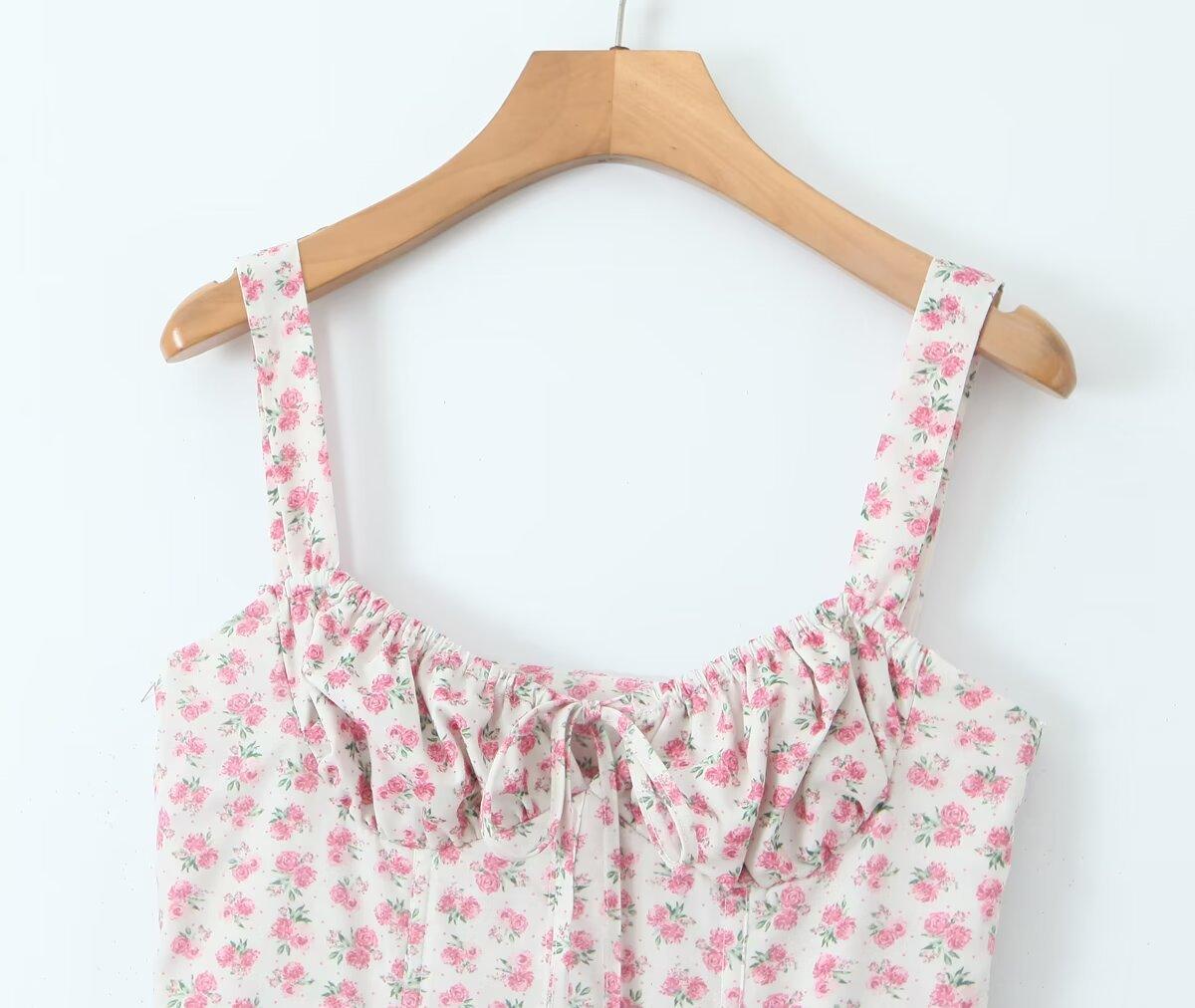 Estilo Francés Estilo Deseo Puro Estilo Pastoral Floral Banda con Cordón Cintura Ceñida Abertura Vestido de Tirantes para Vacaciones Vestido de Hora del Té para Mujer