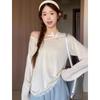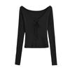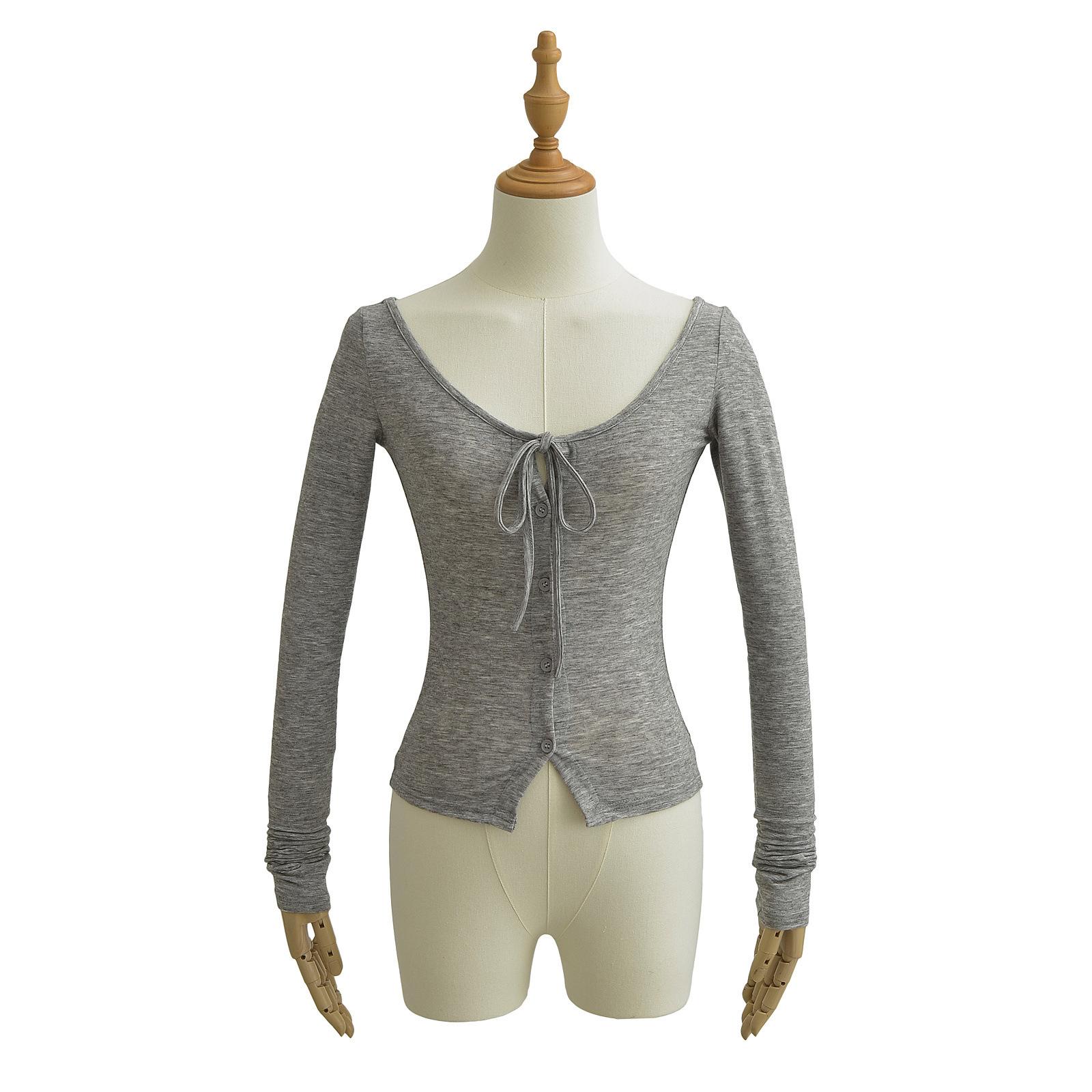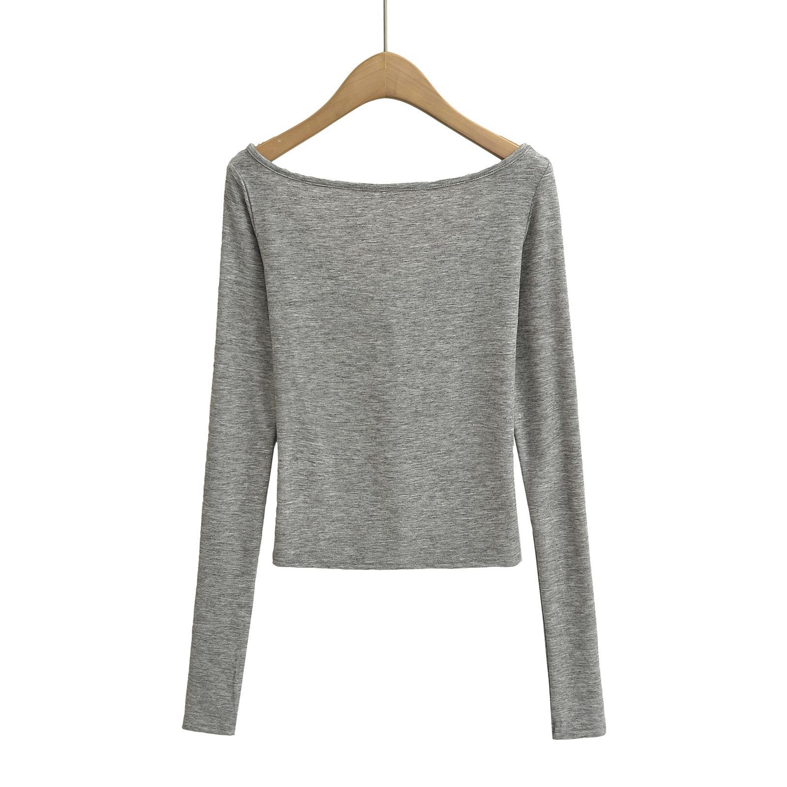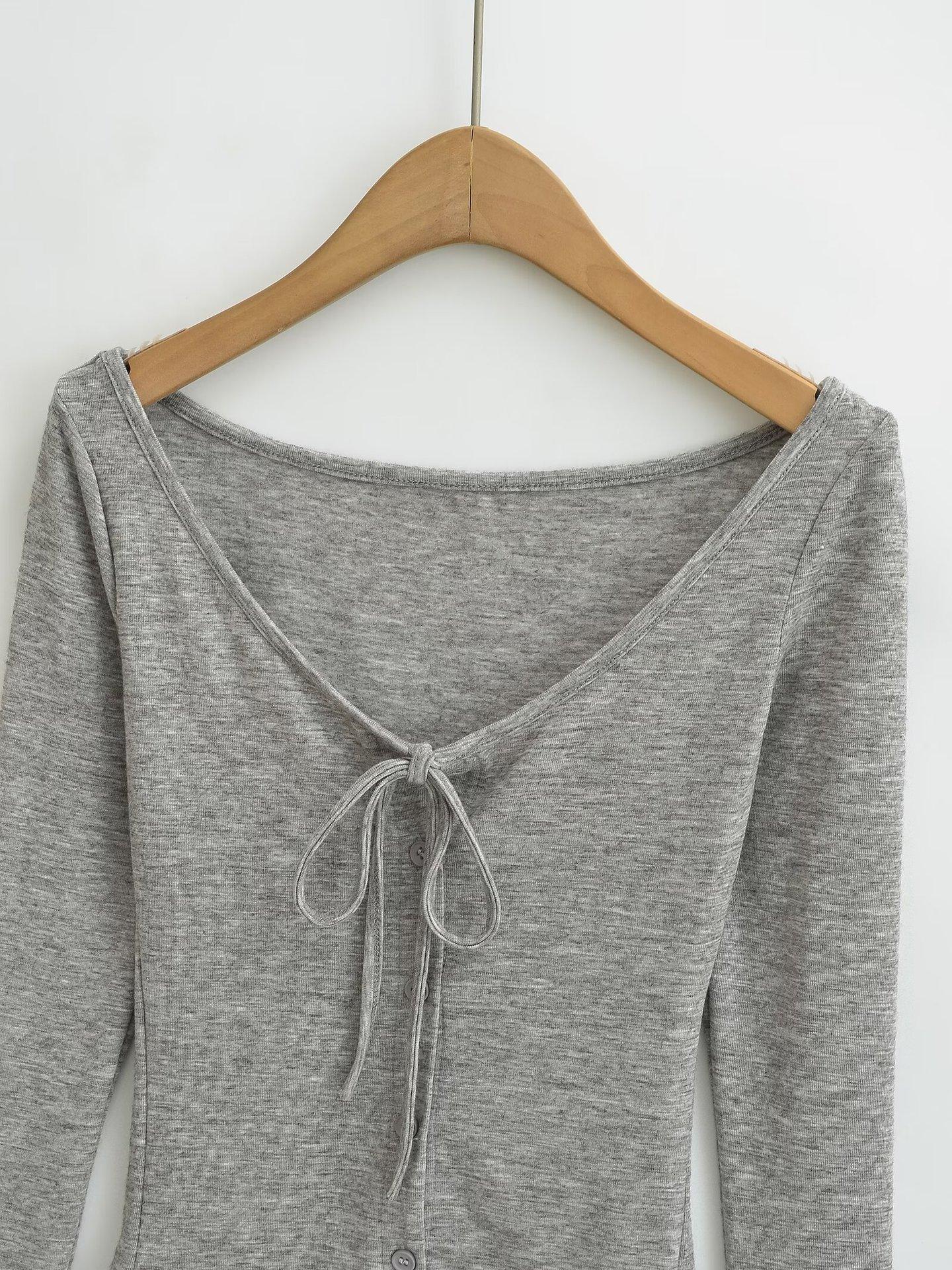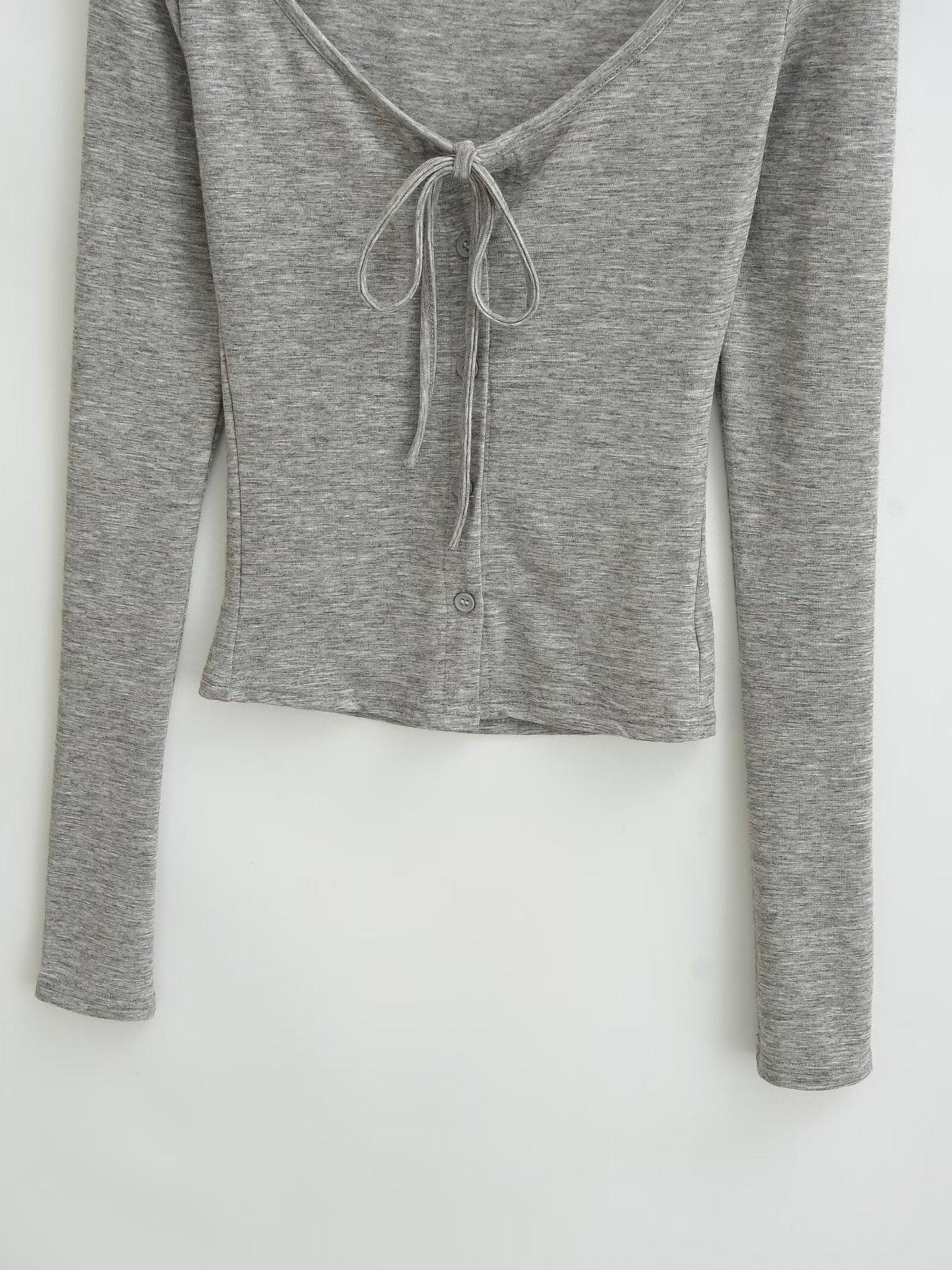 Estilo Deseo Puro Cuello en V con Cordones Manga Larga Camiseta Base para Mujer Otoño Chica Picante Ropa Casual Clavícula Sexy Camiseta Top para Mujer