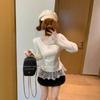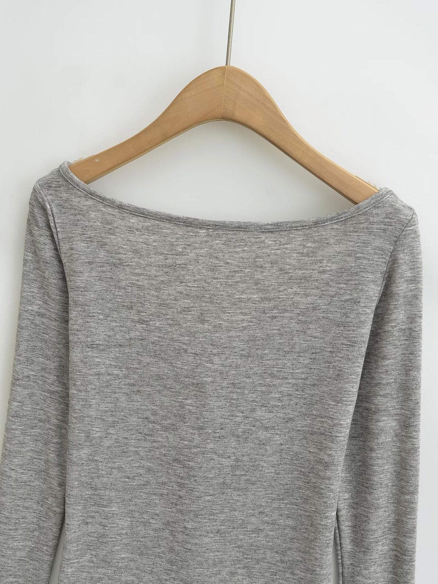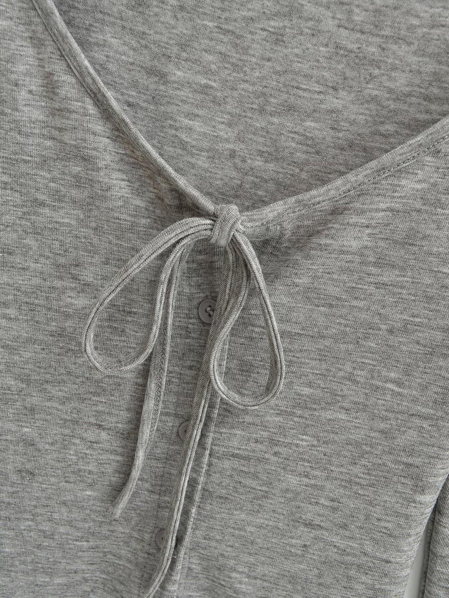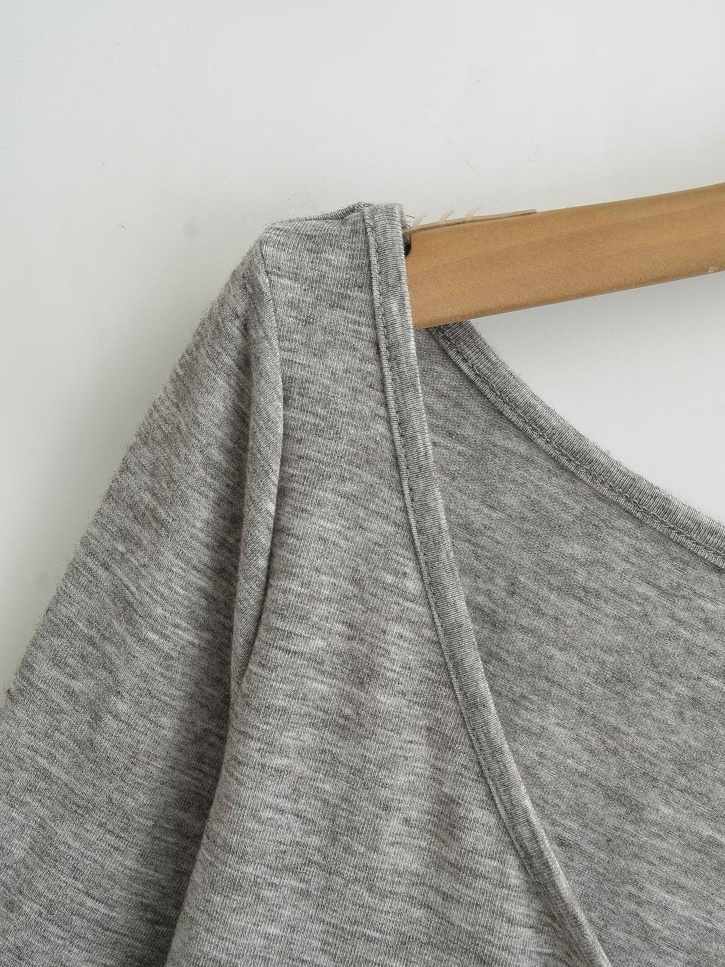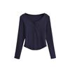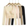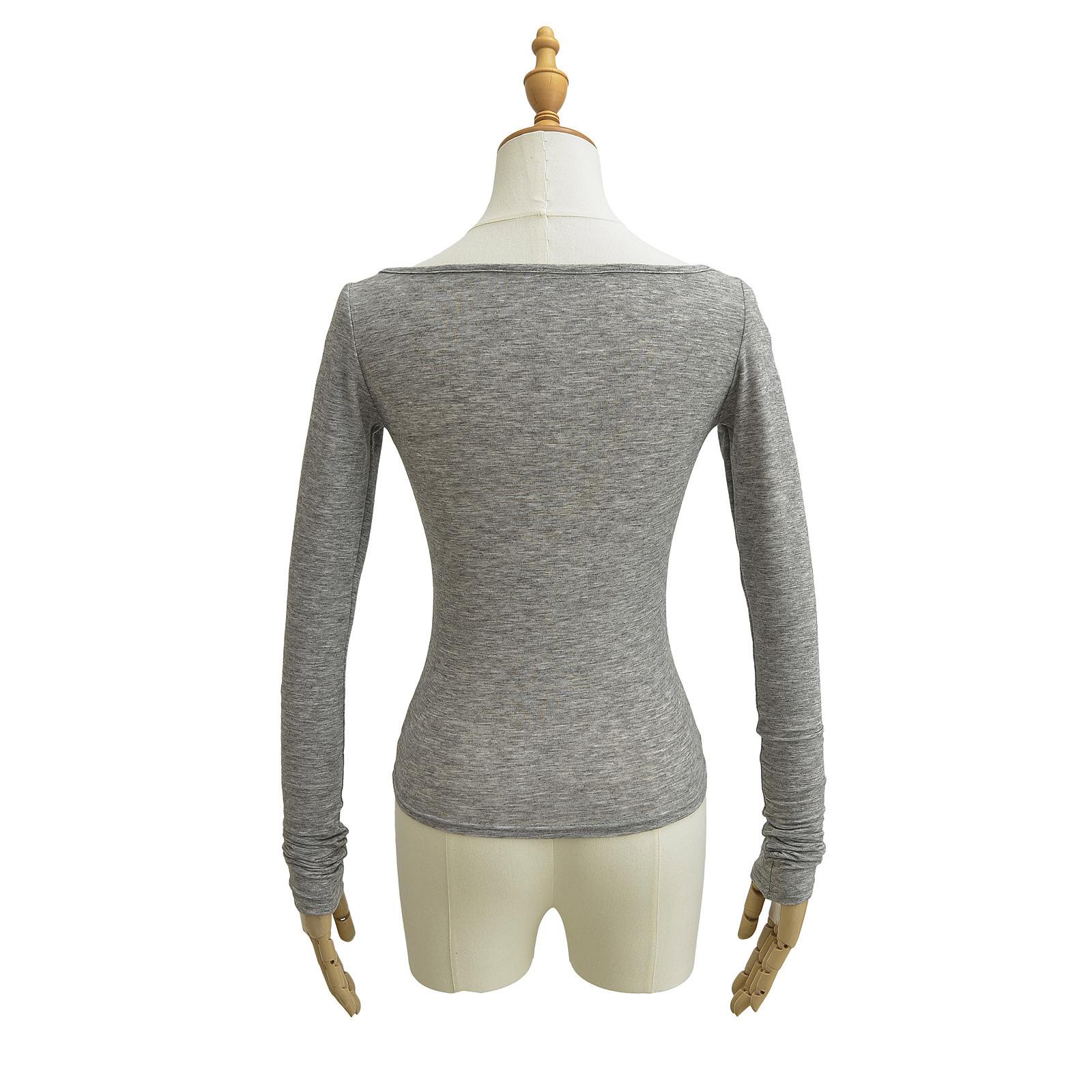 Estilo Deseo Puro Cuello en V con Cordones Manga Larga Camiseta Base para Mujer Otoño Chica Picante Ropa Casual Clavícula Sexy Camiseta Top para Mujer