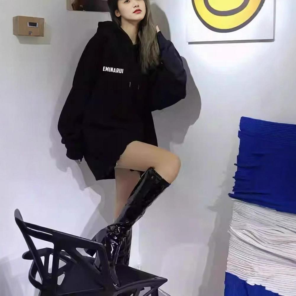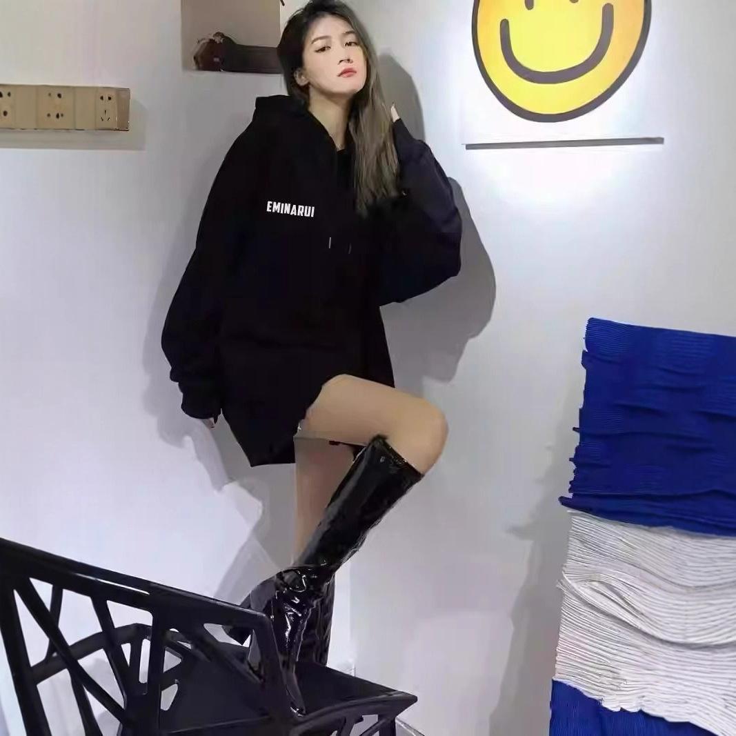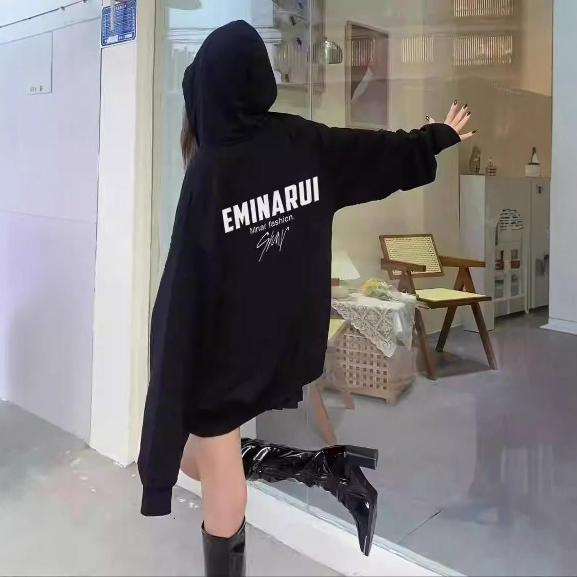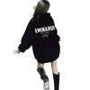 Sudadera con capucha negra para mujer otoño e invierno más terciopelo más gruesa estilo retro americano holgada extragrande estilo perezoso de marca de moda abrigo