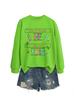 Bright red sweatshirt (black color chart), Bright red sweatshirt (white color chart), Grass green sweatshirt (...