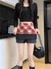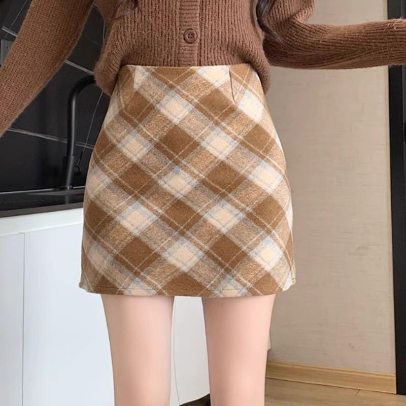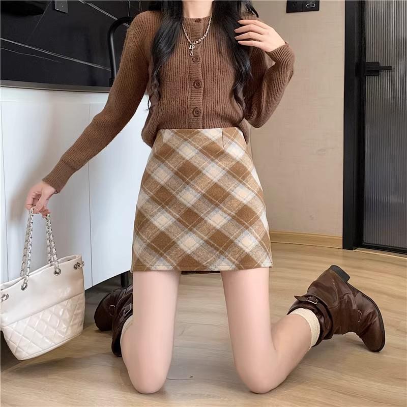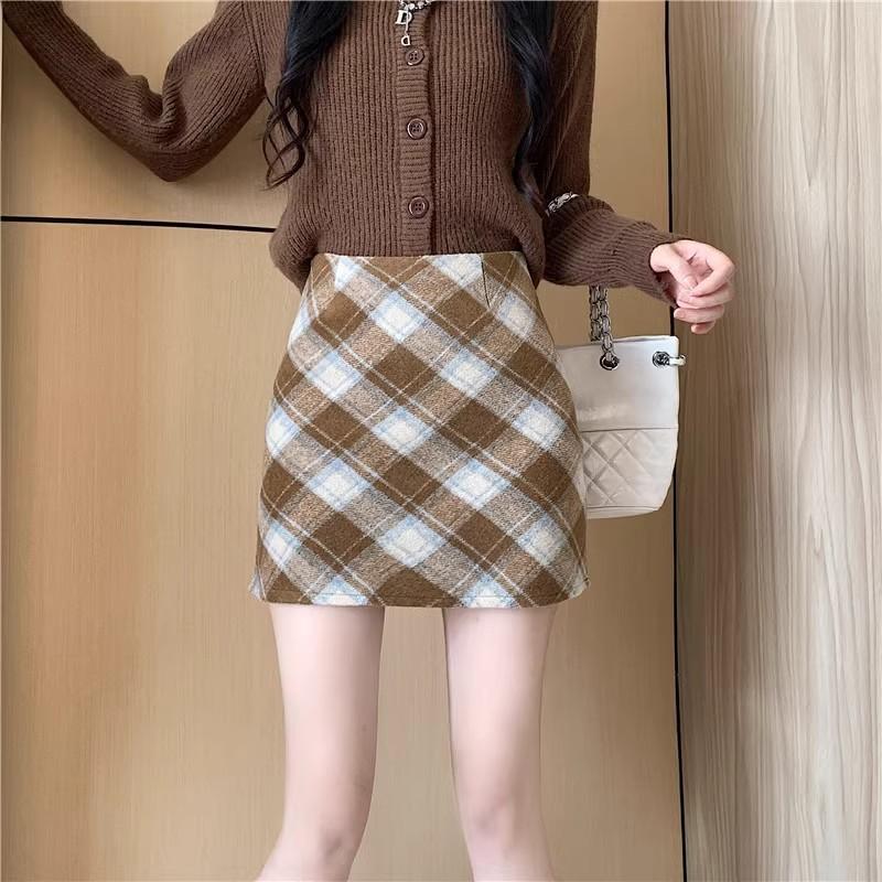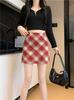 2024 otoño/invierno falda corta acampanada versátil adelgazante diseño de alta gama rojo cintura alta tweed media falda mujeres Sudeste Asiático
