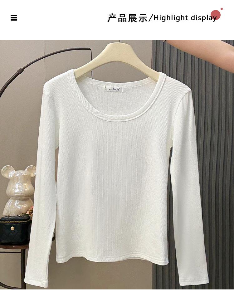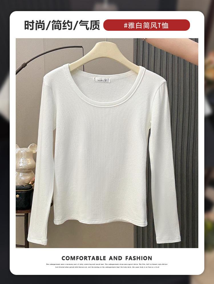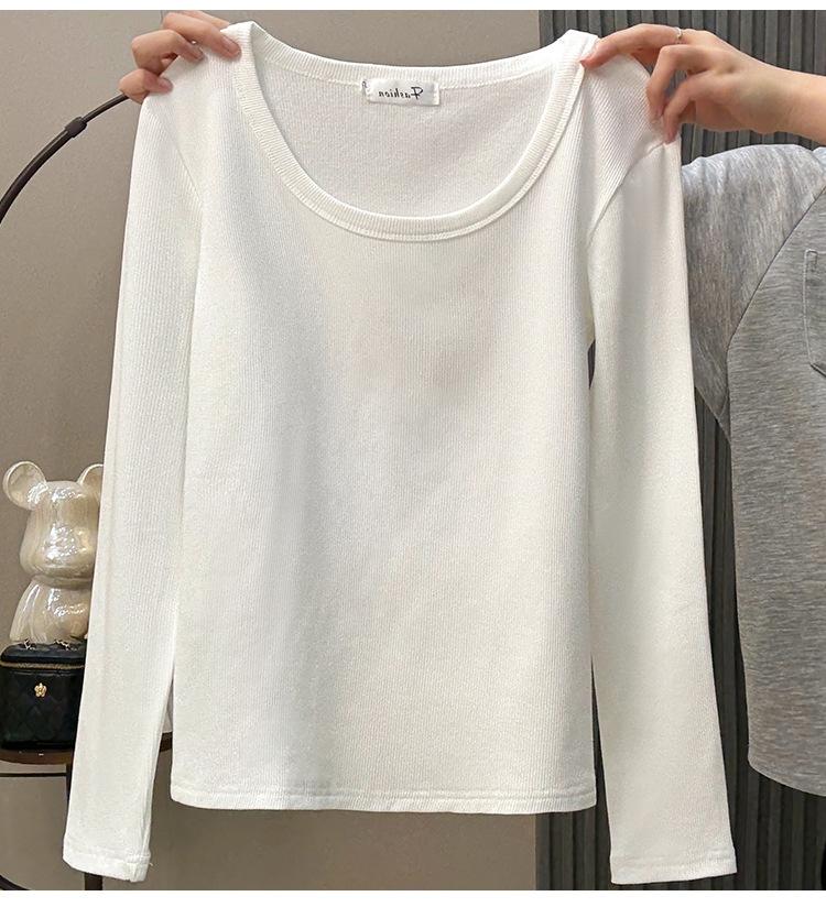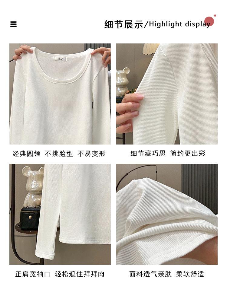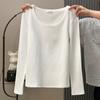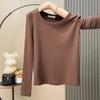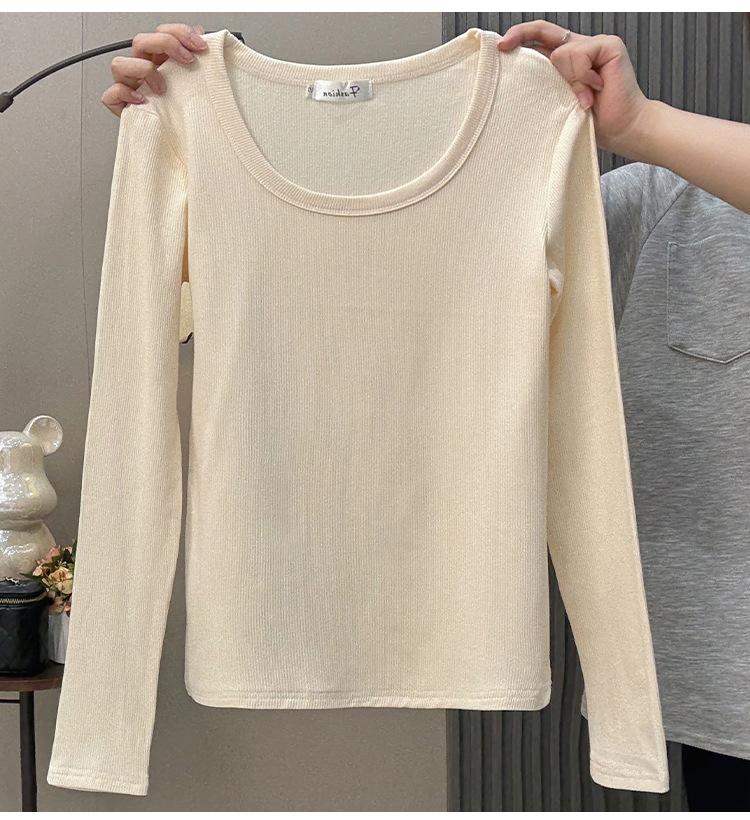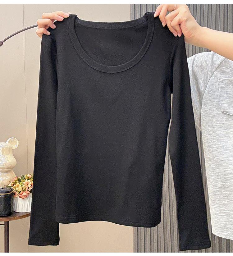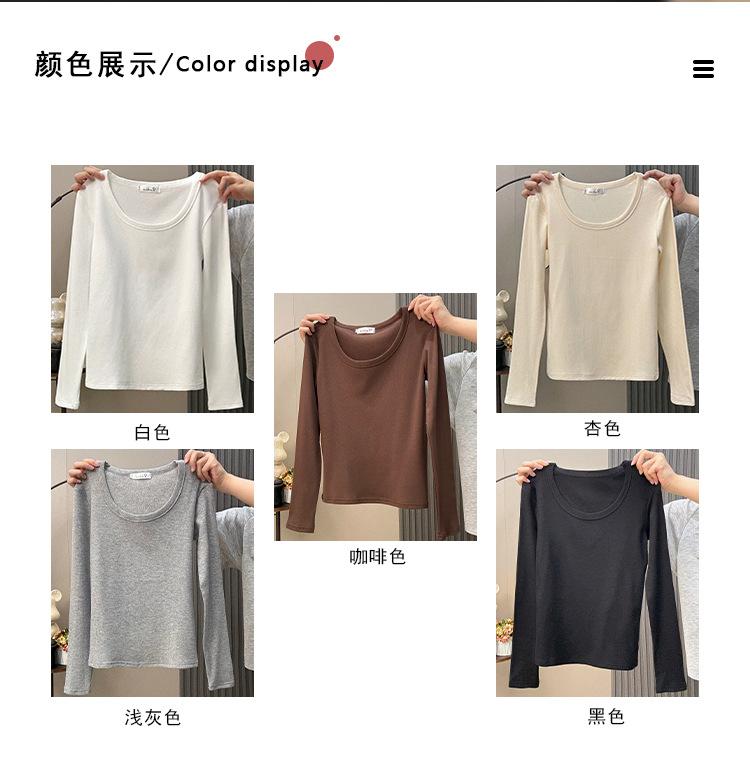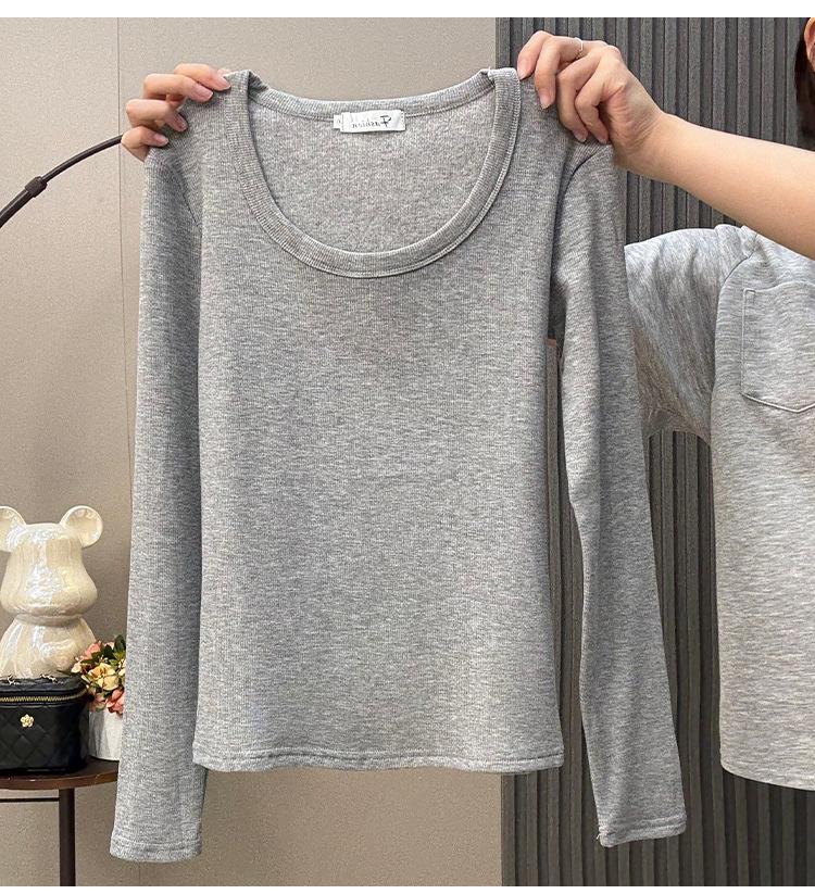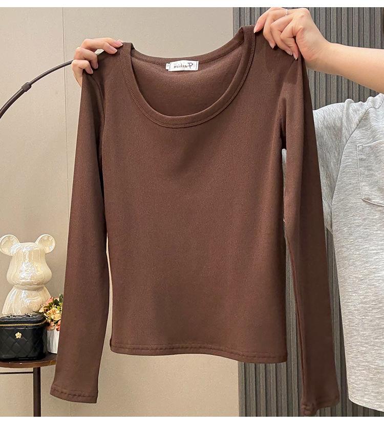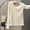 Playera de Manga Larga de Felpa Fina Cepillada para Mujer Otoño/Invierno 2025 Nueva Ajuste Slim Cuello Redondo Capa Base Sencilla Color Sólido Top Interior
