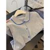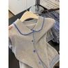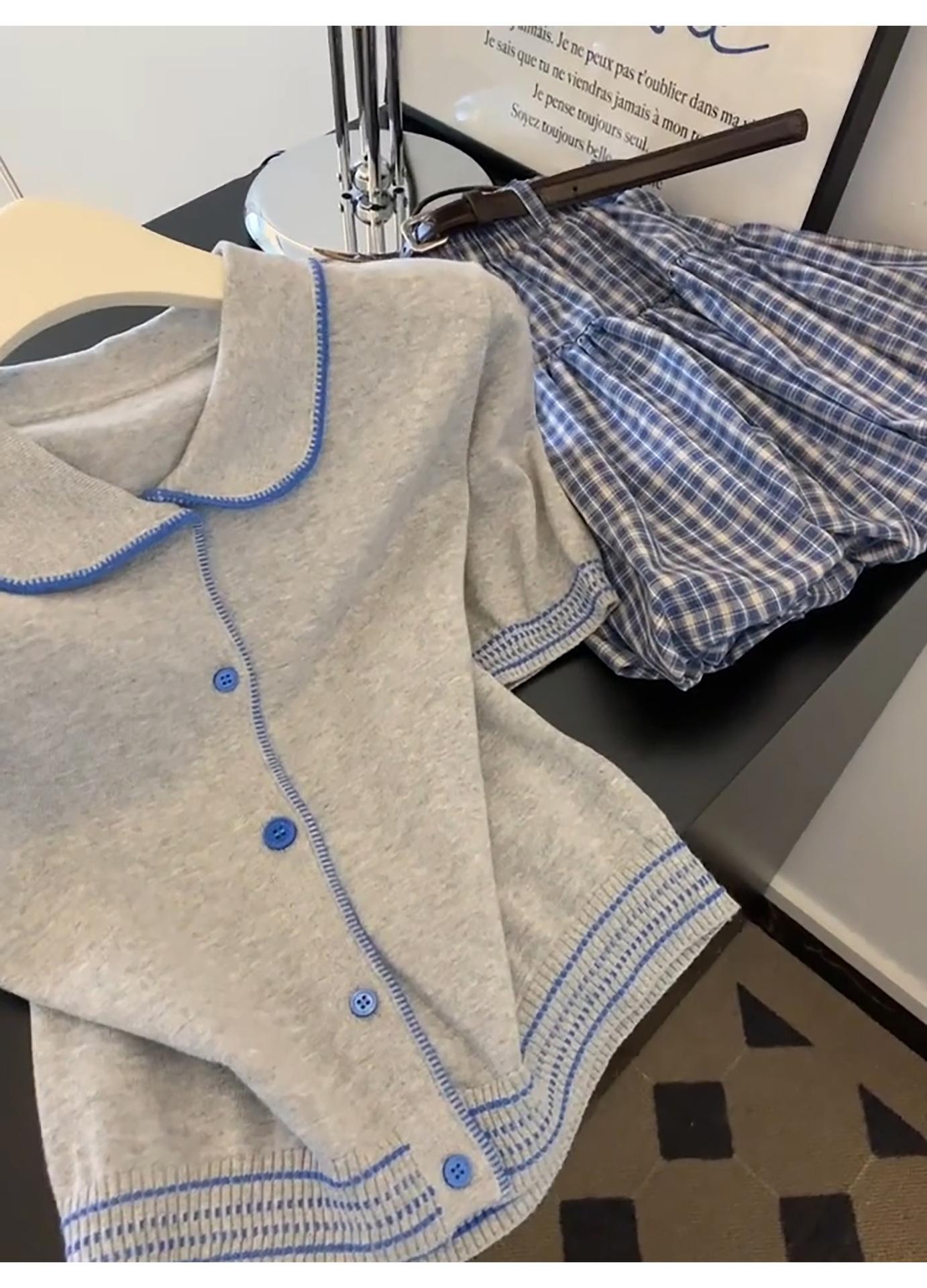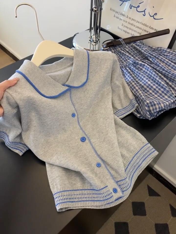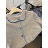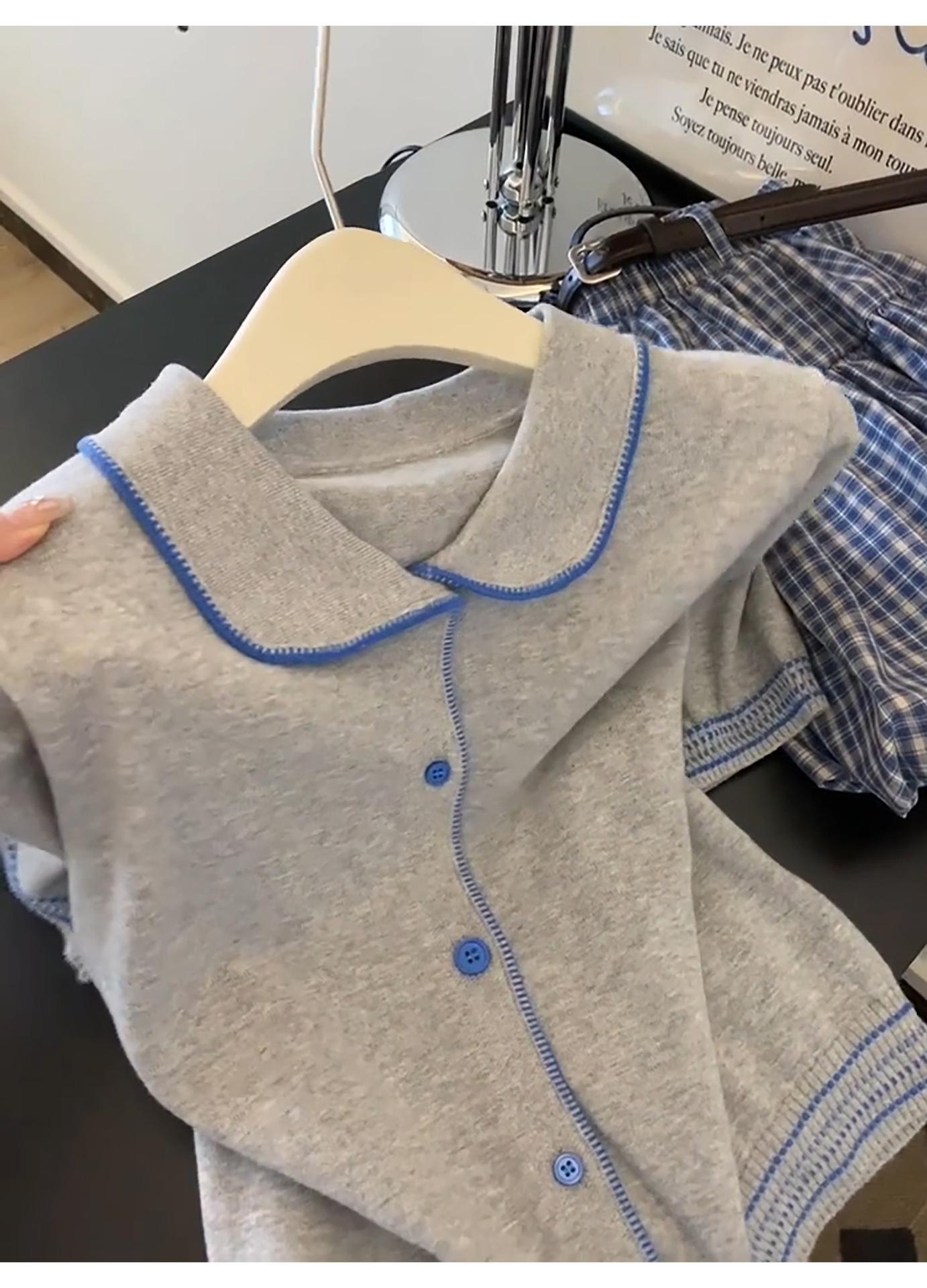 Sentido del Diseño Coreano Polo Cuello Vuelto Bloque de Color Camiseta Manga Corta Verano para Mujer Nueva Adelgazante Versátil Hombro Recto Top de Punto