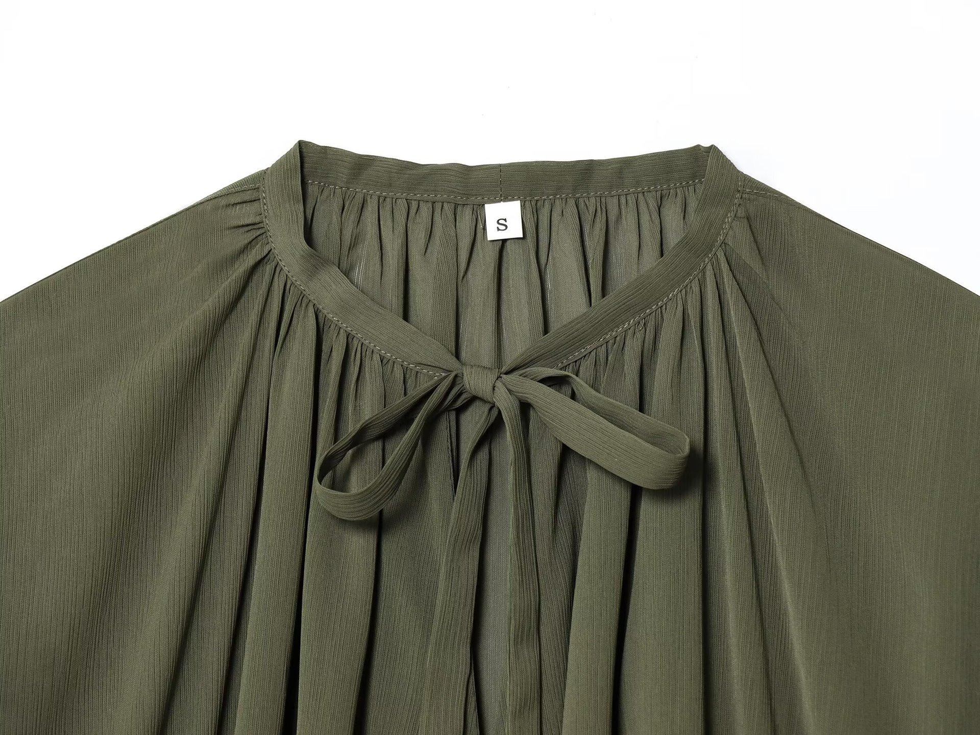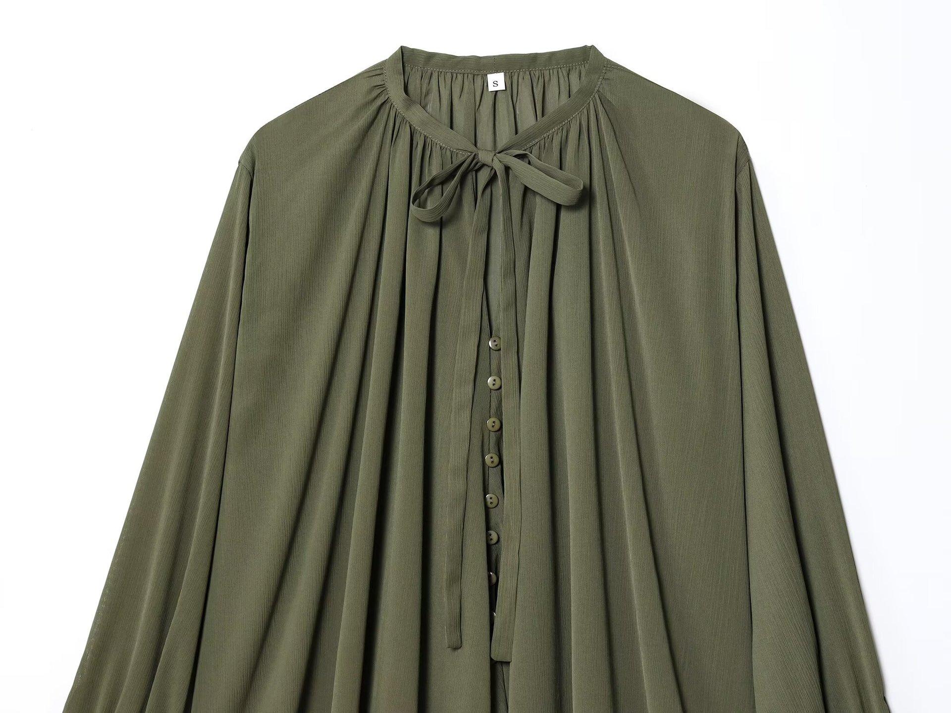 Moda femenina europea y americana transfronteriza AliExpress más vendido diseño elegante temperamento camisa de manga larga con lazo