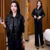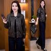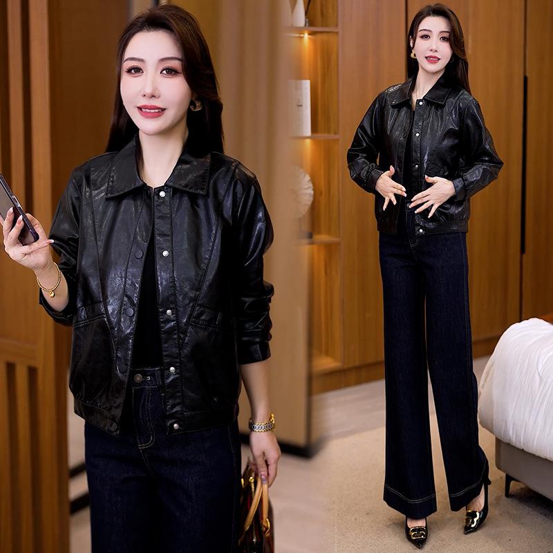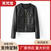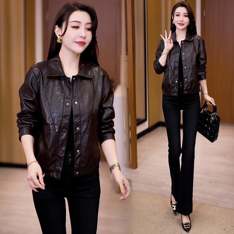 Chaqueta Corta de Cuero para Mujer 2025 Otoño Nuevo Estilo Coreano Moda Adelgazante Petite Doble Botonadura Casual Chaqueta de Cuero PU