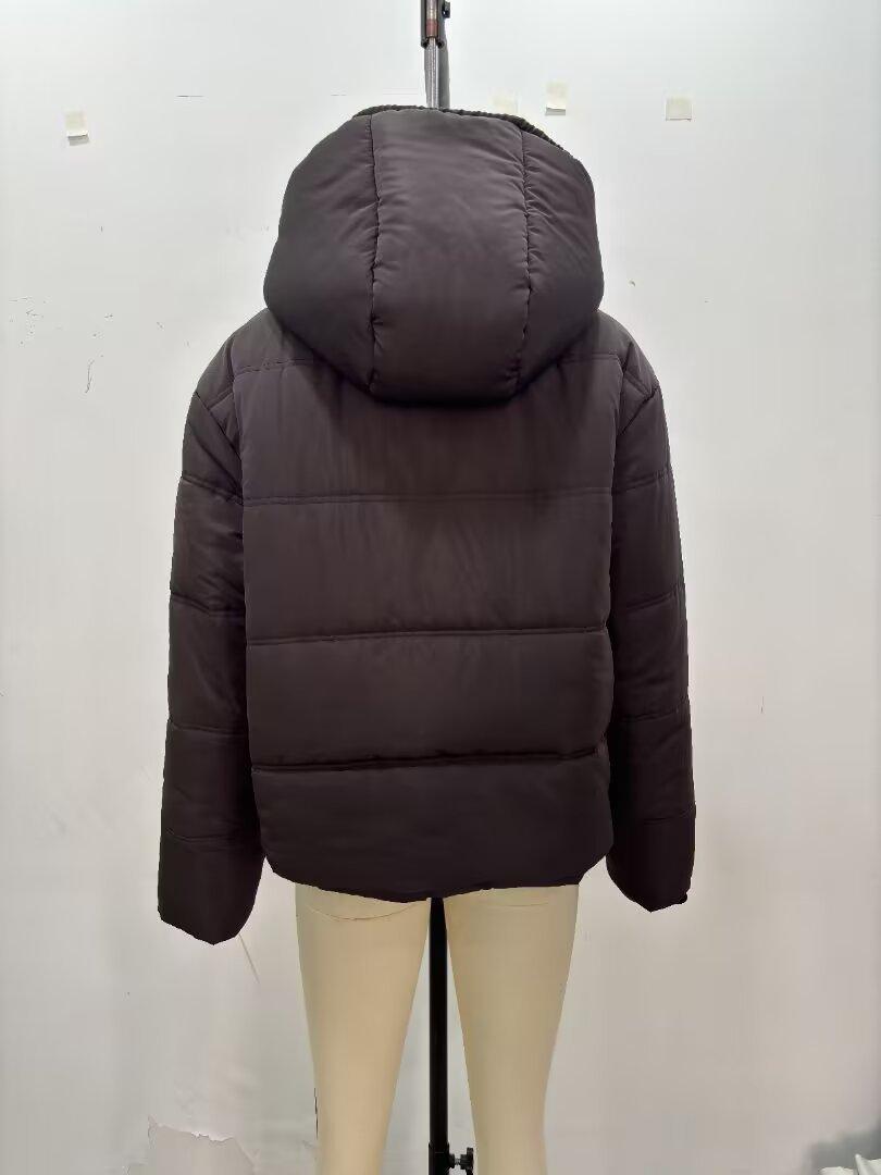 Amazon Europeo y Americano AliExpress Estilo Caliente Tendencia de Moda Versátil Estilo Casual Chaqueta Corta Acolchada de Algodón con Capucha Chaqueta Gruesa Abrigo