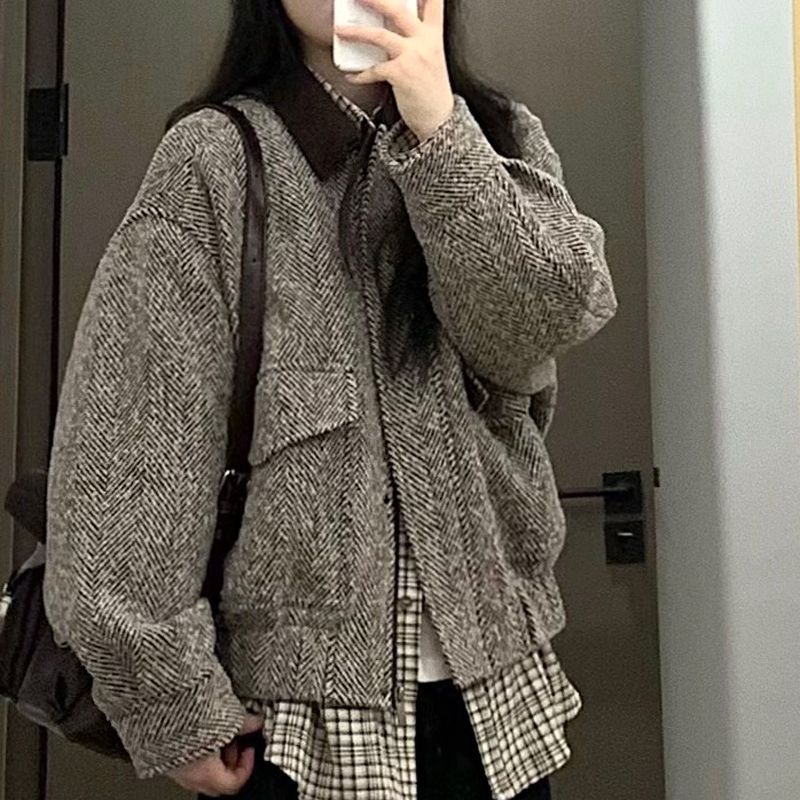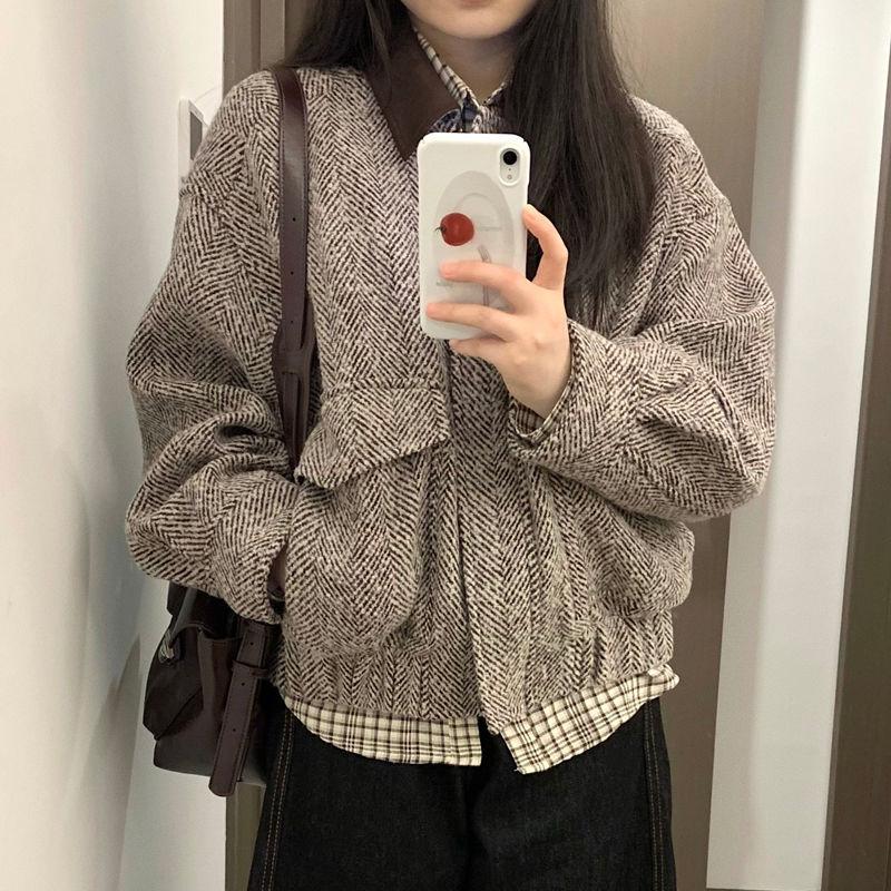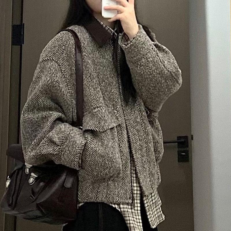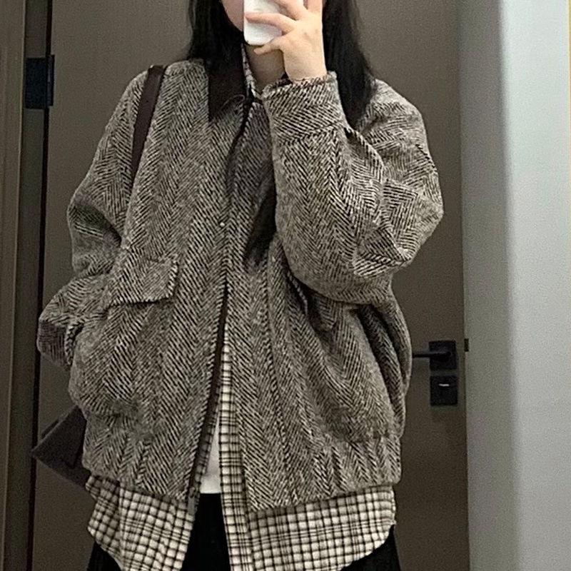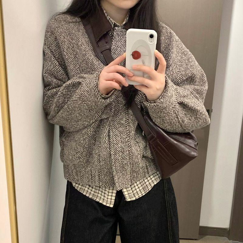 Sentido Otoño Suelto Nuevo Chaqueta de Solapa Abrigo Estudiante Femenina Americano Casual Versátil Moderno Diseño Uniforme de Béisbol Retro