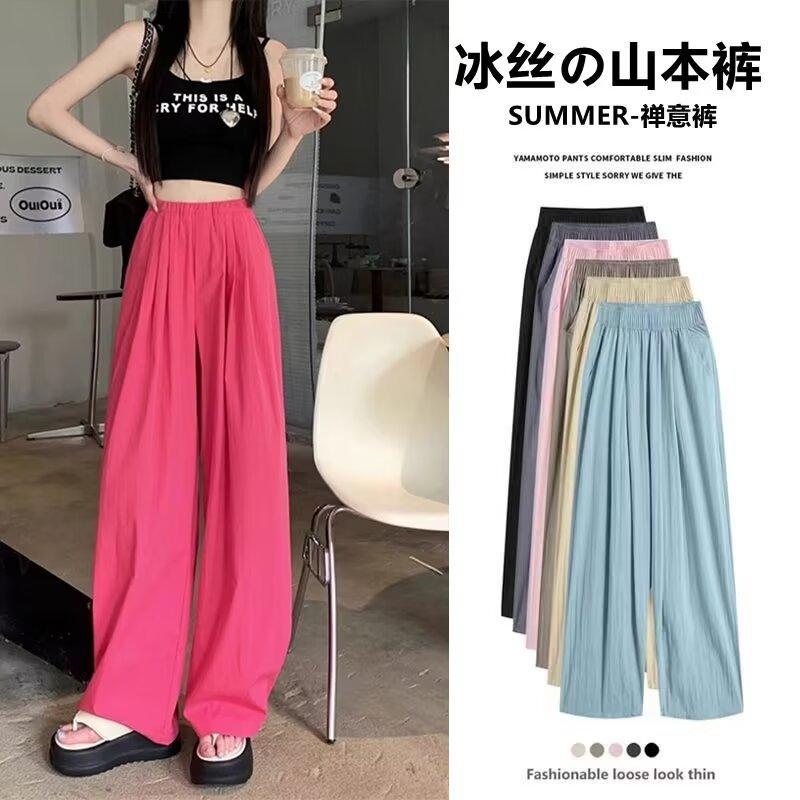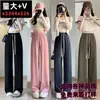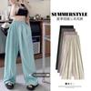 Pantalones casuales holgados de estilo coreano para mujer, pantalón de pierna ancha, fino y combinable, para verano, 2025