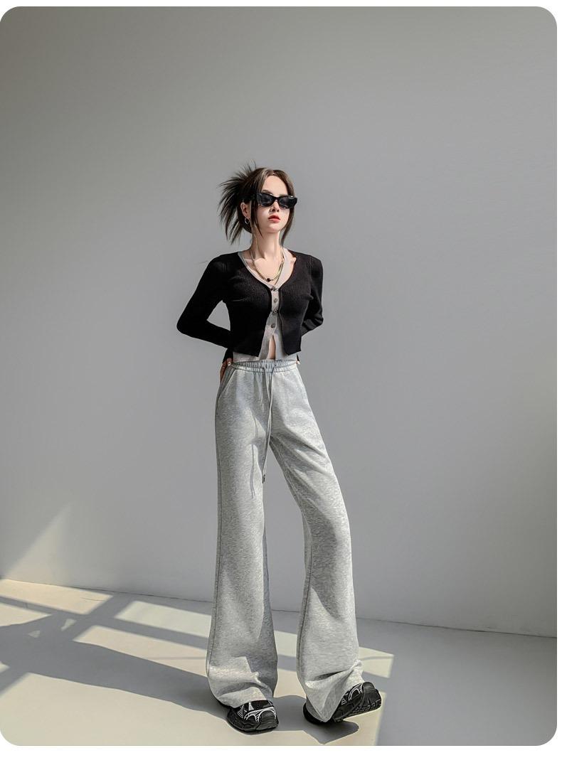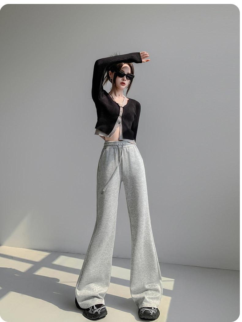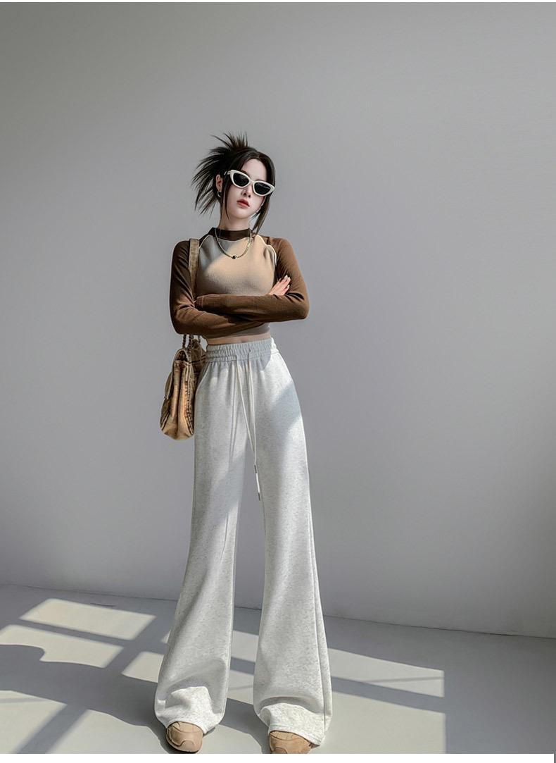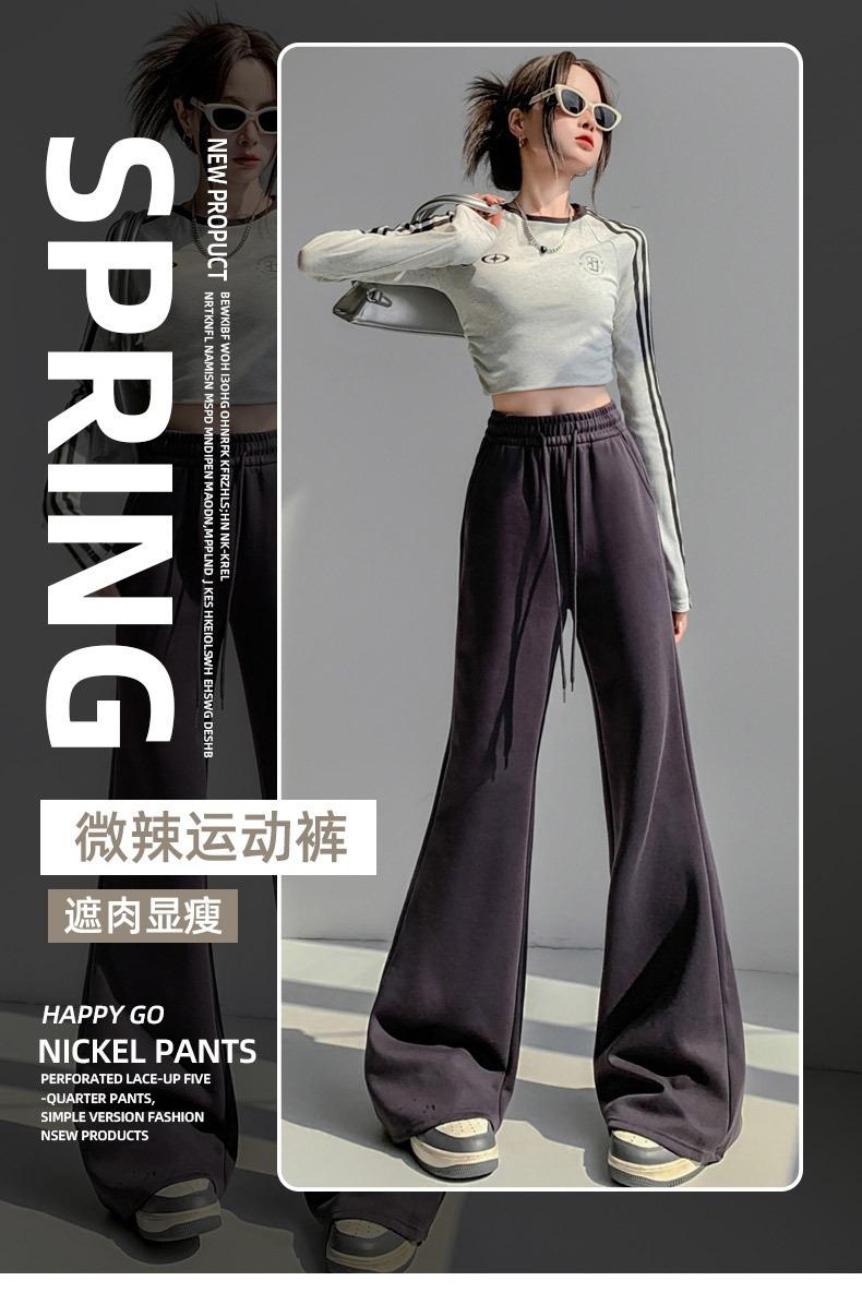 Pantalones de chándal blancos microacampanados para mujer Primavera Otoño 2025 Nuevos Cintura alta Adelgazantes Acampanados Herradura Petite Pantalones de chándal casuales
