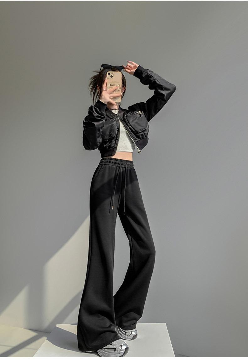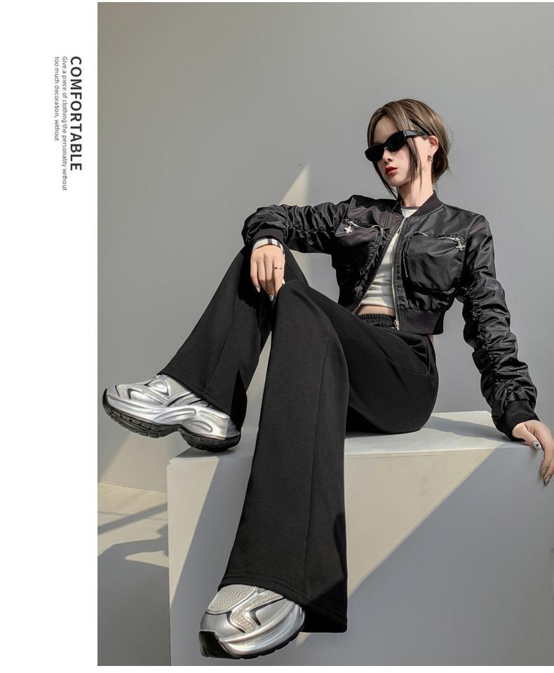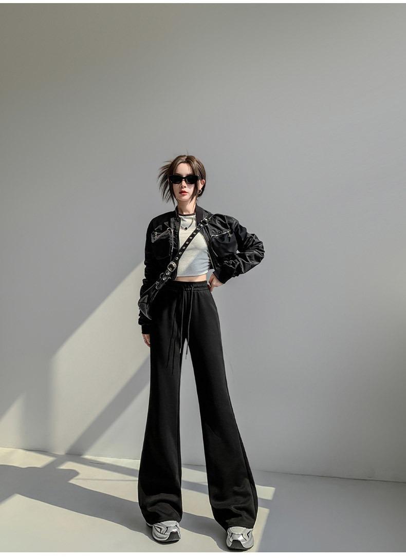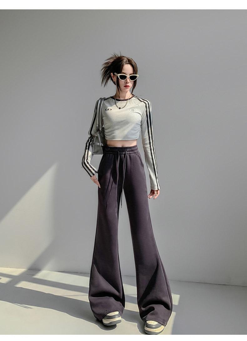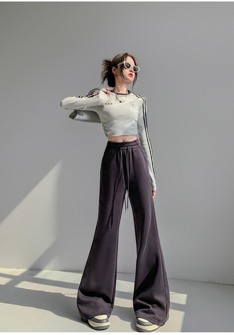 Pantalones de chándal blancos microacampanados para mujer Primavera Otoño 2025 Nuevos Cintura alta Adelgazantes Acampanados Herradura Petite Pantalones de chándal casuales