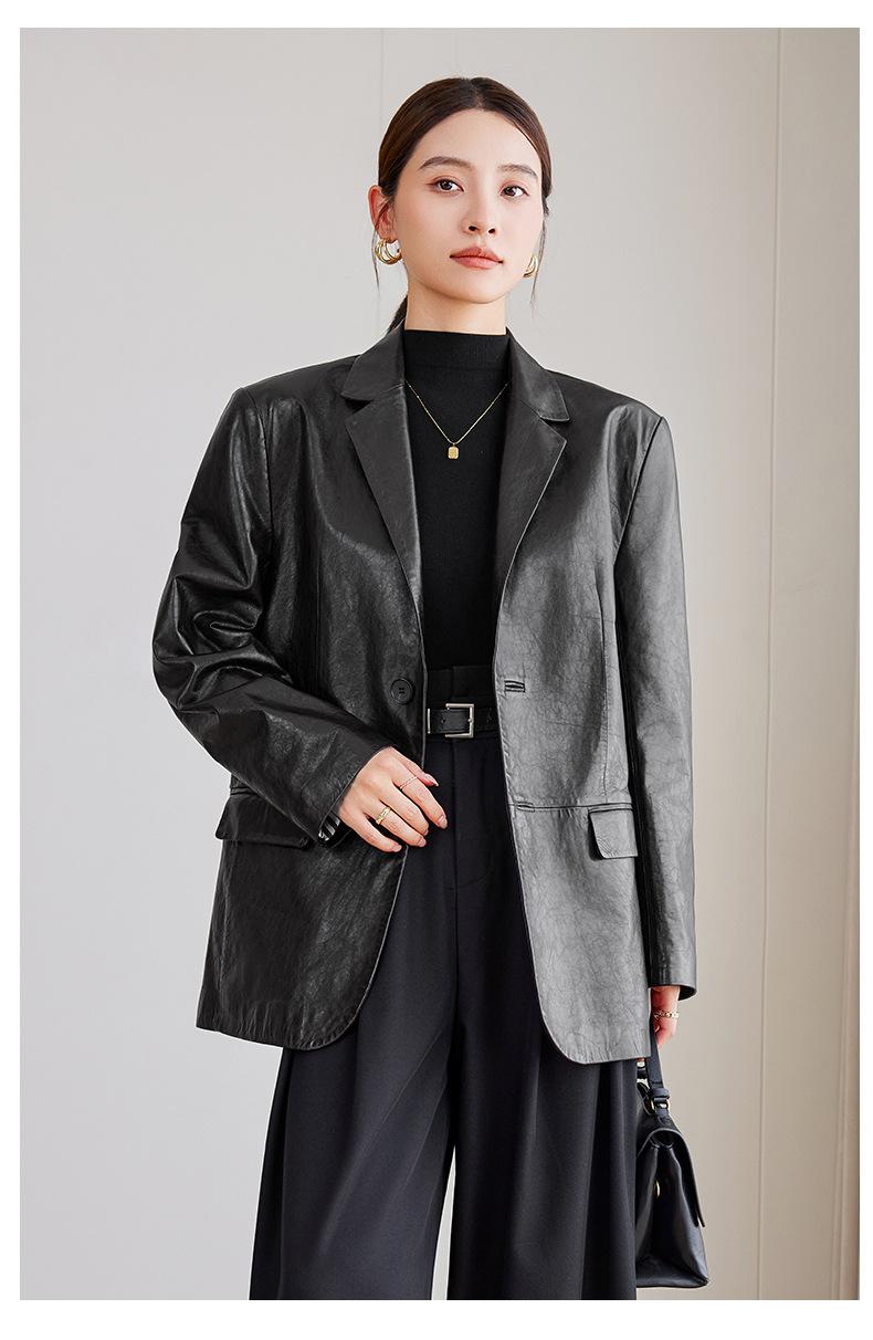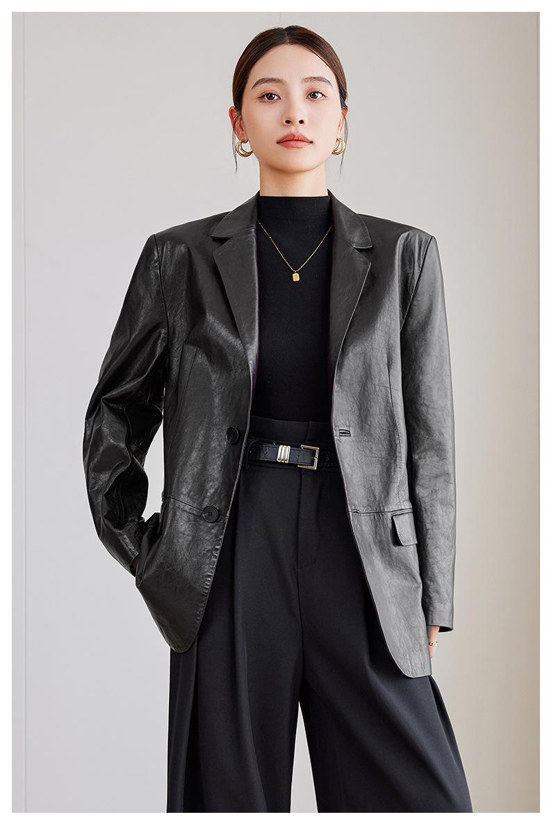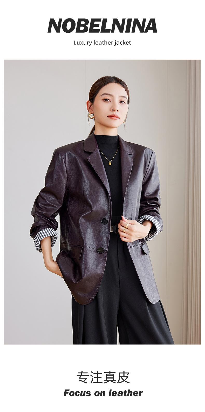 Haining 2025 Otoño Nuevo Cuero Genuino Chaqueta de Cuero Abrigo Traje de Talla Pequeña de Alta Gama Chaqueta de Cuero Genuino para Mujer