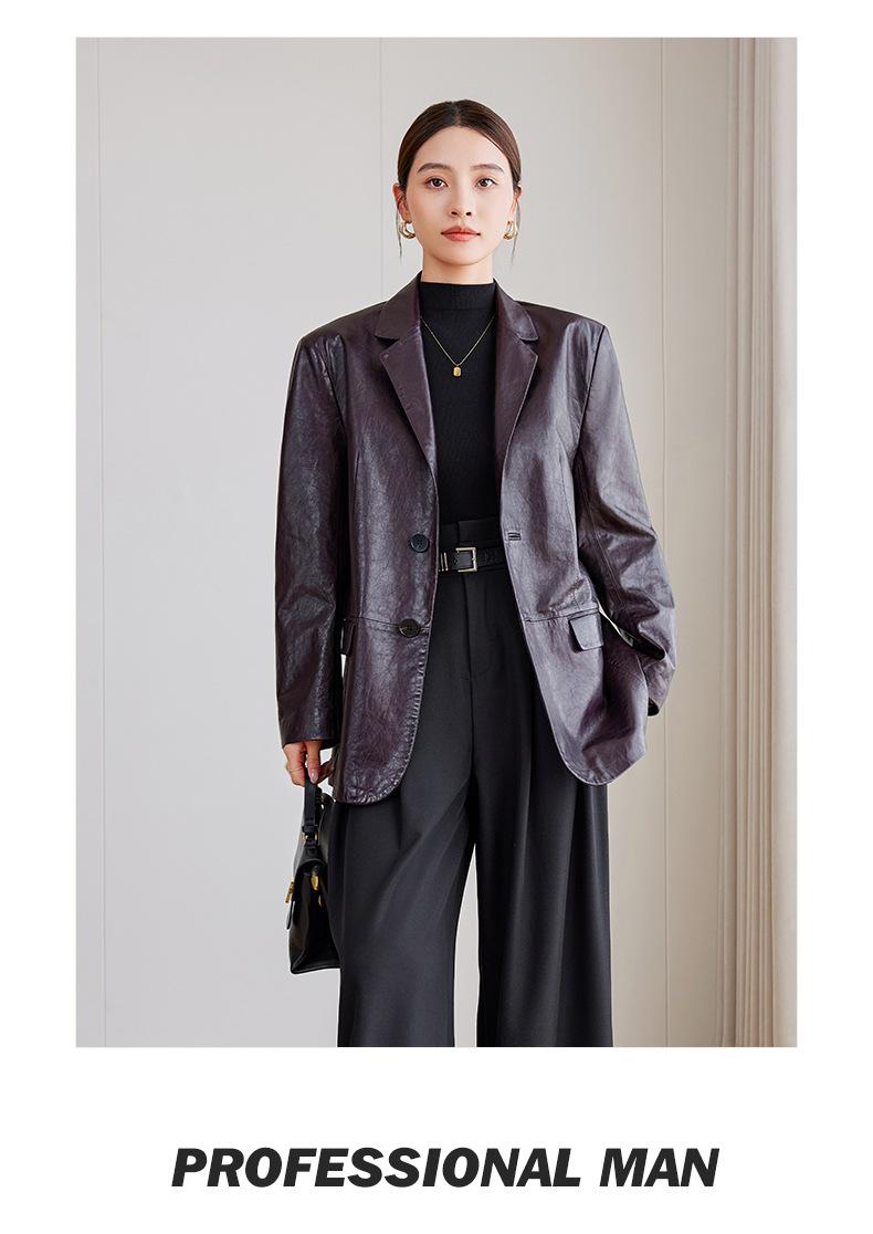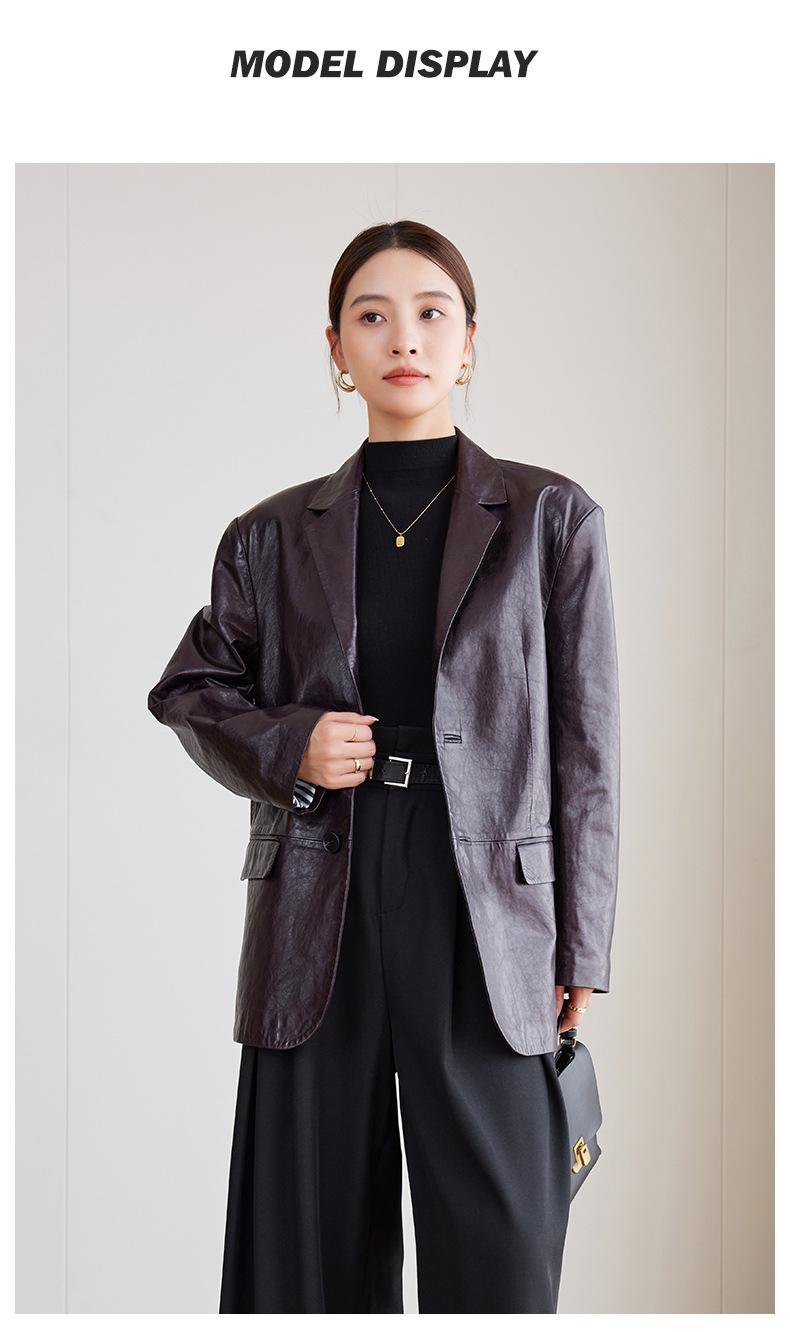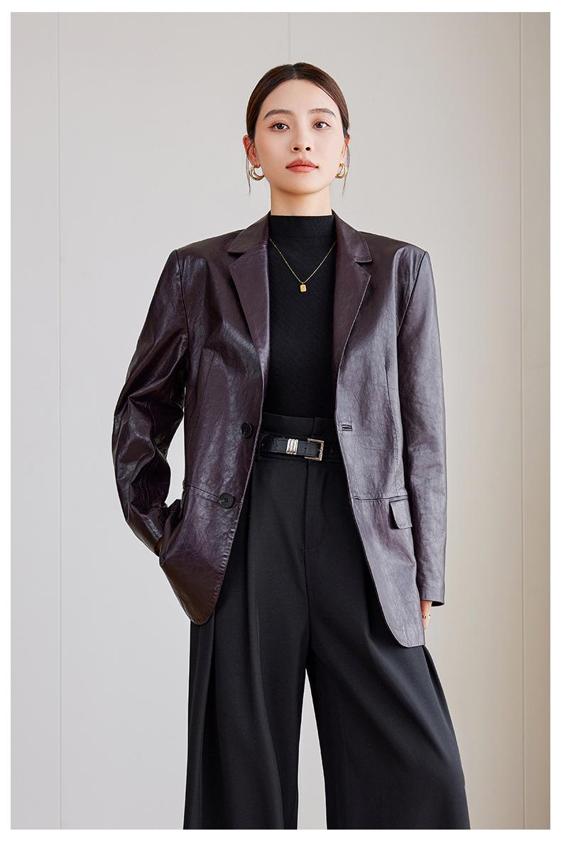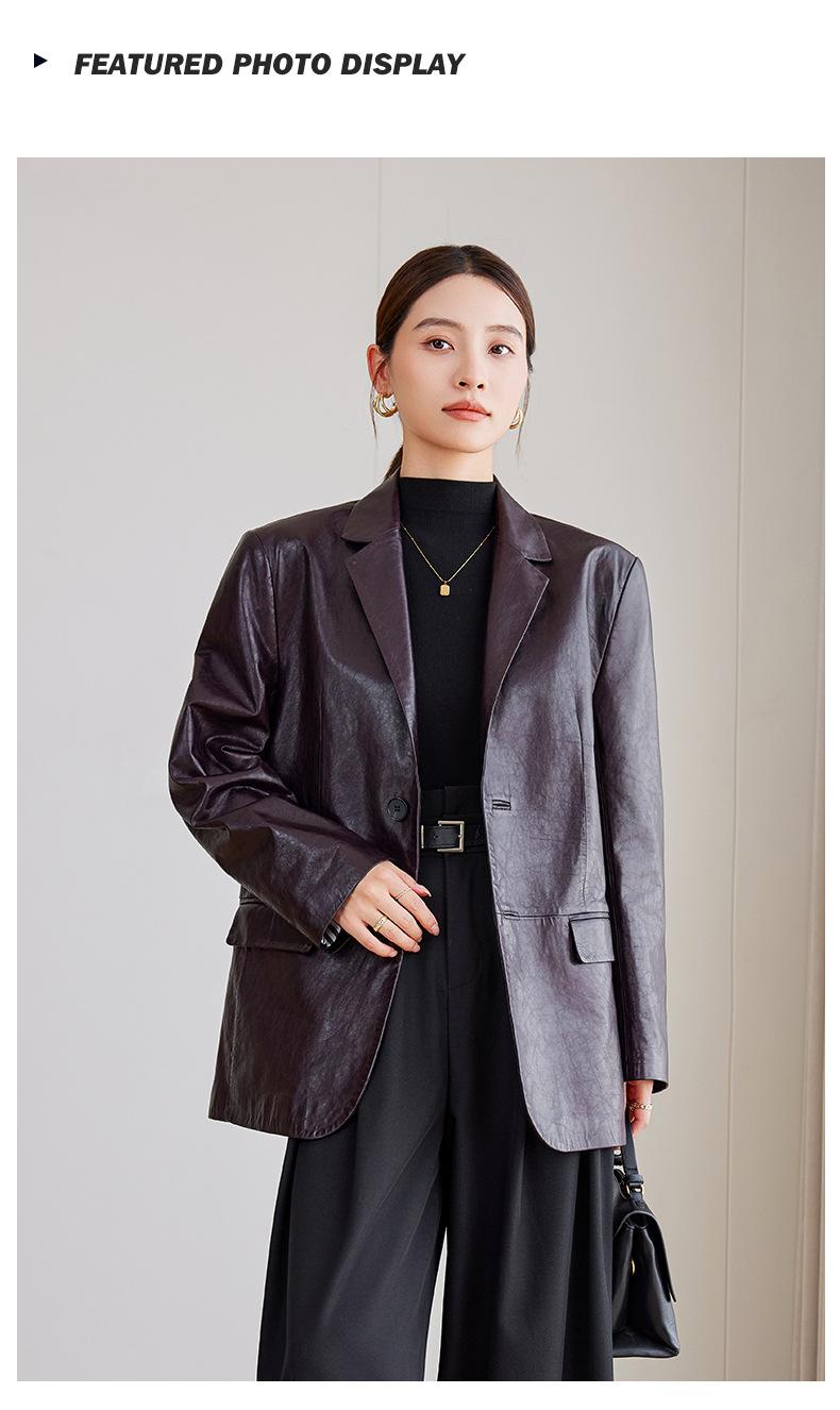 Haining 2025 Otoño Nuevo Cuero Genuino Chaqueta de Cuero Abrigo Traje de Talla Pequeña de Alta Gama Chaqueta de Cuero Genuino para Mujer