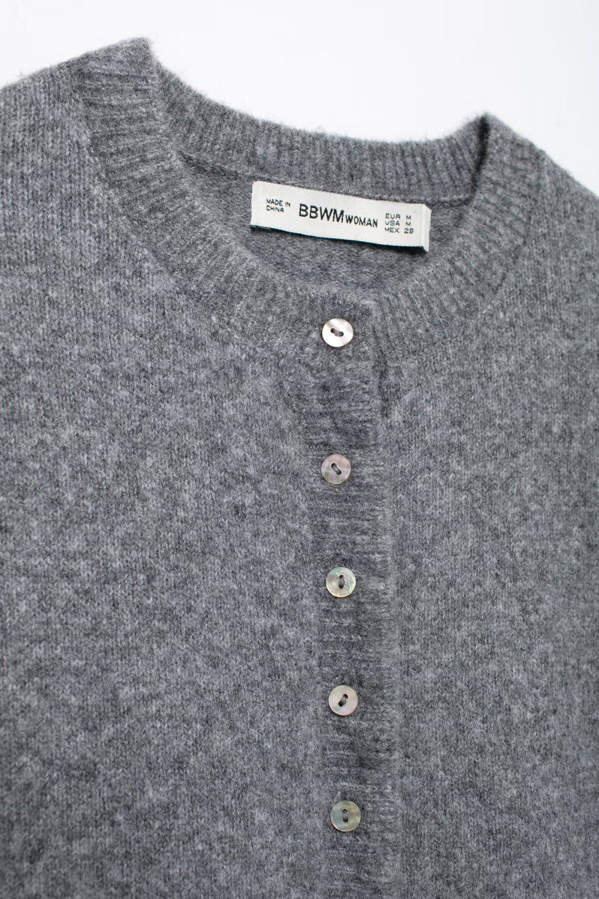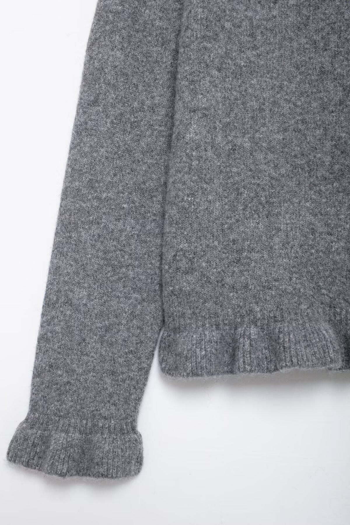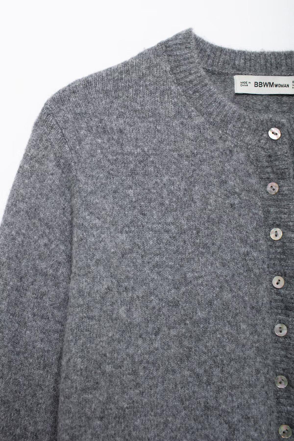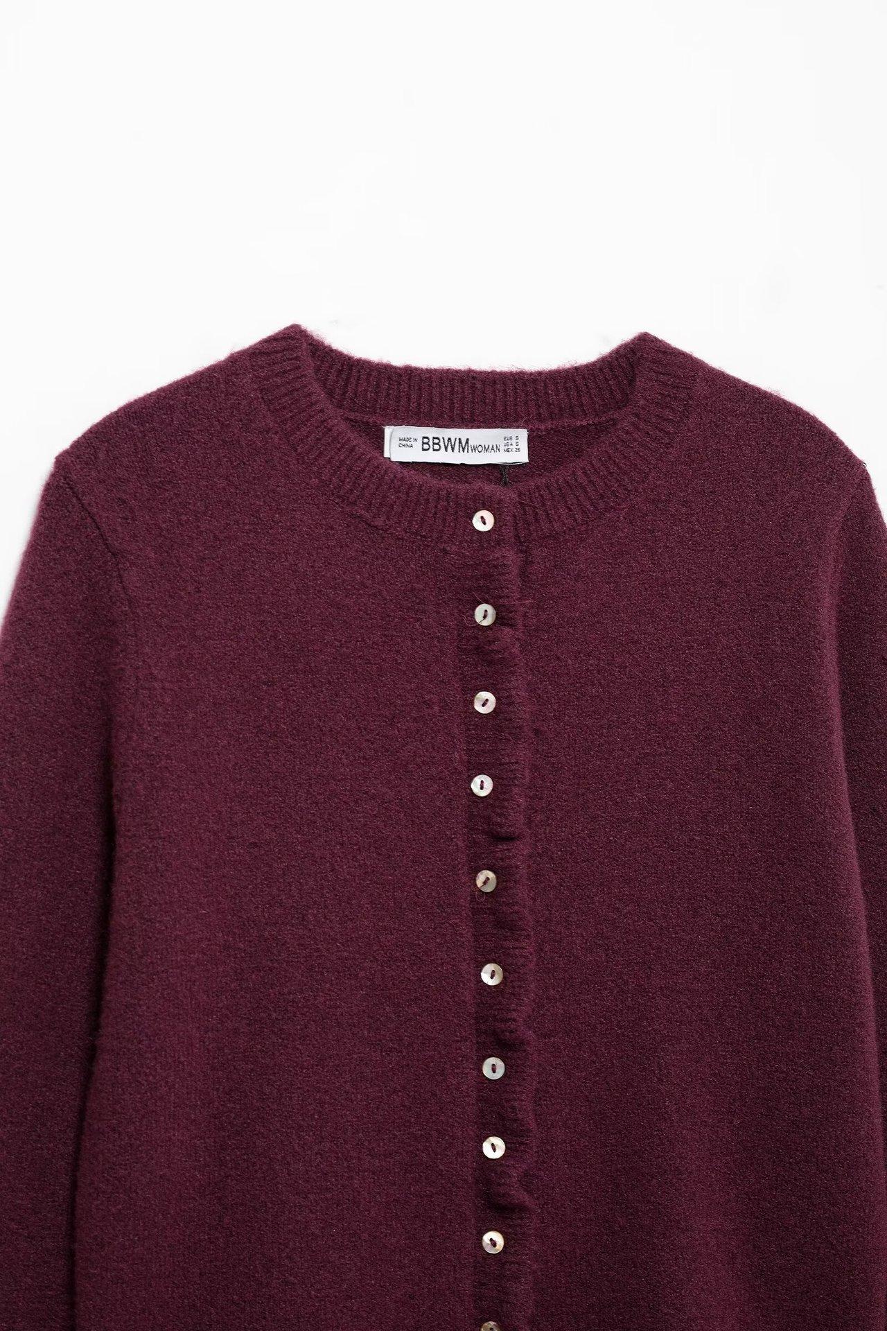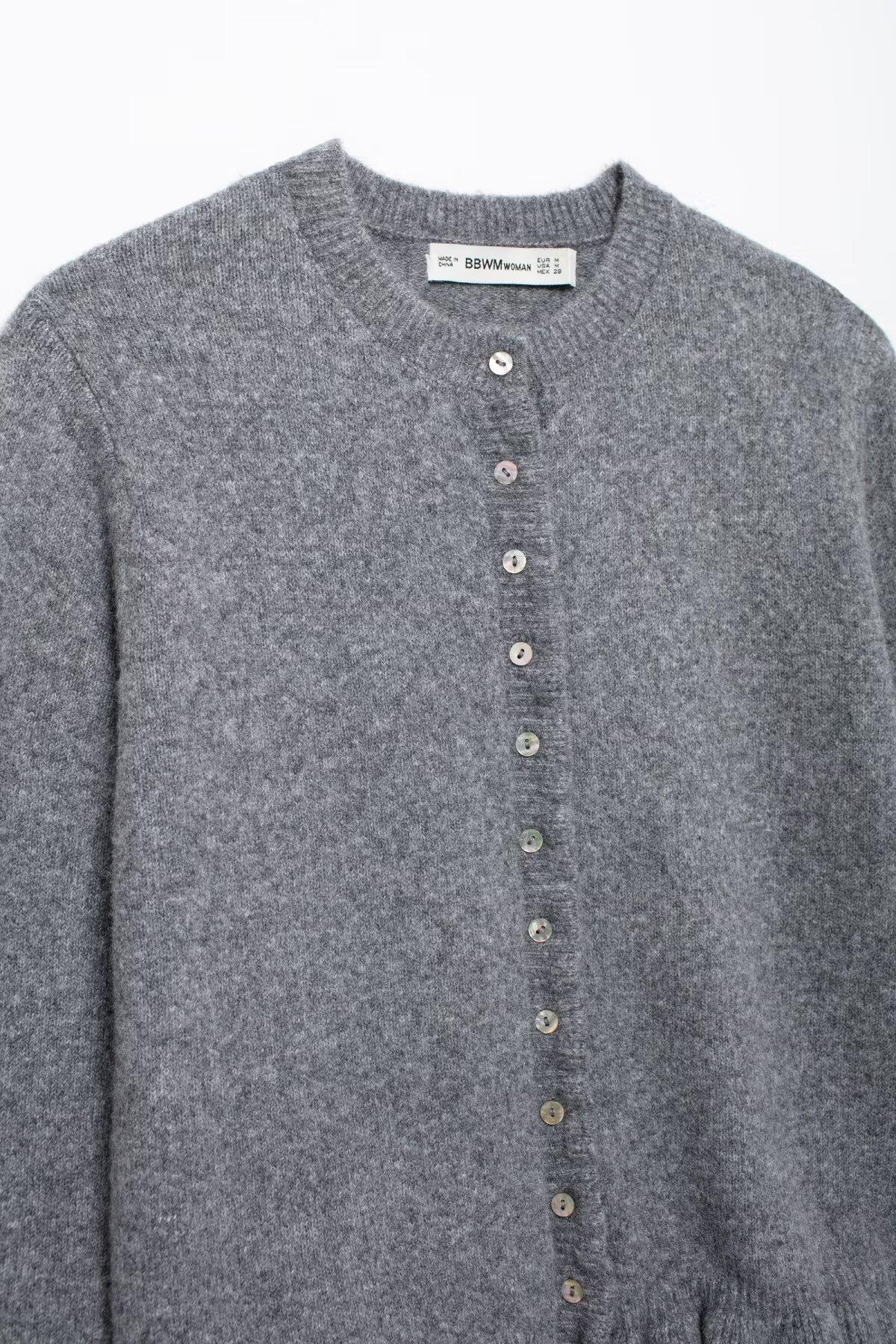 Estilo Europeo y Americano Transfronterizo Popular Ropa de Mujer Comercio Exterior Cuello Redondo Decorativo en Capas Manga Larga Casual Chaqueta Tejida
