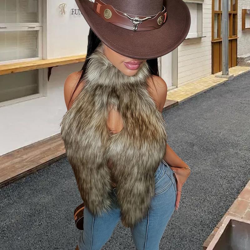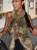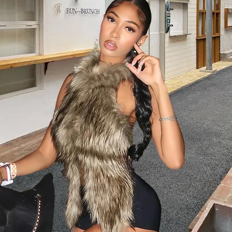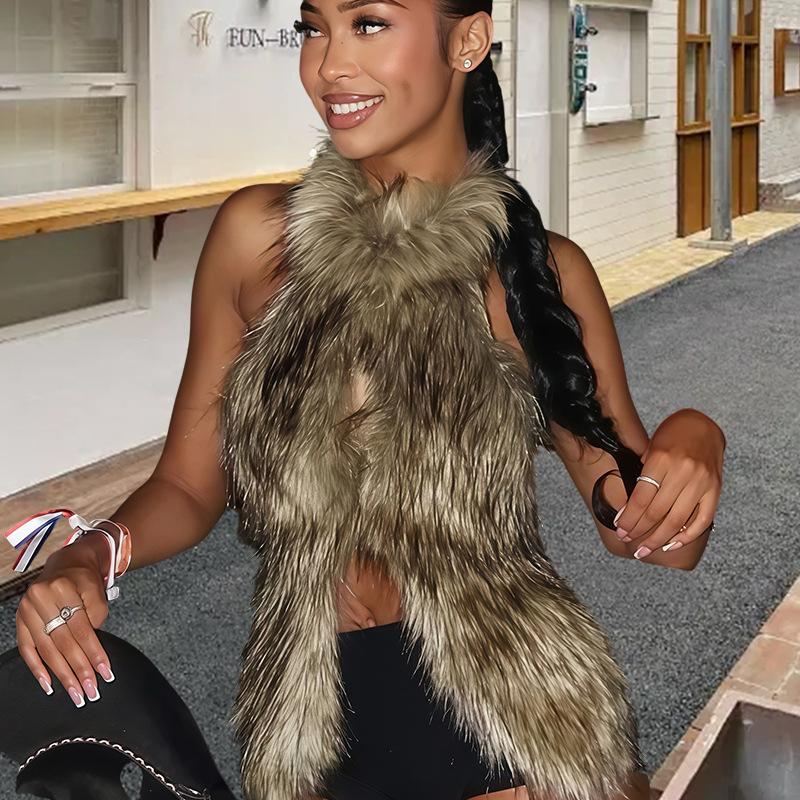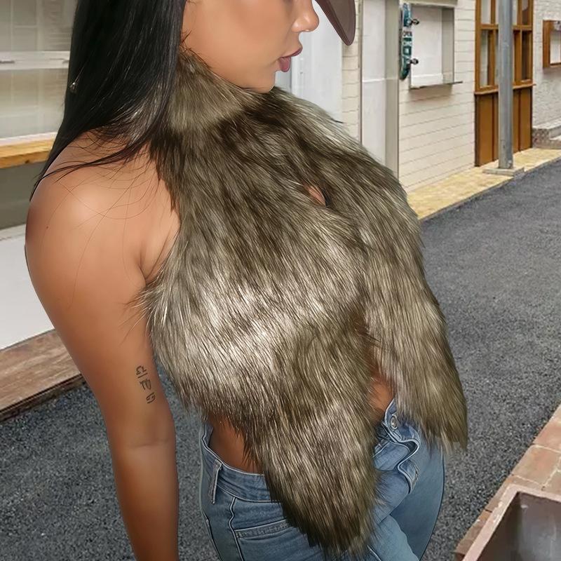 Nuevo Sexy Peludo Halter Espalda Descubierta Sin Mangas Abertura Crop Top Chaleco Mujer 2025