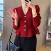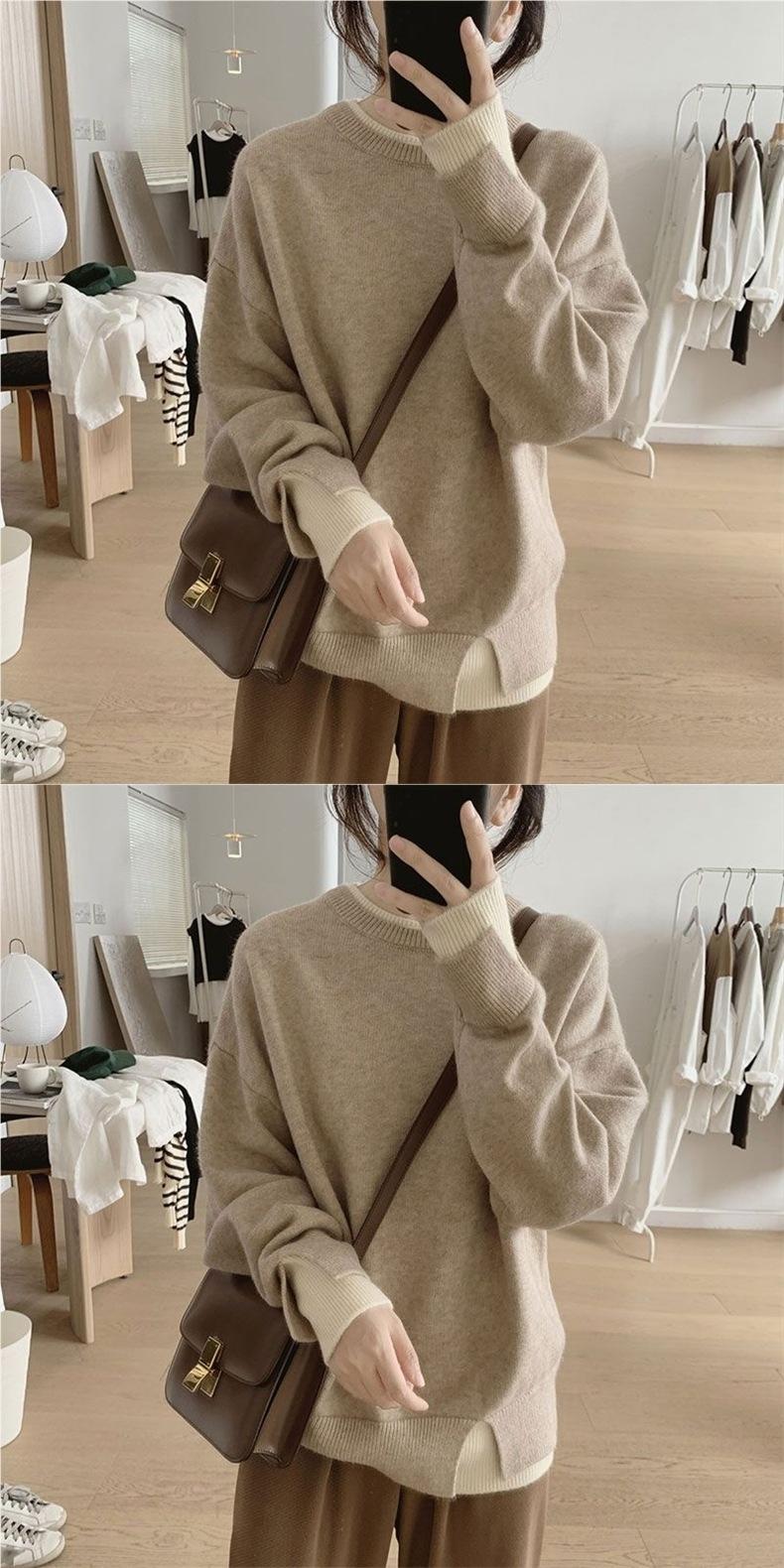 Suéter de Cachemira para Mujer Reductor de Edad de Moda 2025, Diseño Chic de Nicho con Abertura, Color Sólido, Suéter Tejido, Sudadera para Mujer