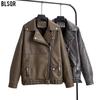 Ropa de Mujer de Comercio Exterior Transfronterizo 2025 Otoño Europeo y Americano Cuello Alto Decoración de Botones PU Chaqueta Holgada Abrigo Mujer L420664