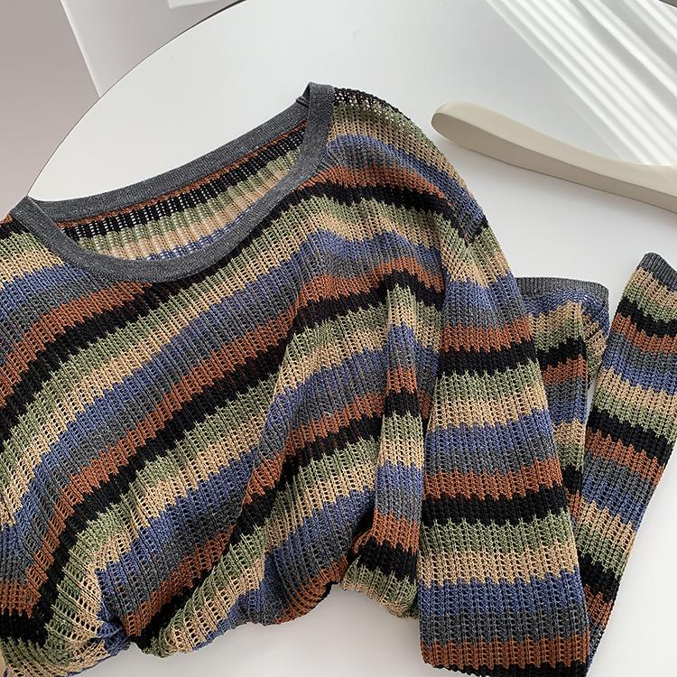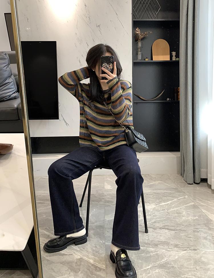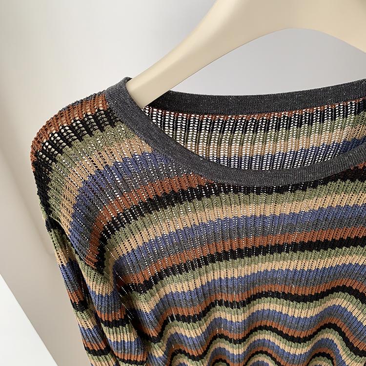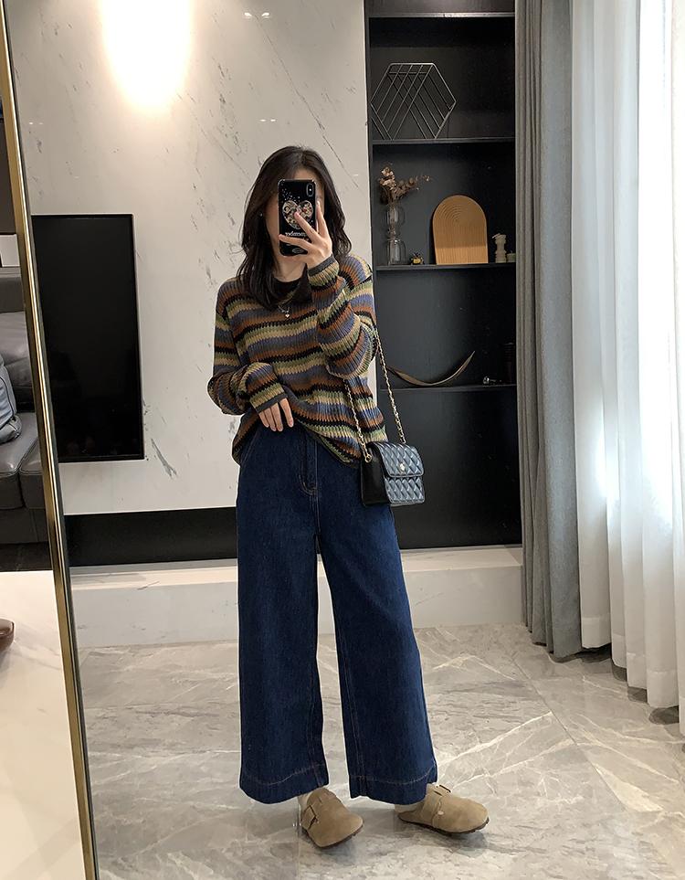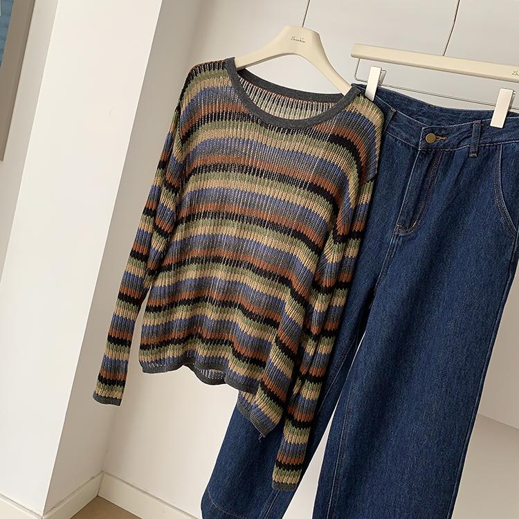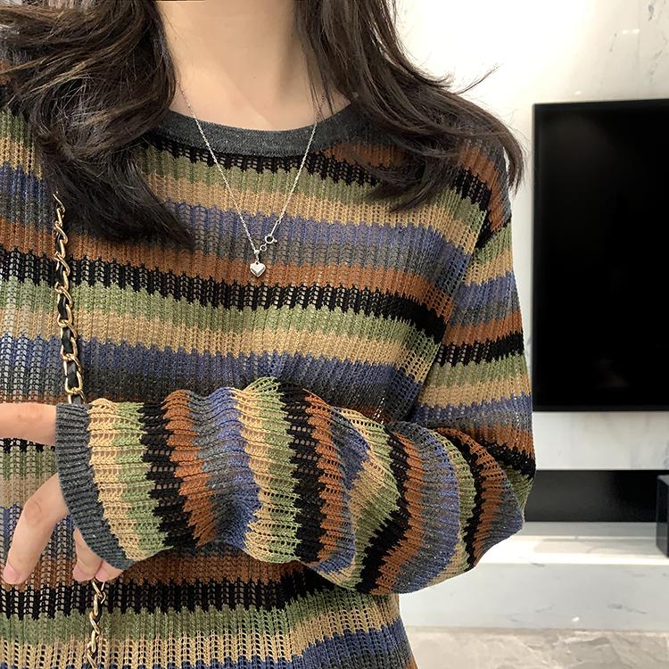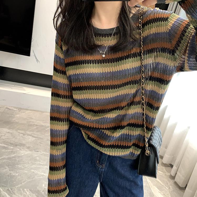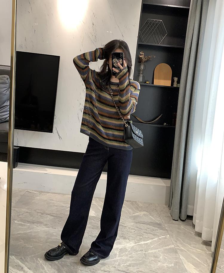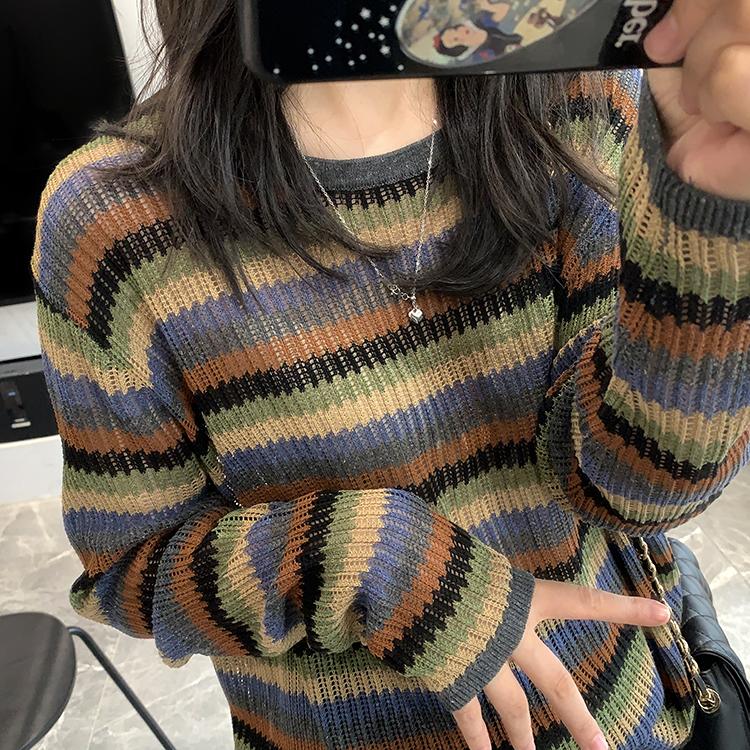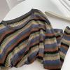Suéter Jersey Retro de Color a Rayas para Mujer Primavera Temprana 2025 Nuevo de Otoño Holgado Perezoso Ajustado Top para Mujer