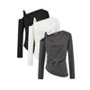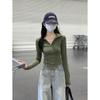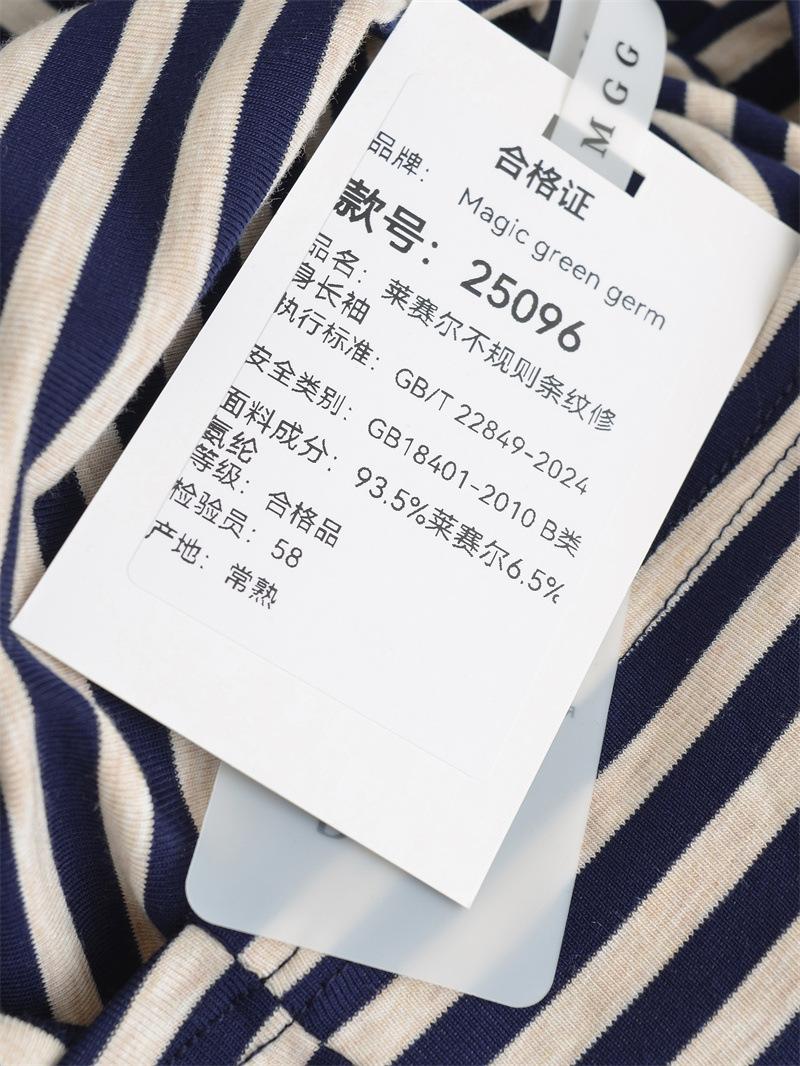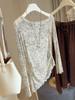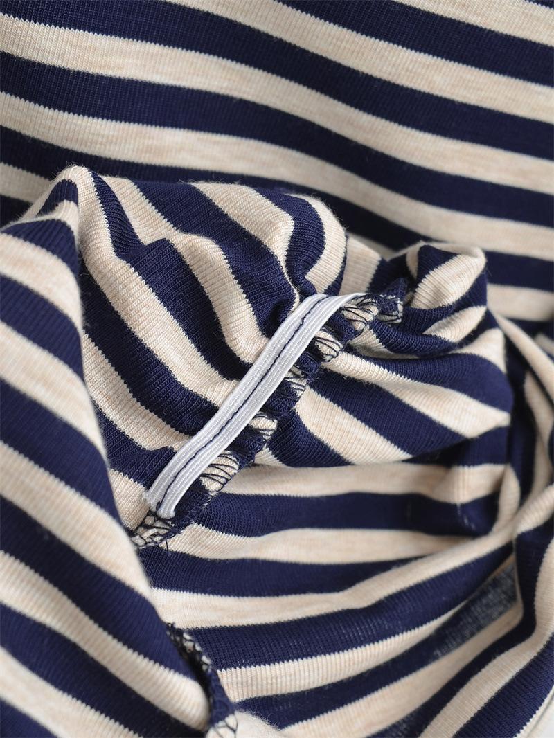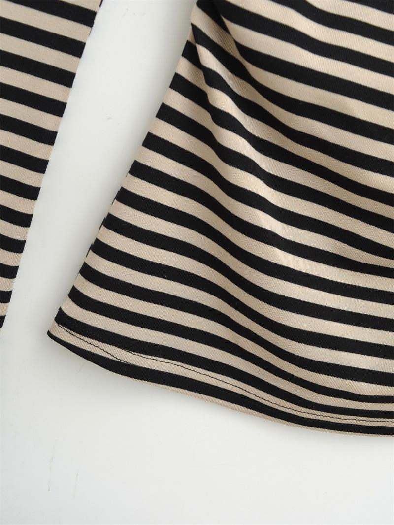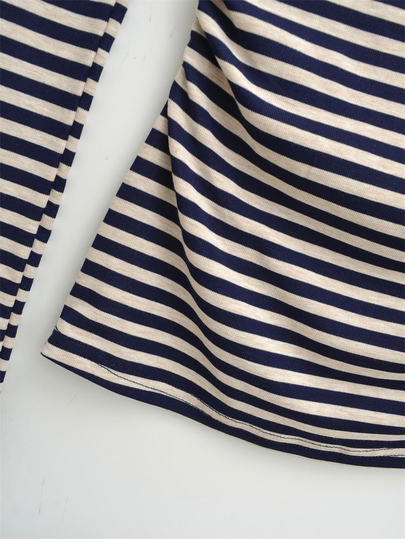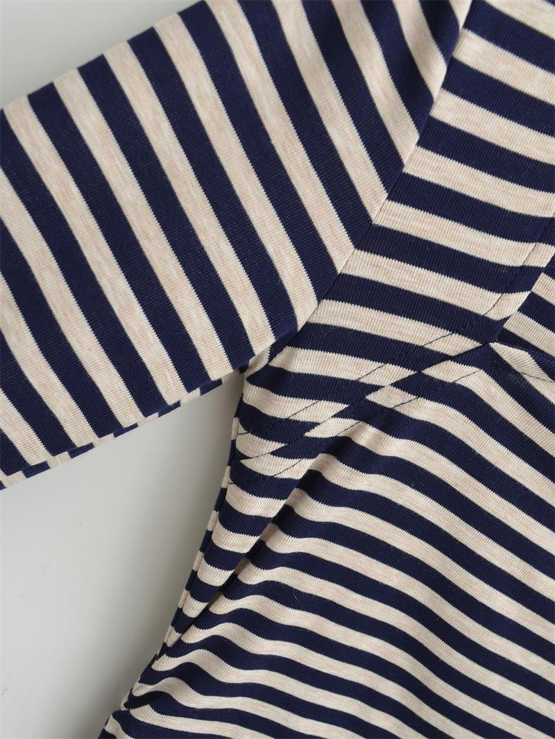 Sentido del Diseño Escote Asimétrico Irregular Cintura Fruncida Camiseta de Manga Larga a Rayas Otoño Nuevo Top Básico para Chica Hot Slim