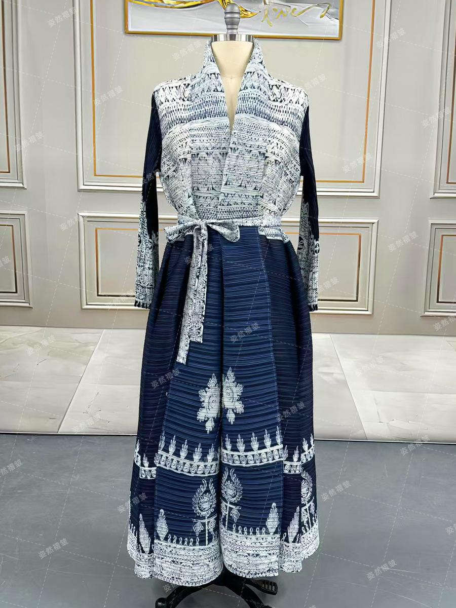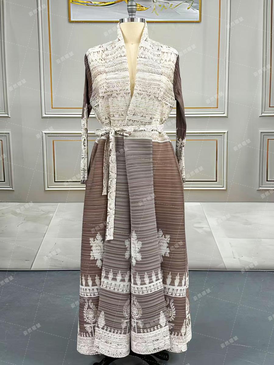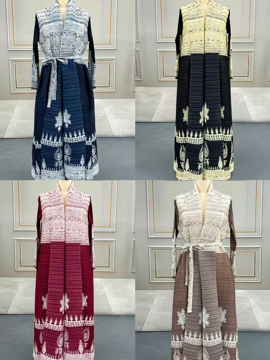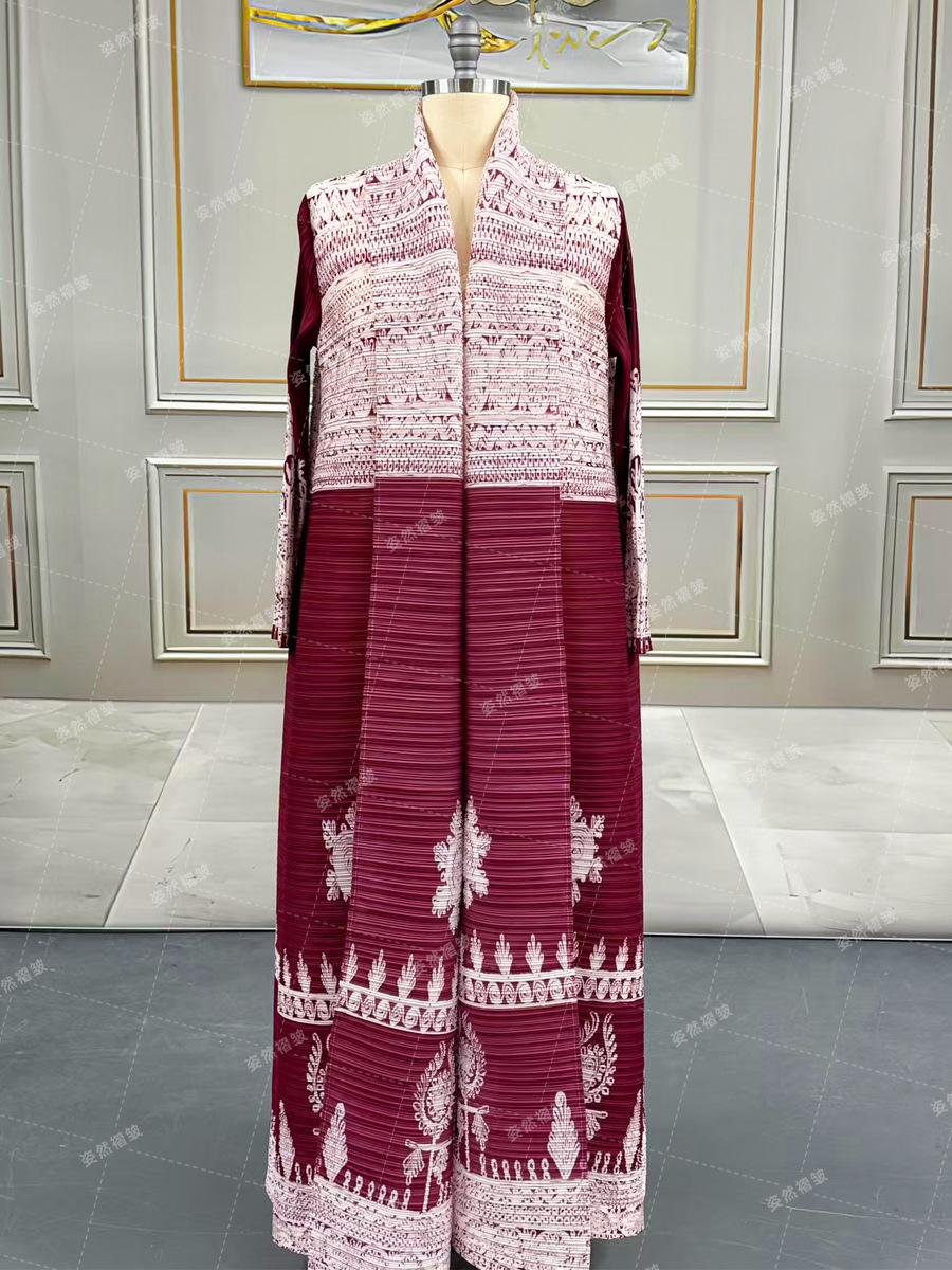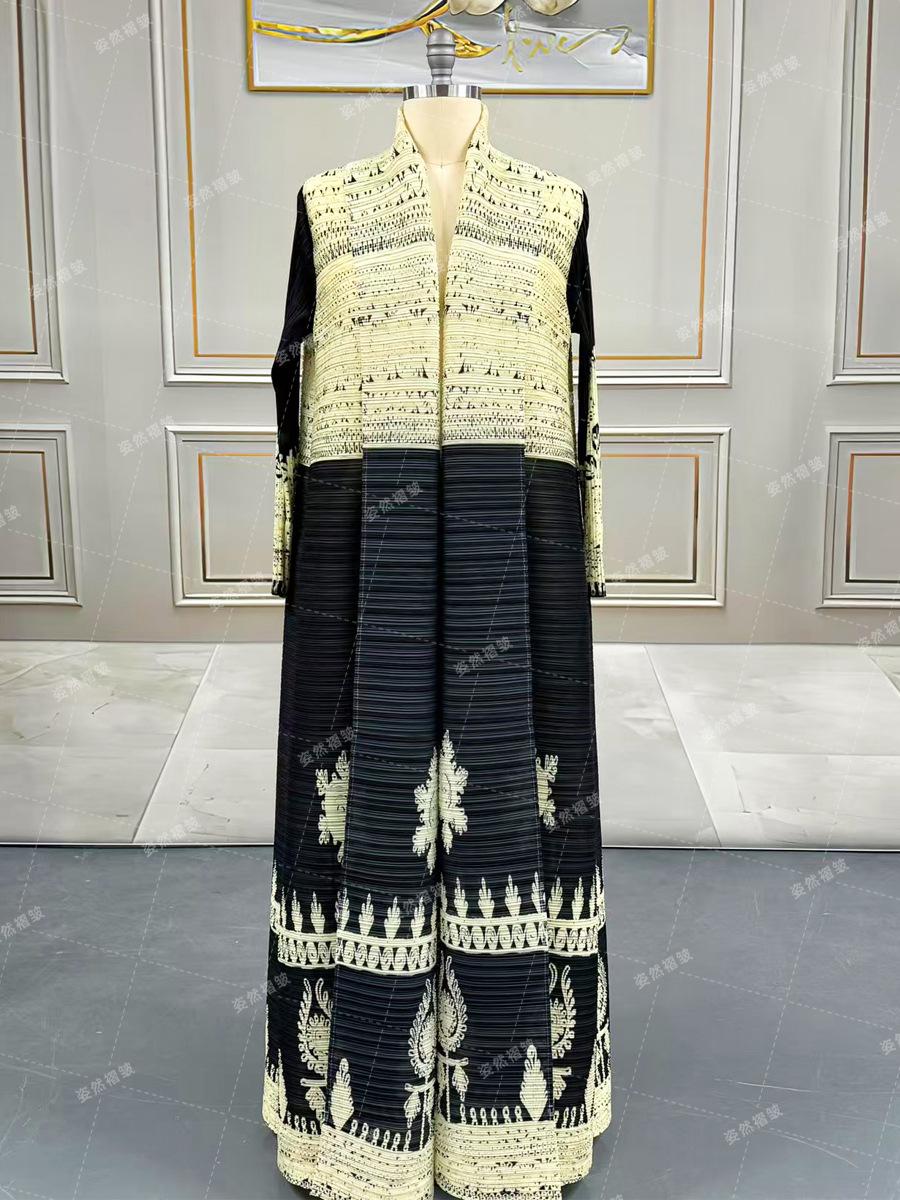 Chaqueta de Verano para Mujer de Alta Gama Miyake Plisada de Manga Larga Medio Oriente Dubái Estampado Árabe Abaya Abaya