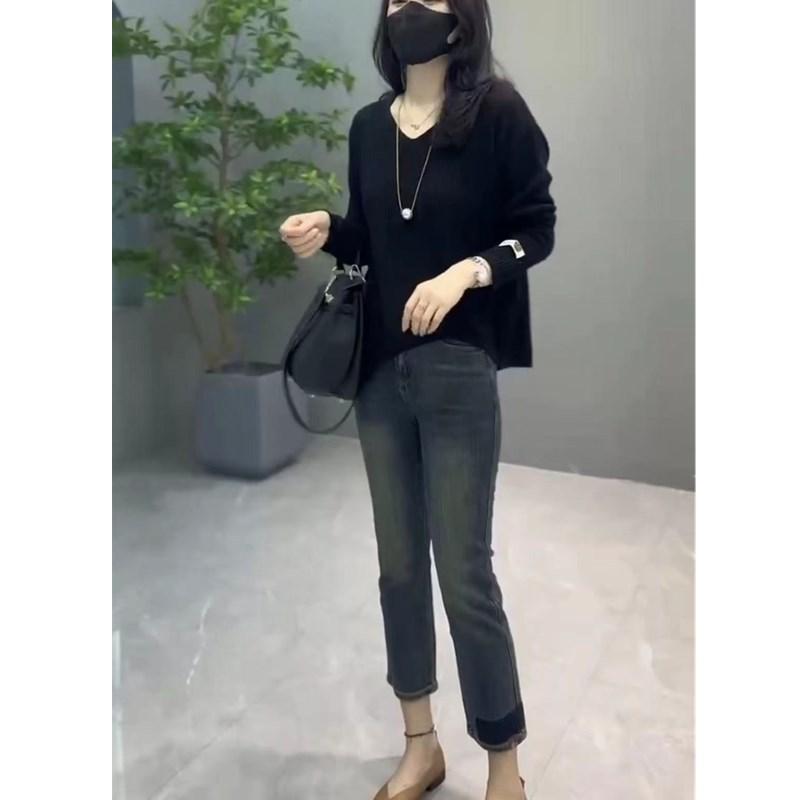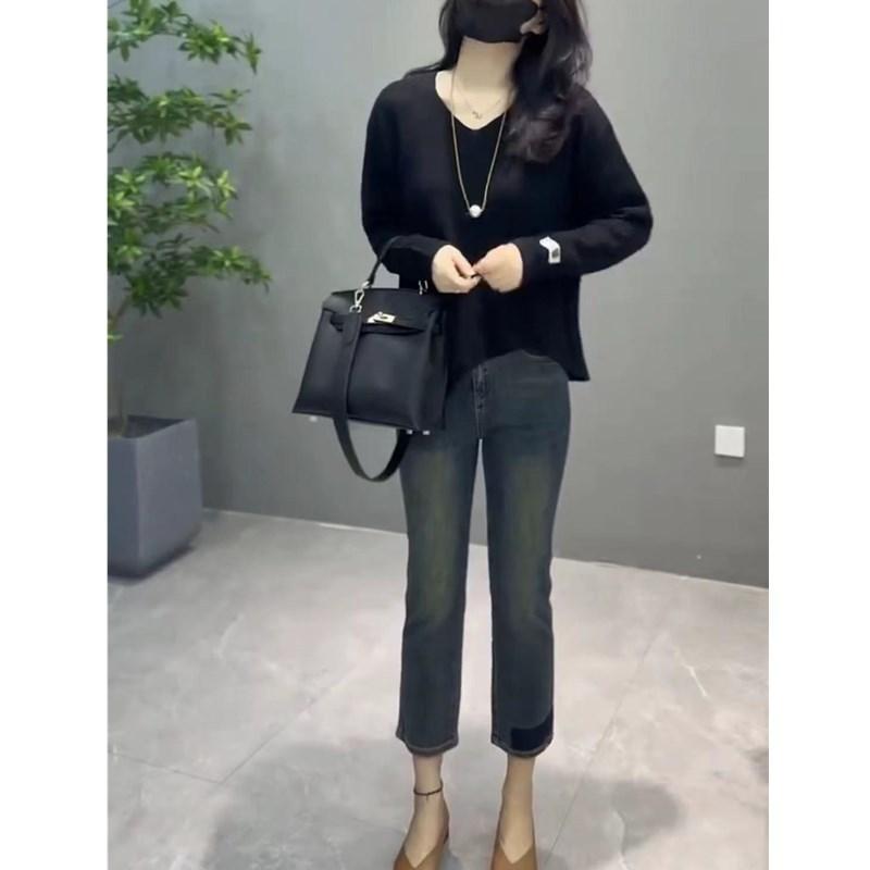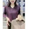 23700 gran amor belleza Yiyuan 2023 Otoño Nuevo cuello en V manga larga irregular top jersey suelto camiseta adelgazante
