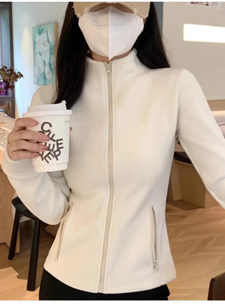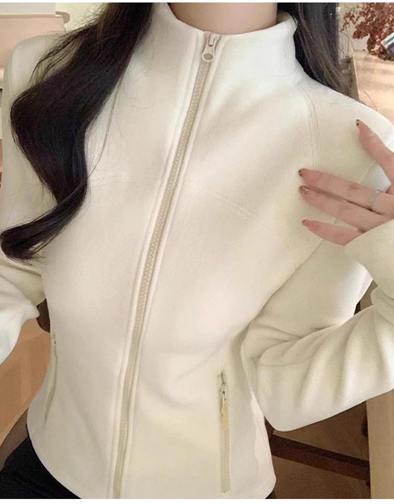Chaqueta polar de otoño para mujer primavera y otoño más terciopelo más gruesa cortavientos forro polar cálido ropa interior sudadera de corte ajustado
