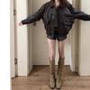 Chaqueta Corta de Cuero Top Temporada Otoño 2025 Americana Retro Marrón Solapa Cremallera Chaqueta de Cuero para Motociclista Abrigo Mujer