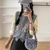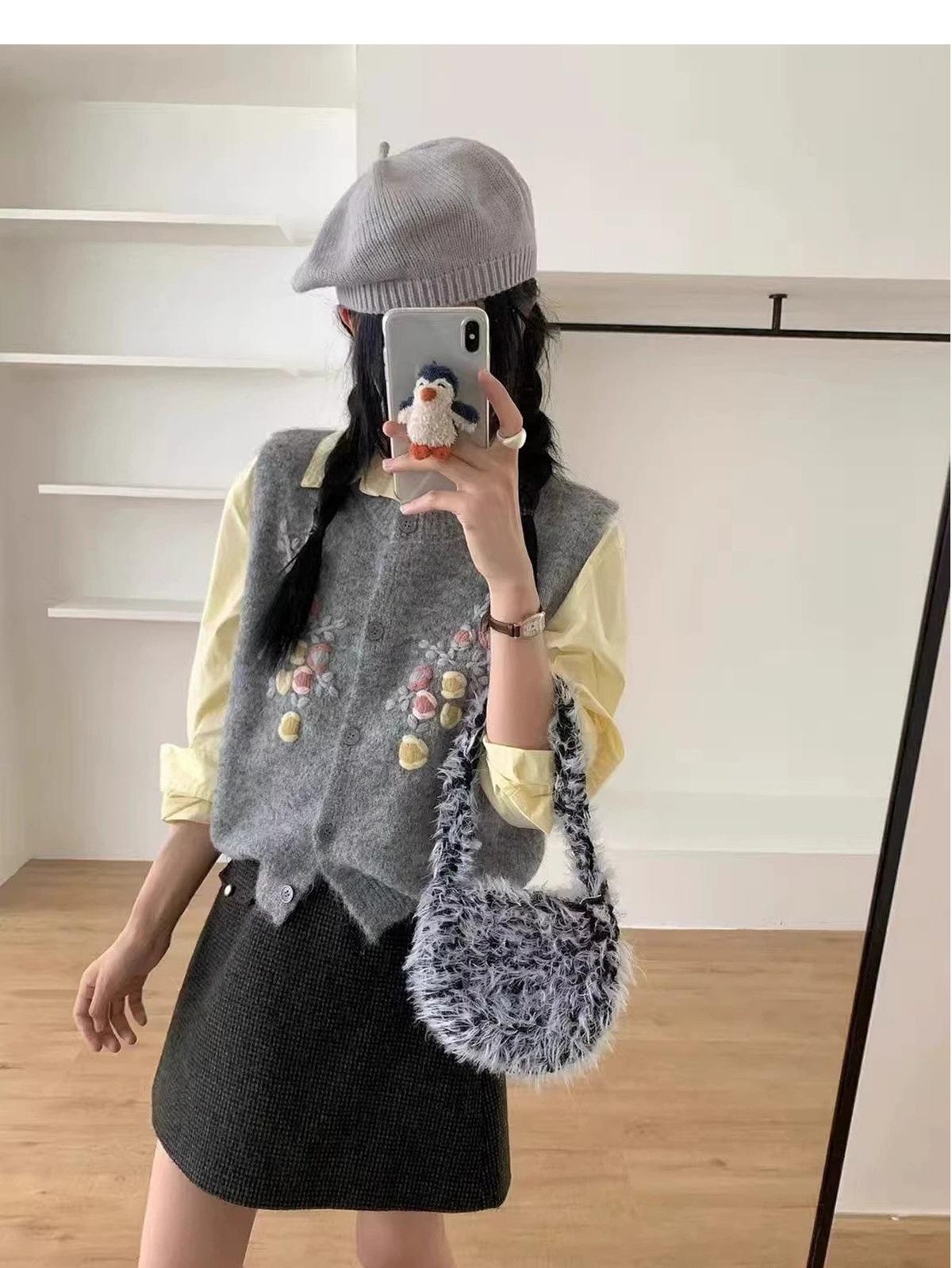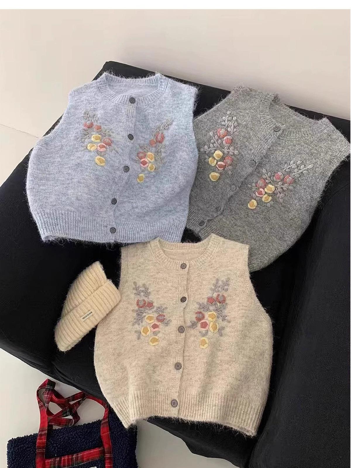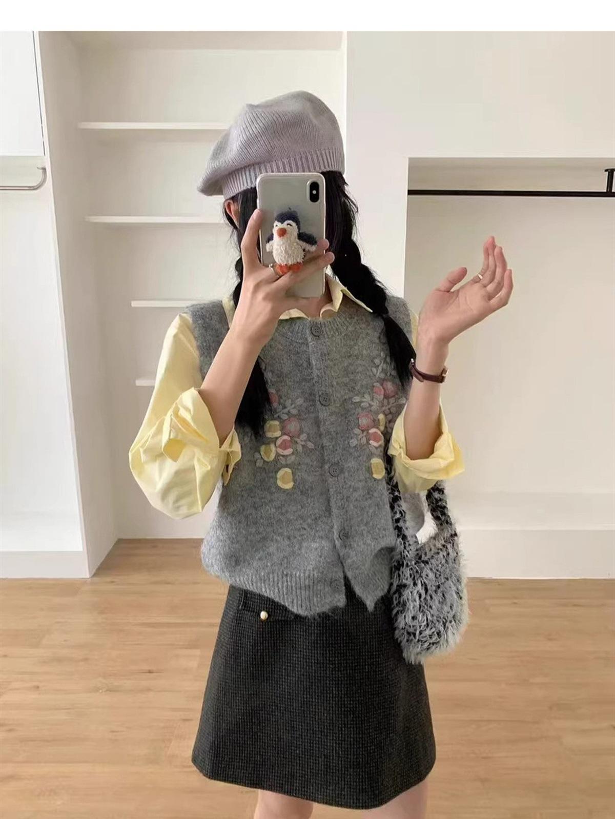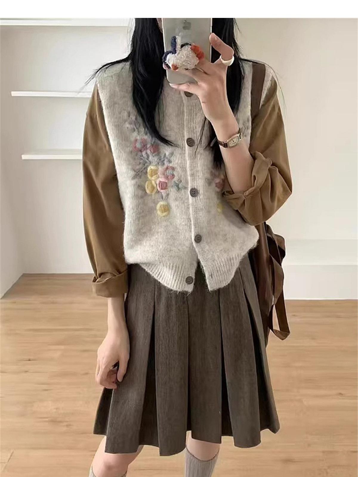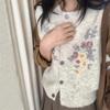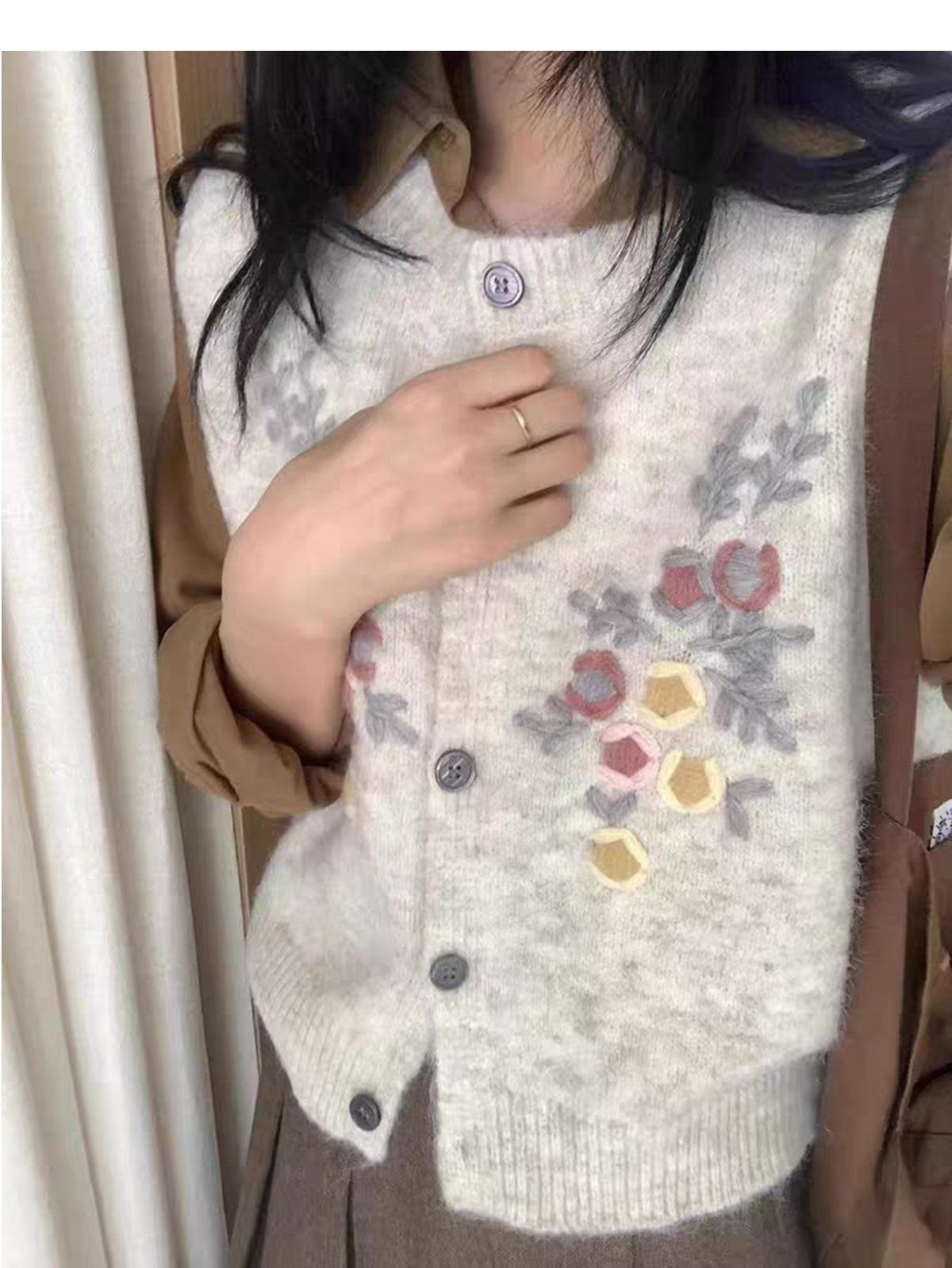 Chaleco de Punto de Cuello Redondo con Bordado Tridimensional para Mujer Otoño e Invierno Nuevo Estilo Coreano Nicho Capas Moda Abrigo Suéter Camiseta sin Mangas