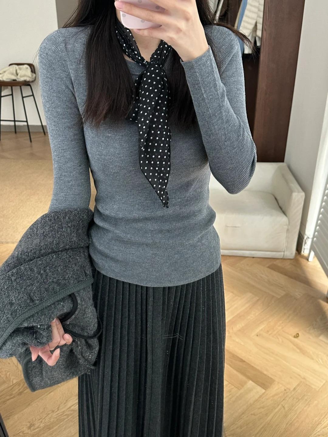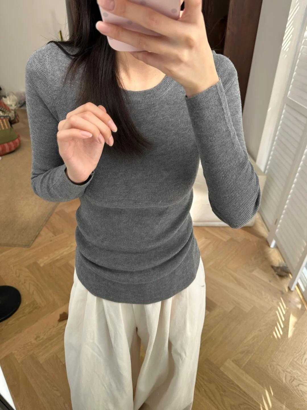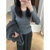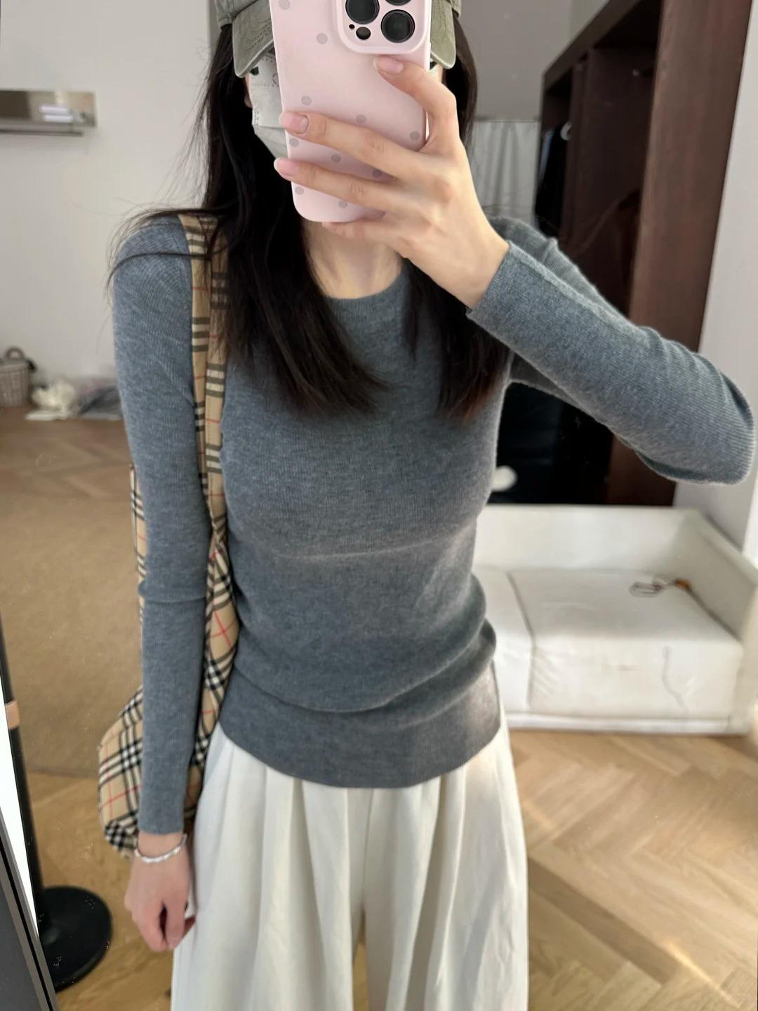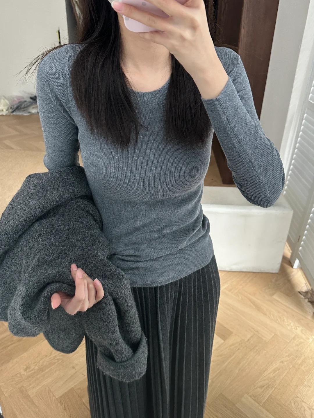 Suéter de Punto Gris de Alta Gama para Mujer, Adecuado para Primavera, Otoño e Invierno, Top de Capa Base Adelgazante, Estilo Coreano, Suave y Elegante, Prenda Interior de Manga Larga