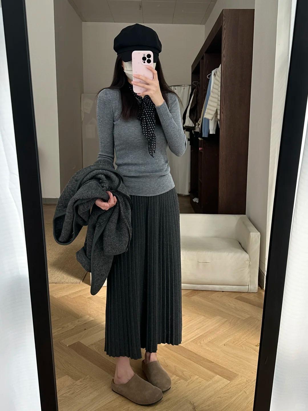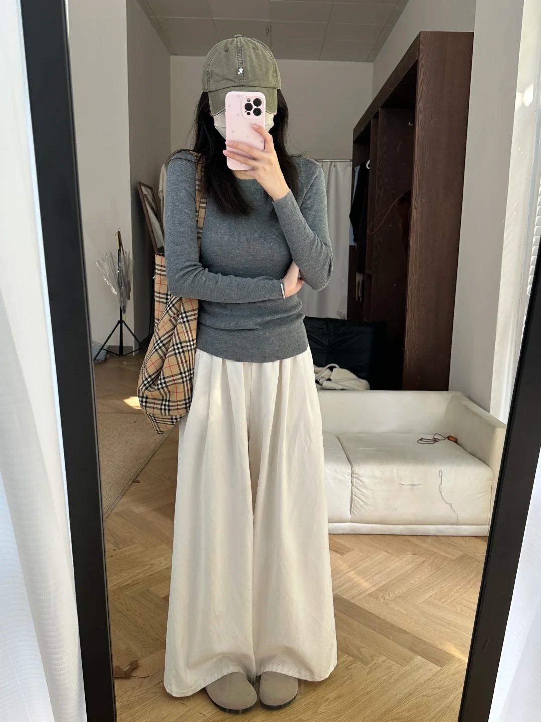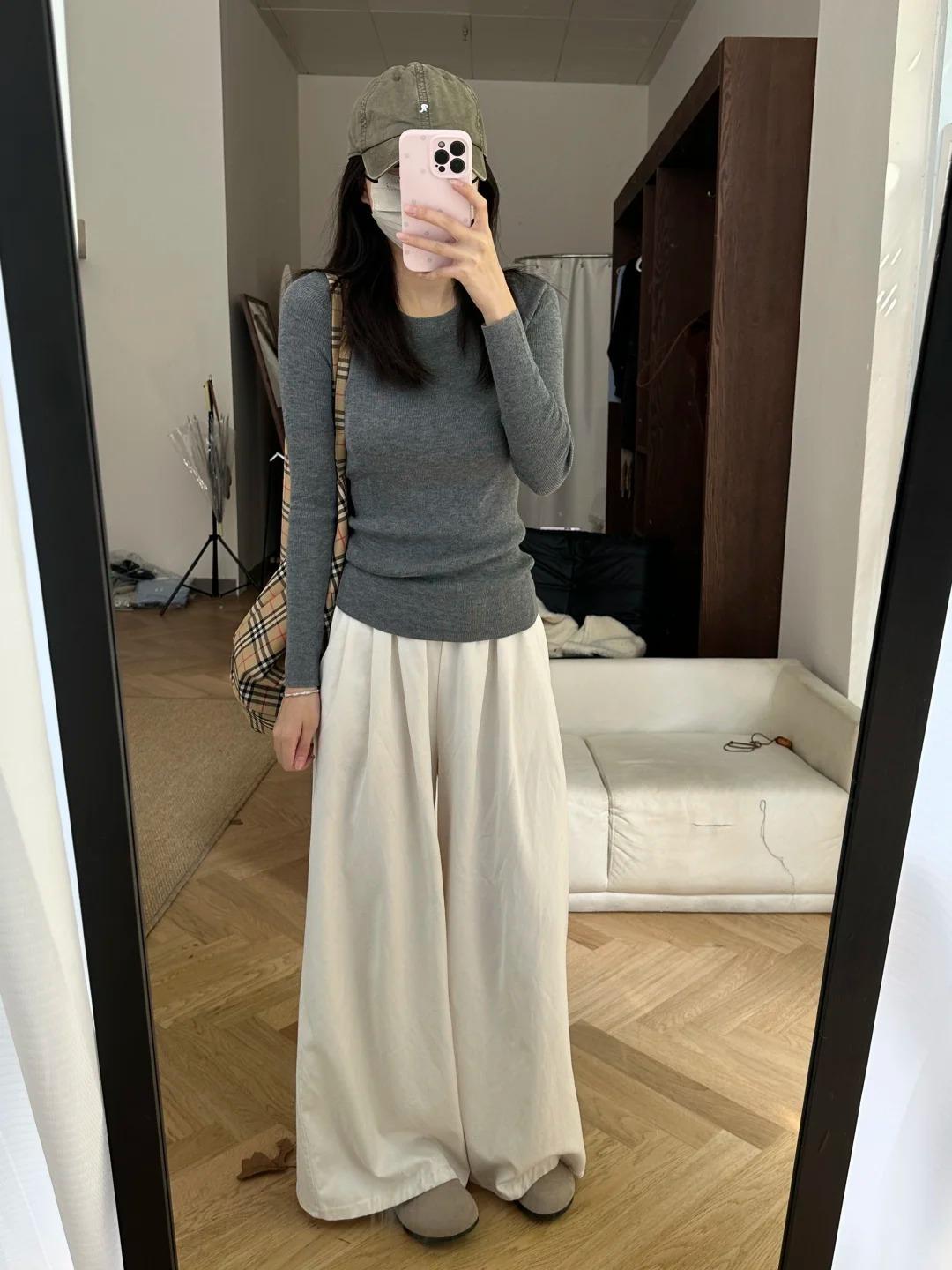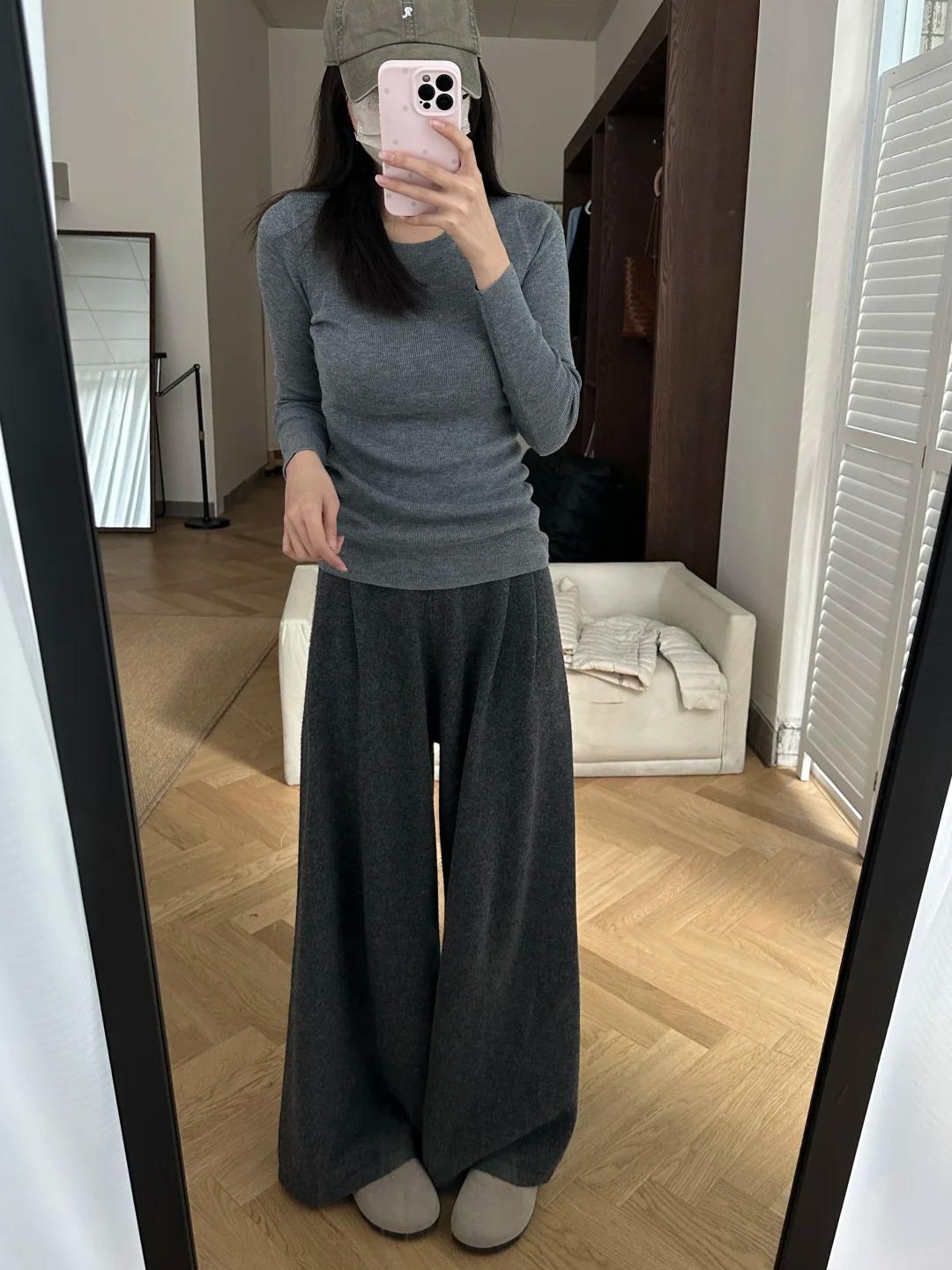 Suéter de Punto Gris de Alta Gama para Mujer, Adecuado para Primavera, Otoño e Invierno, Top de Capa Base Adelgazante, Estilo Coreano, Suave y Elegante, Prenda Interior de Manga Larga
