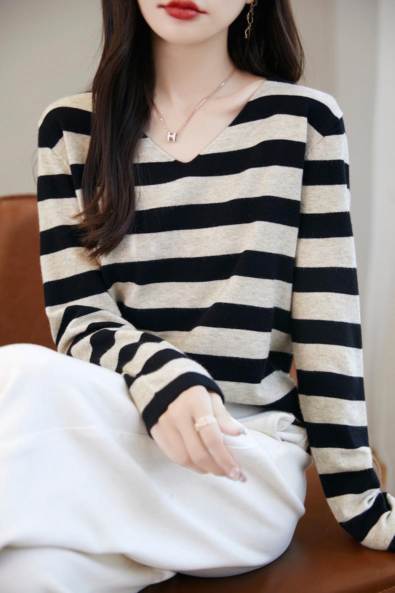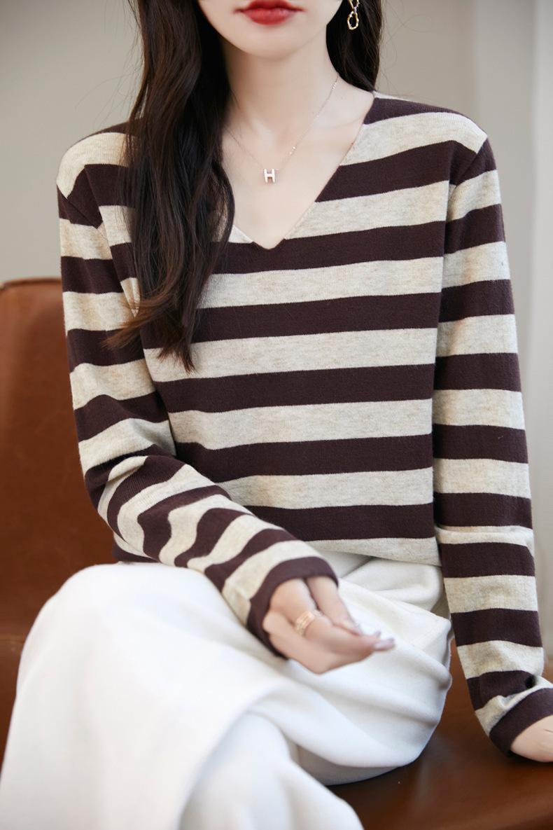 Suéter Holgado Nuevo Transfronterizo Tops de Otoño e Invierno Manga Larga Mujer Cuello en V Andy Forro Polar Tejido Camiseta Interior al Por Mayor 2025