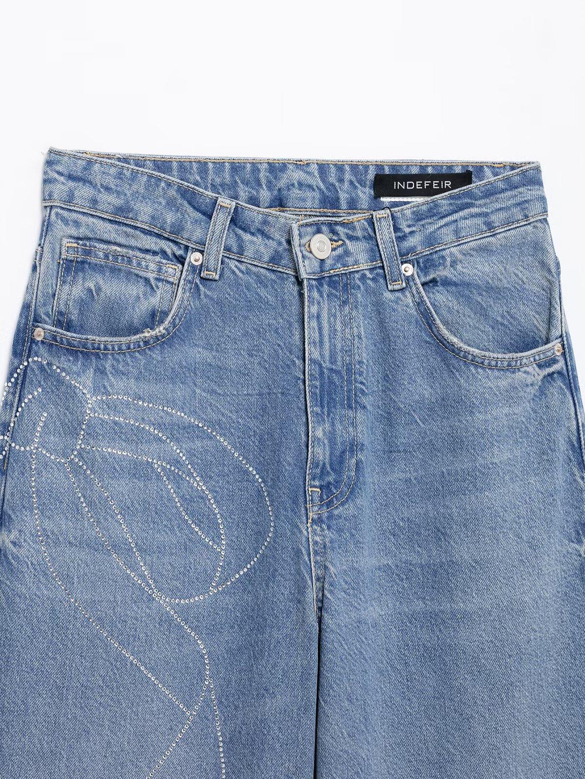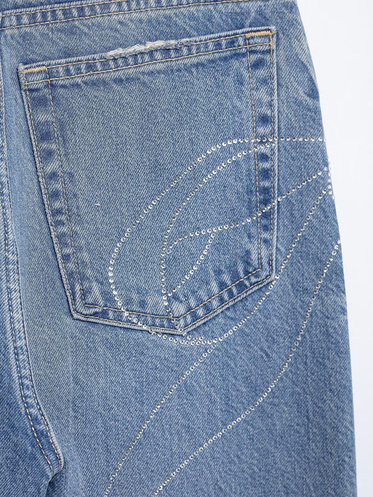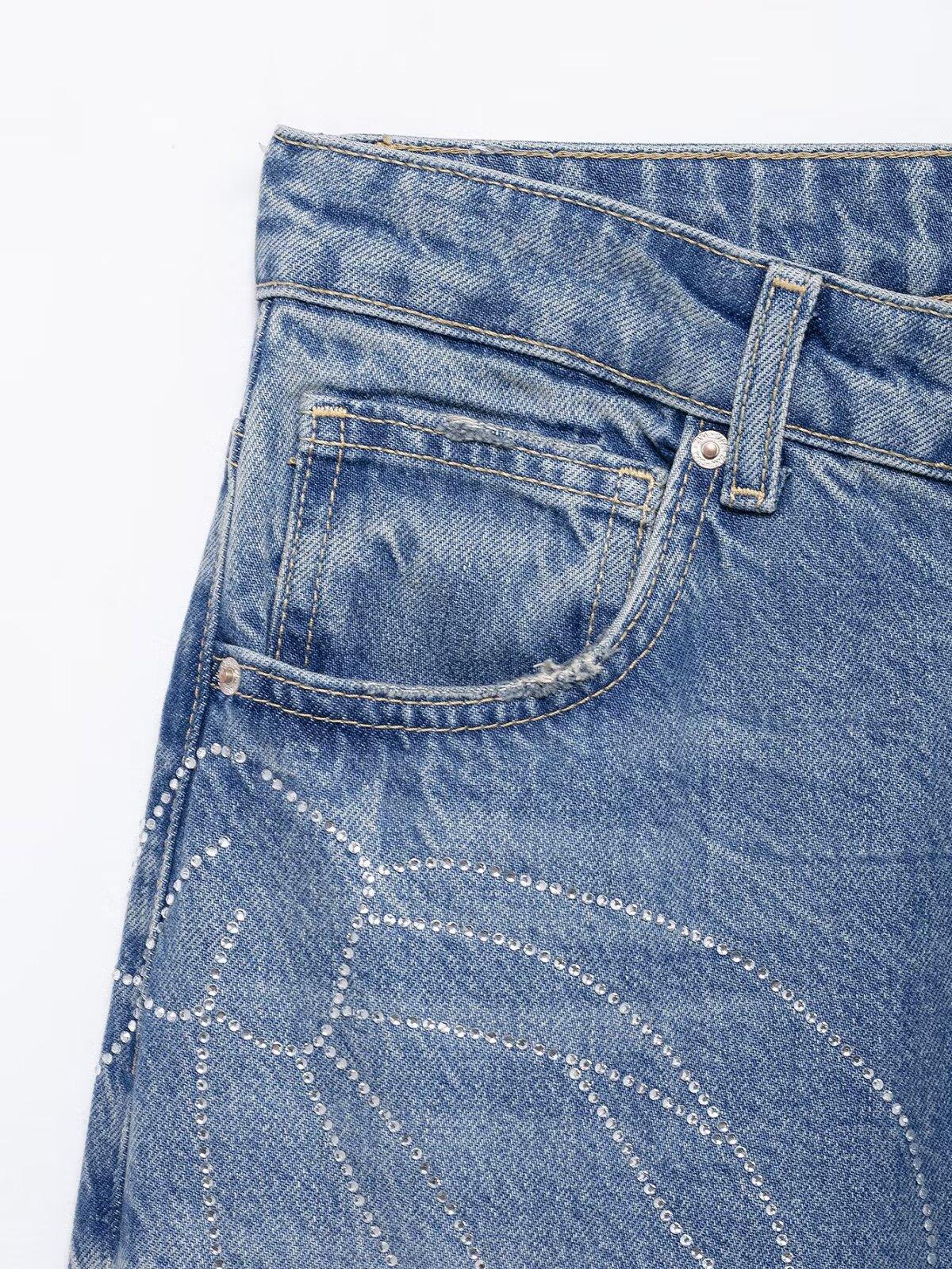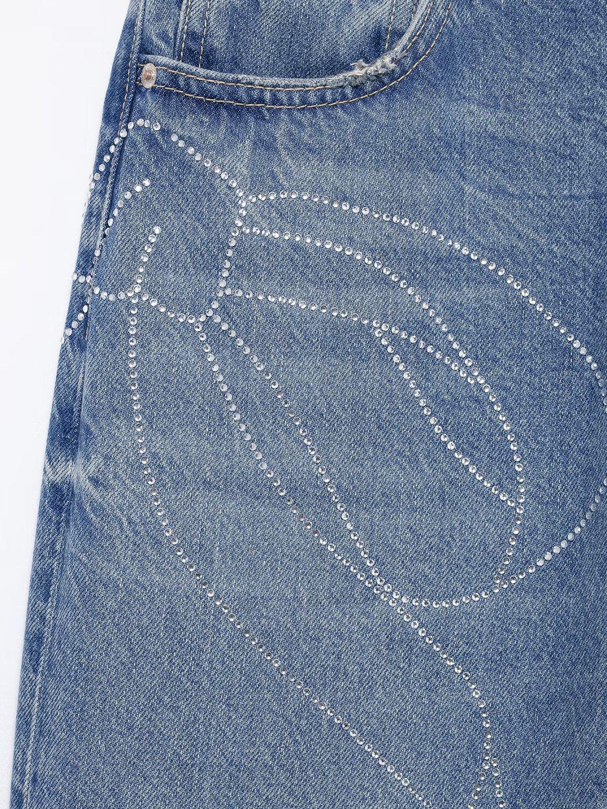 Explosiones transfronterizas AliExpress para mujer estilo europeo y americano comercio exterior al por mayor ZR en stock cintura alta decoración de diamantes de agua jeans holgados