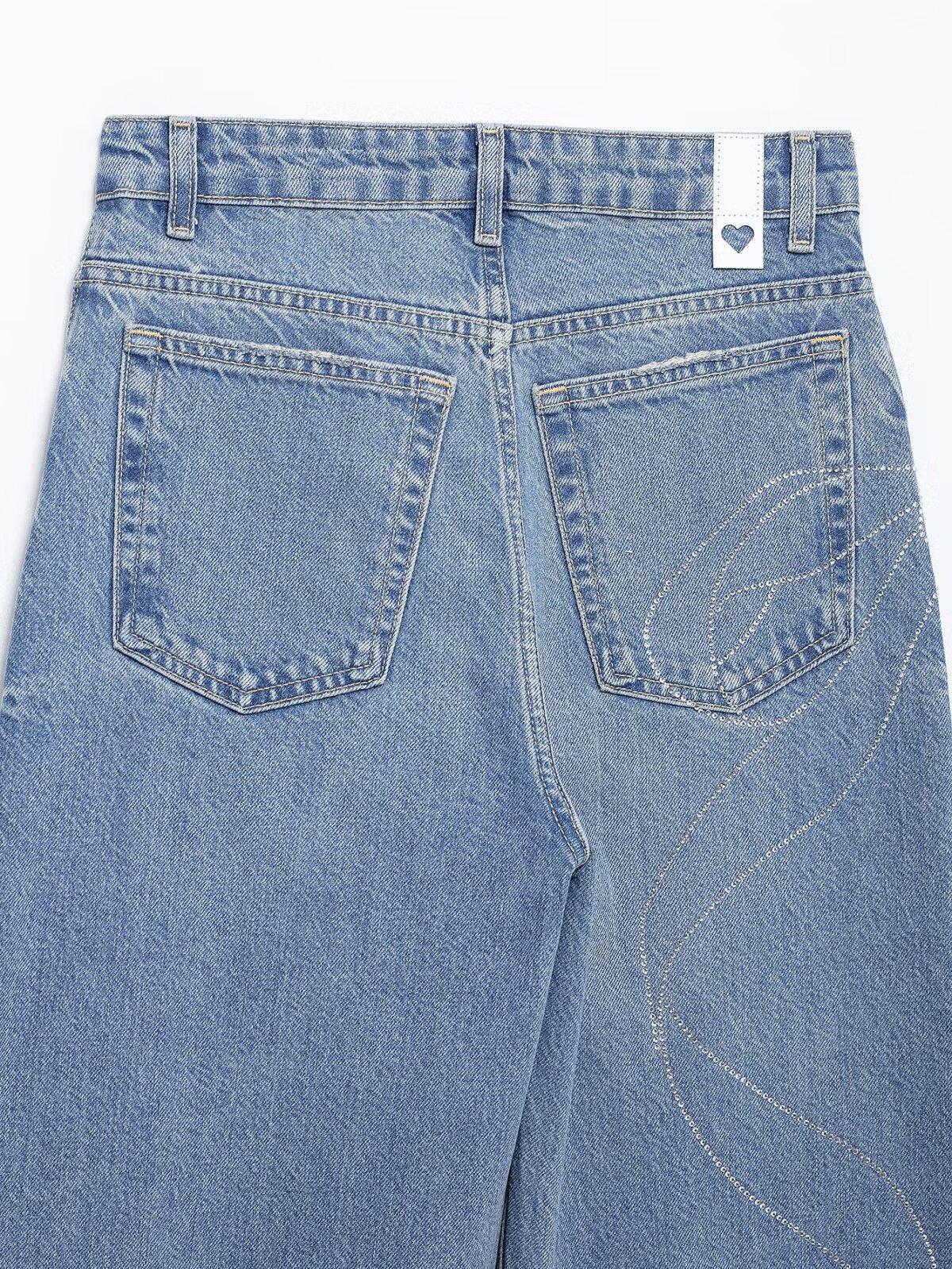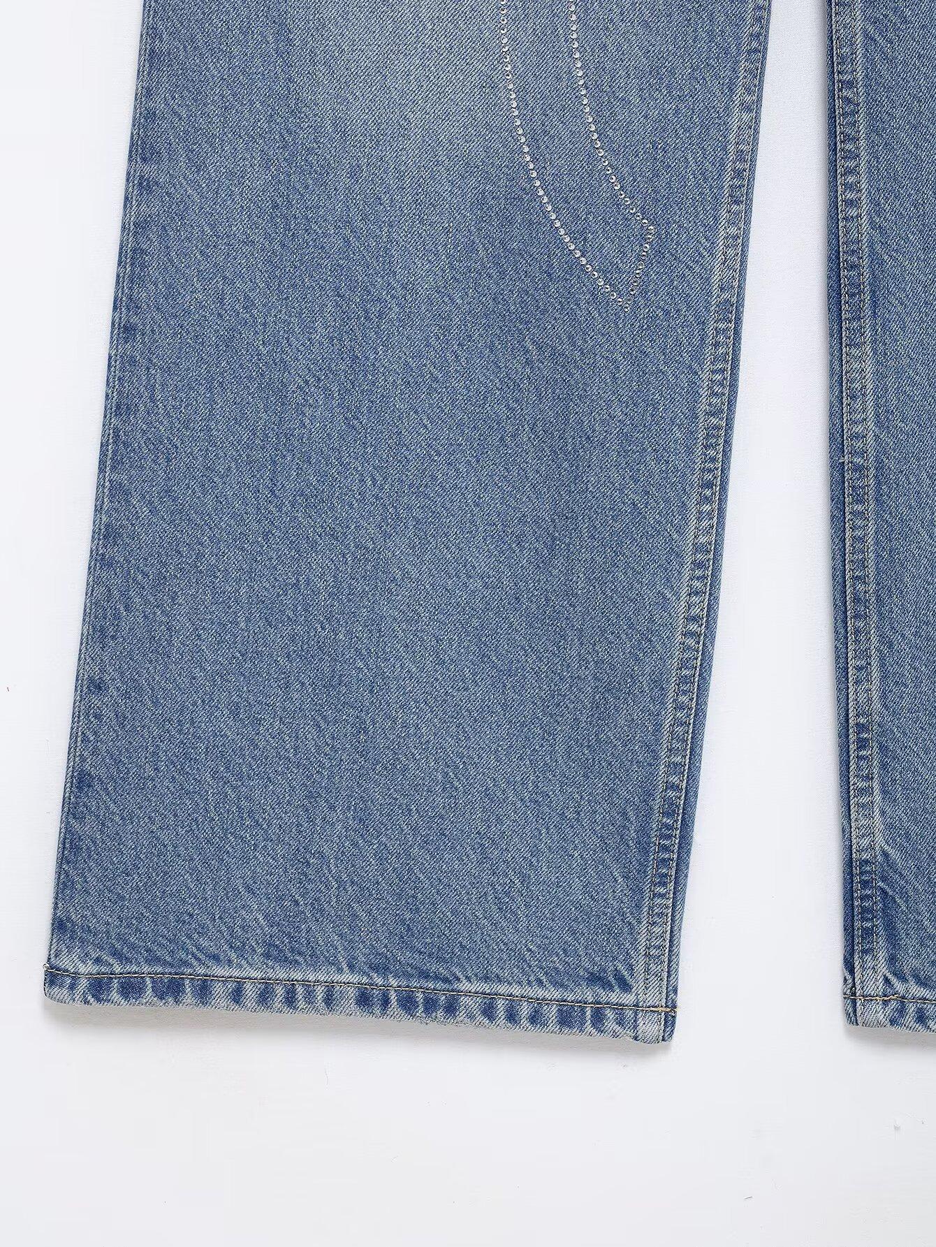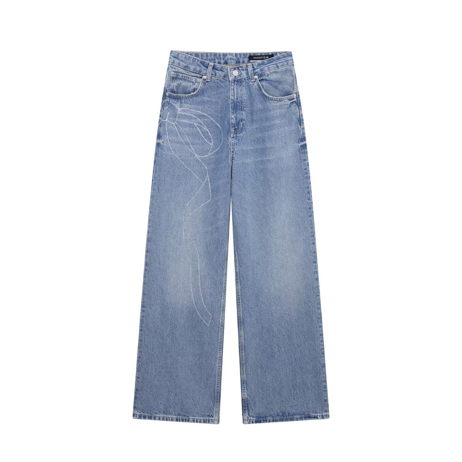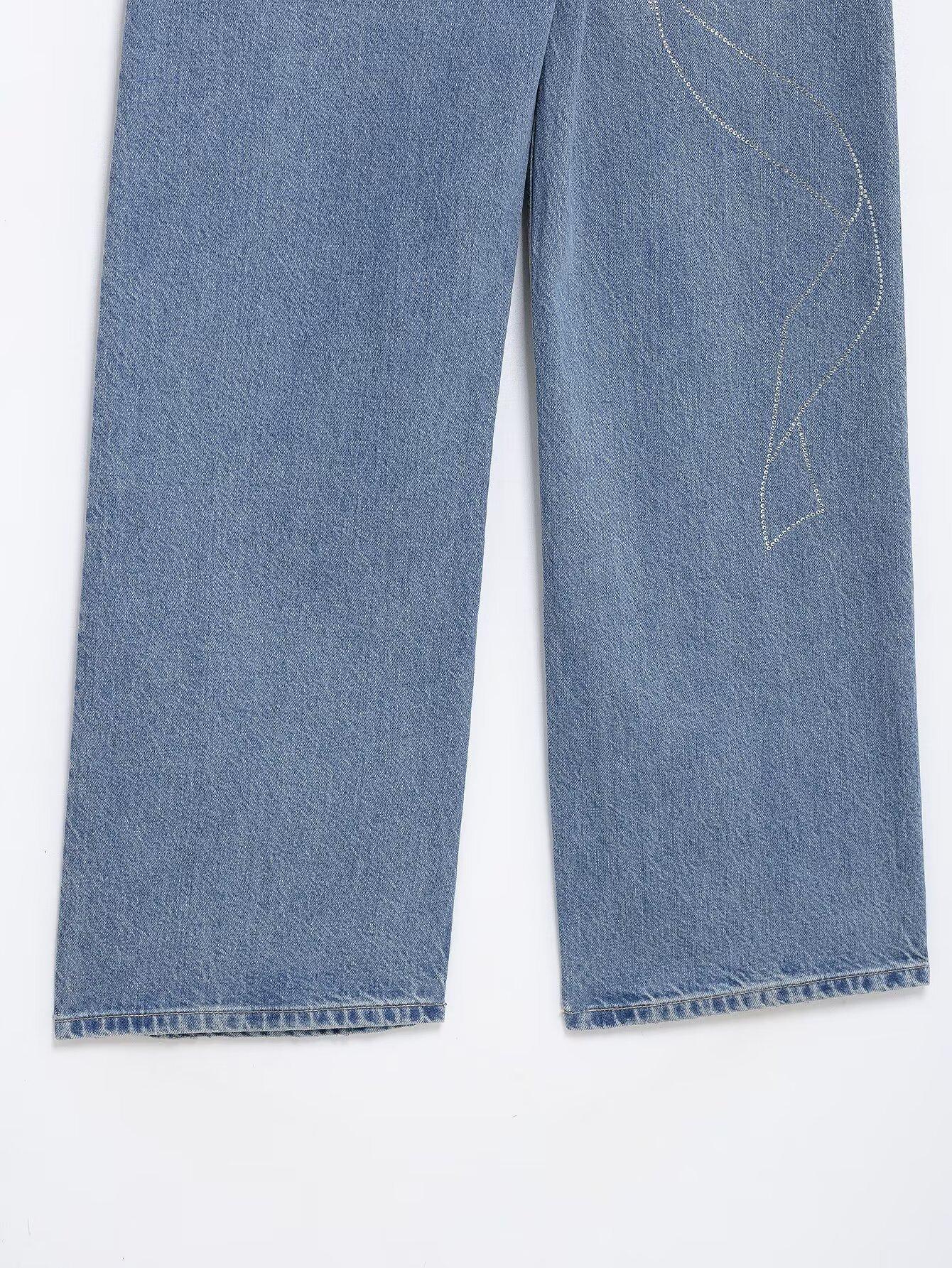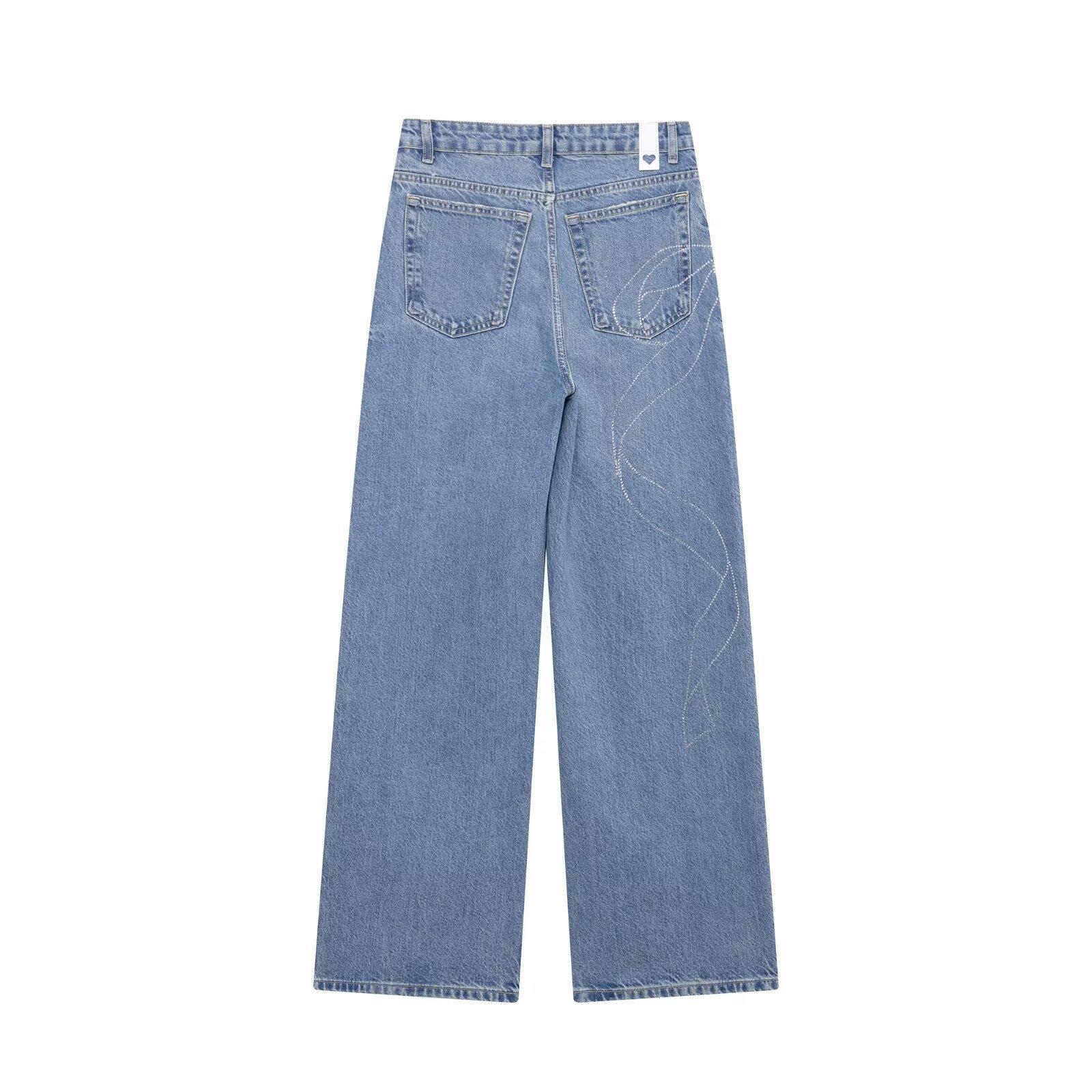 Explosiones transfronterizas AliExpress para mujer estilo europeo y americano comercio exterior al por mayor ZR en stock cintura alta decoración de diamantes de agua jeans holgados