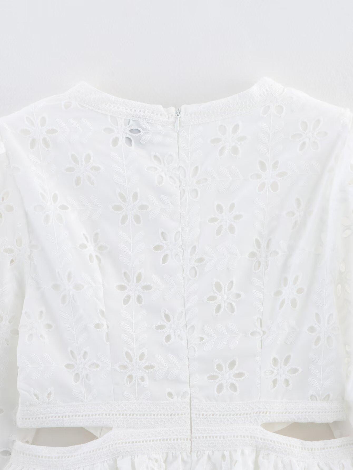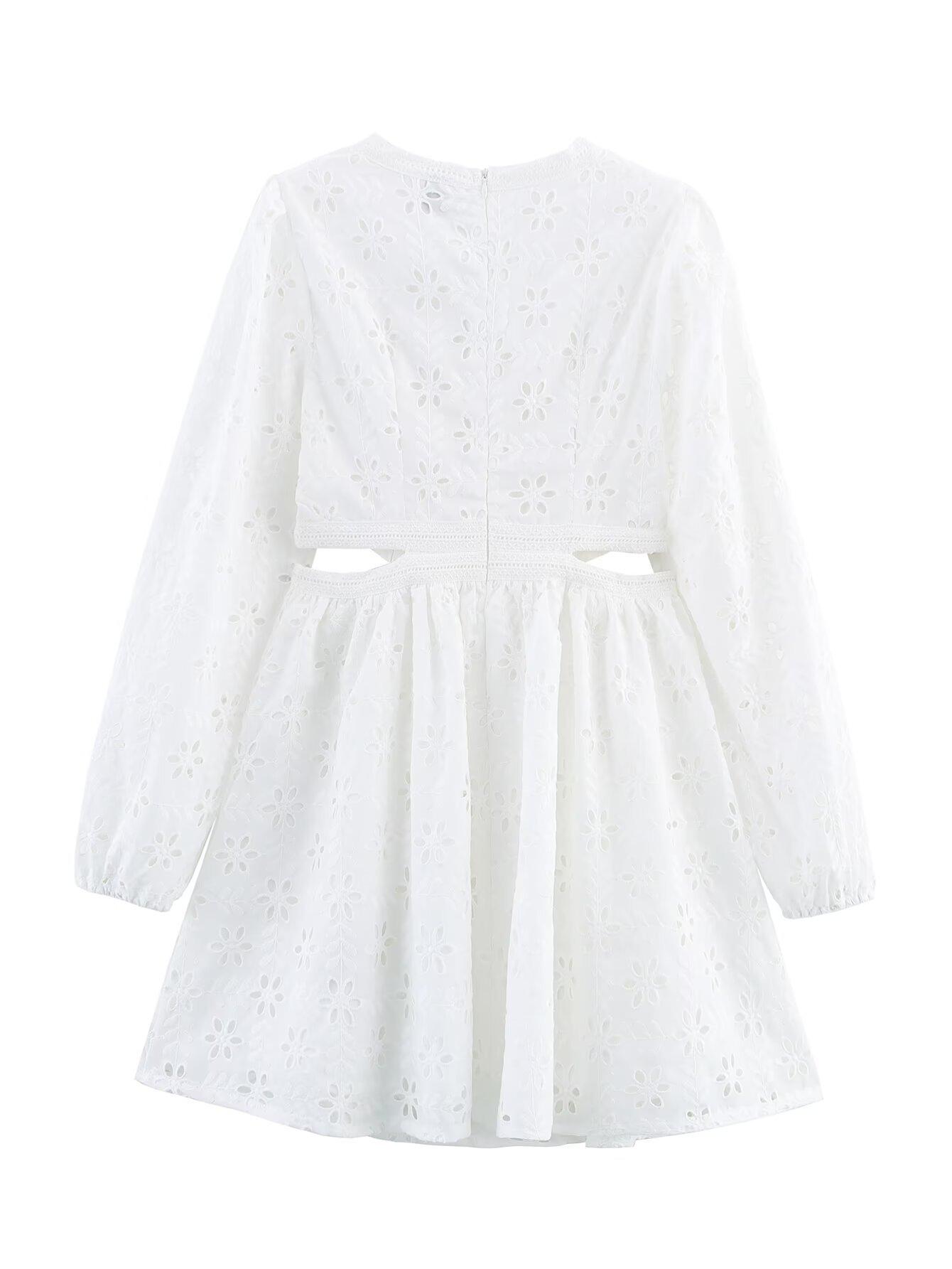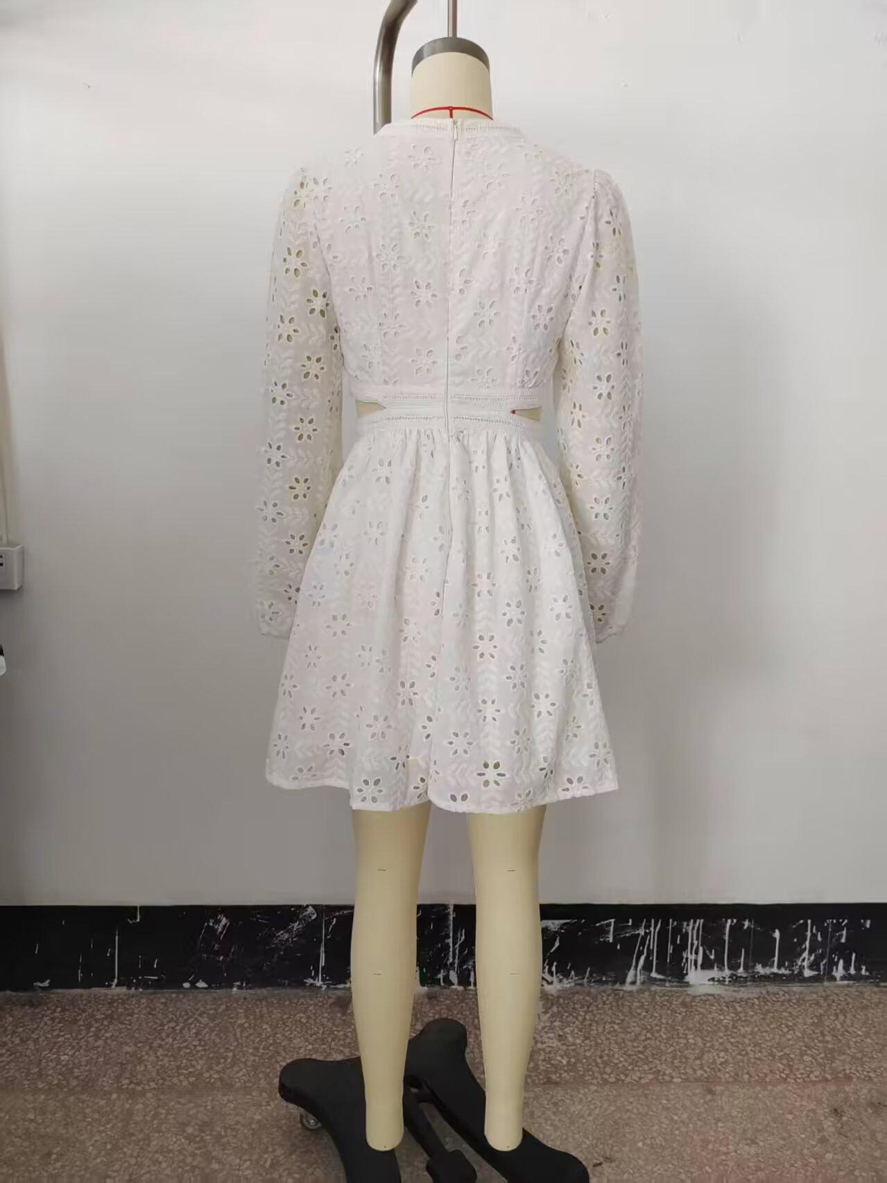 Vestido de mujer de moda nueva de otoño 2025 transfronterizo europeo y americano, temperamento, cuello en V, encaje en la cintura, calado, estilo ins, para mujer