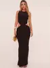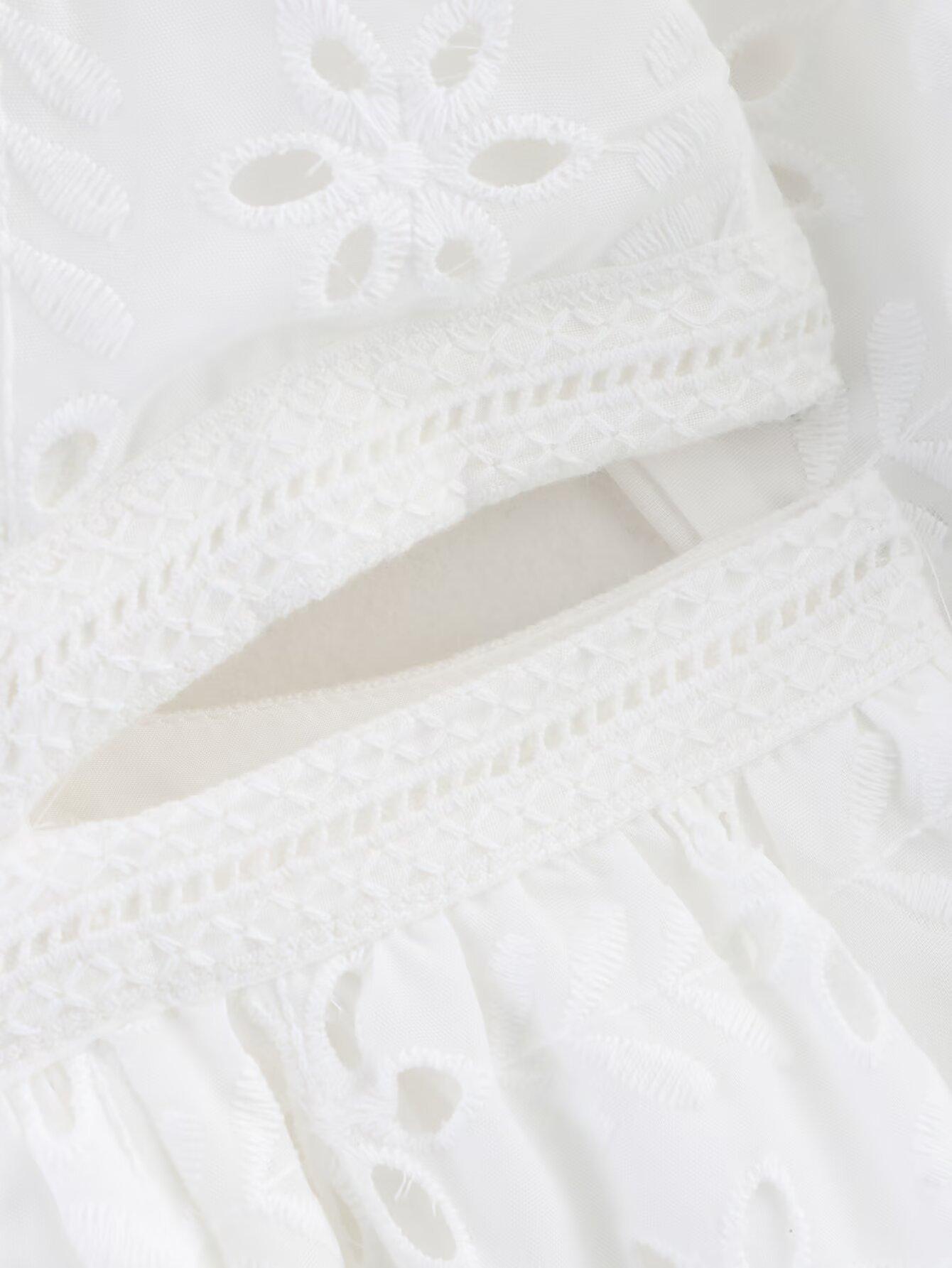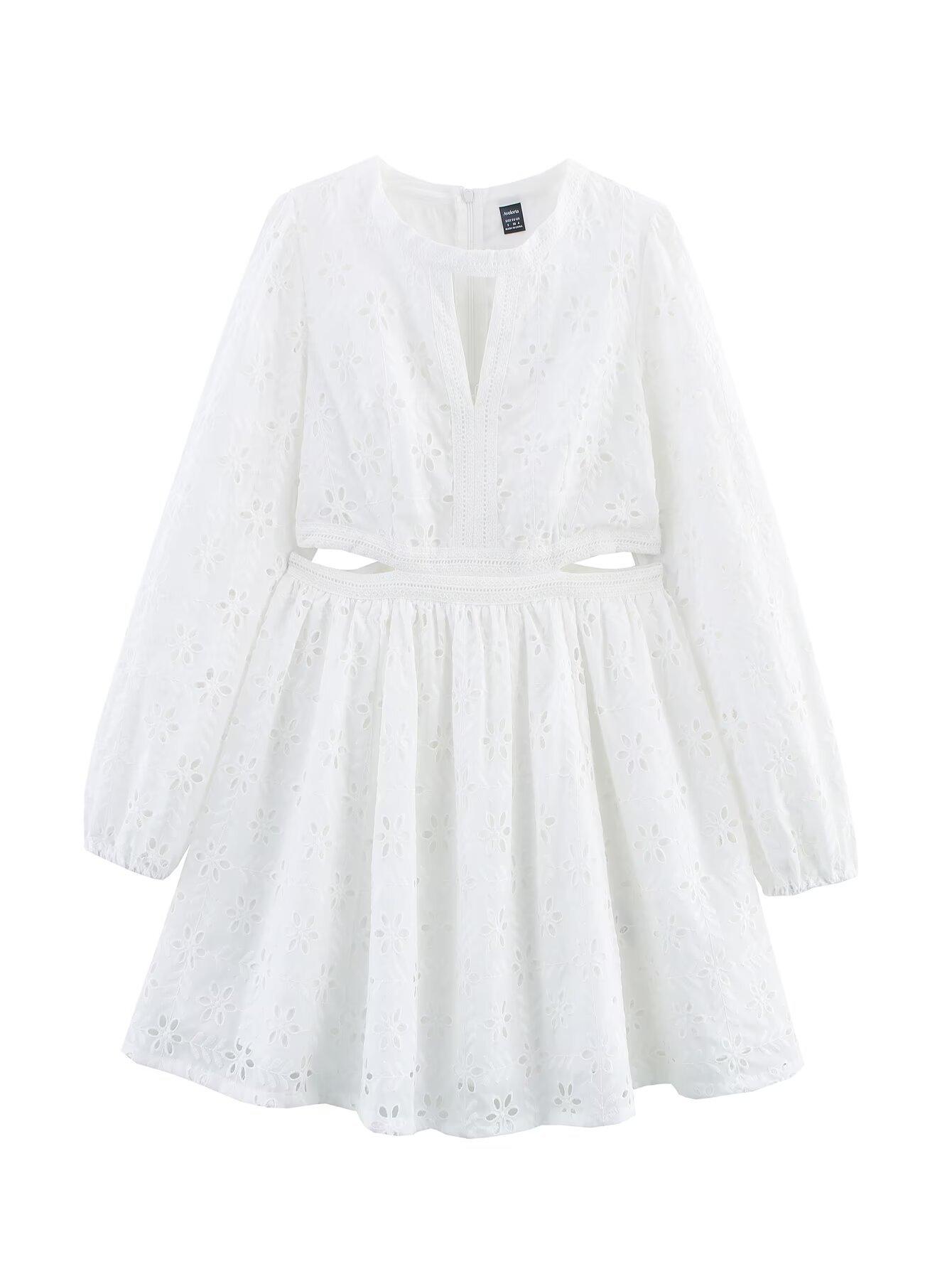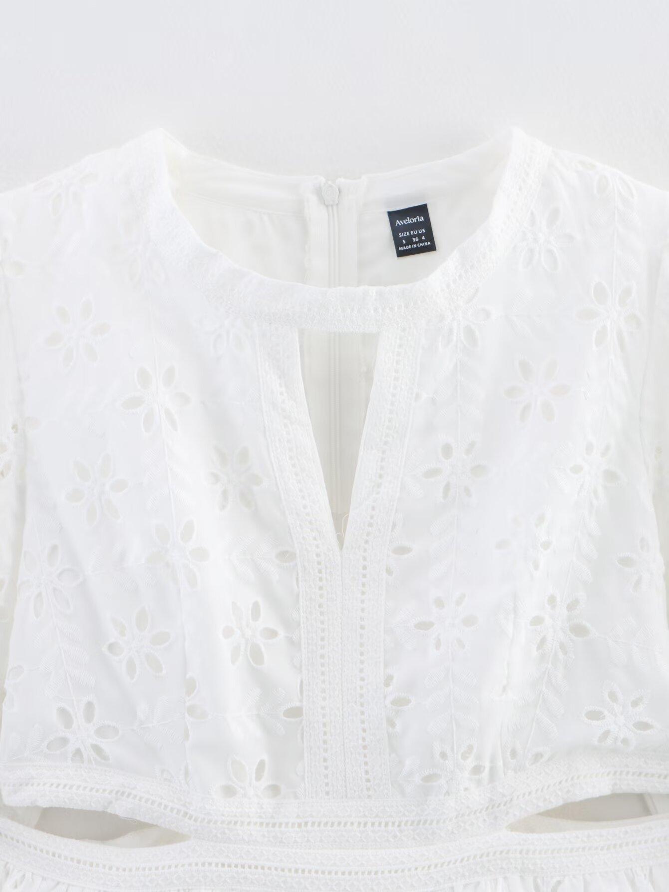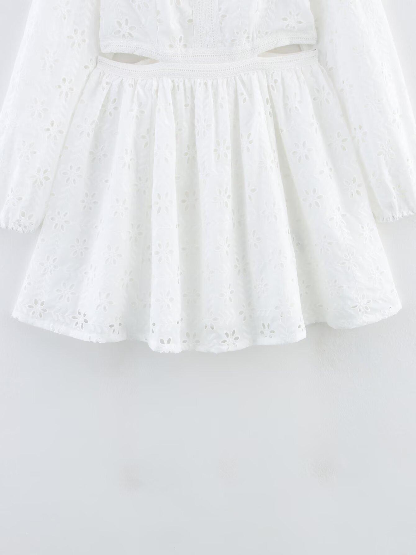 Vestido de mujer de moda nueva de otoño 2025 transfronterizo europeo y americano, temperamento, cuello en V, encaje en la cintura, calado, estilo ins, para mujer