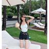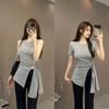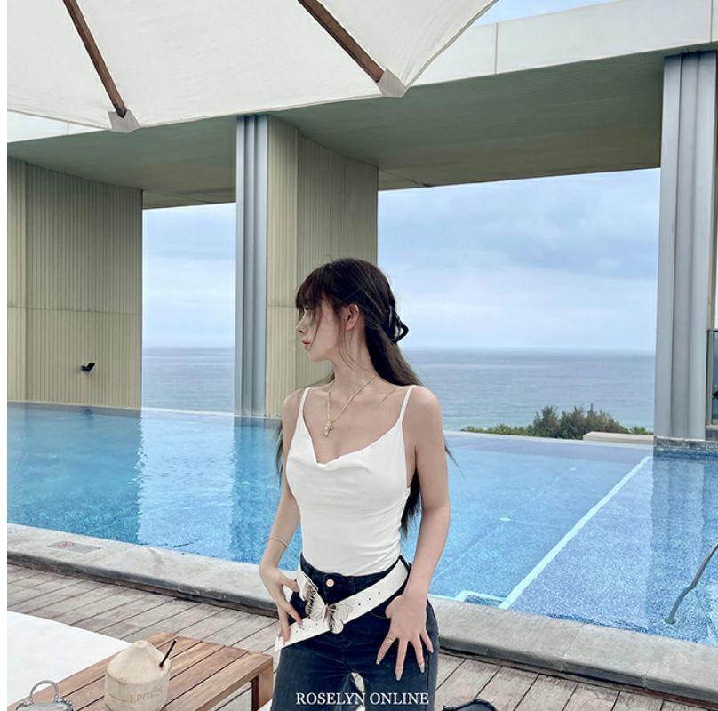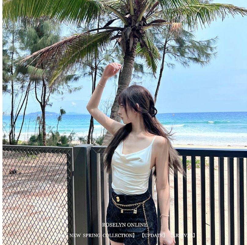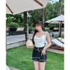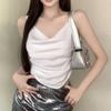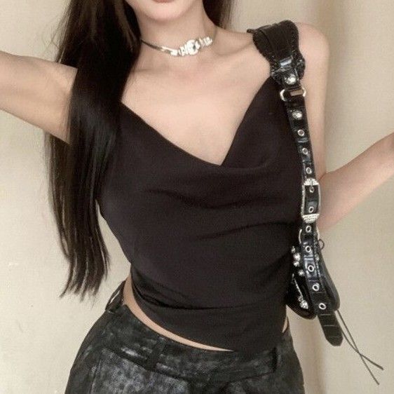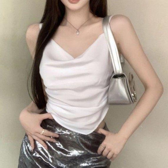 Camisola Rojo Rosa Pura Lujuria Sexy Chica Caliente Plisado Irregular Slim Top Corto Ropa Interior