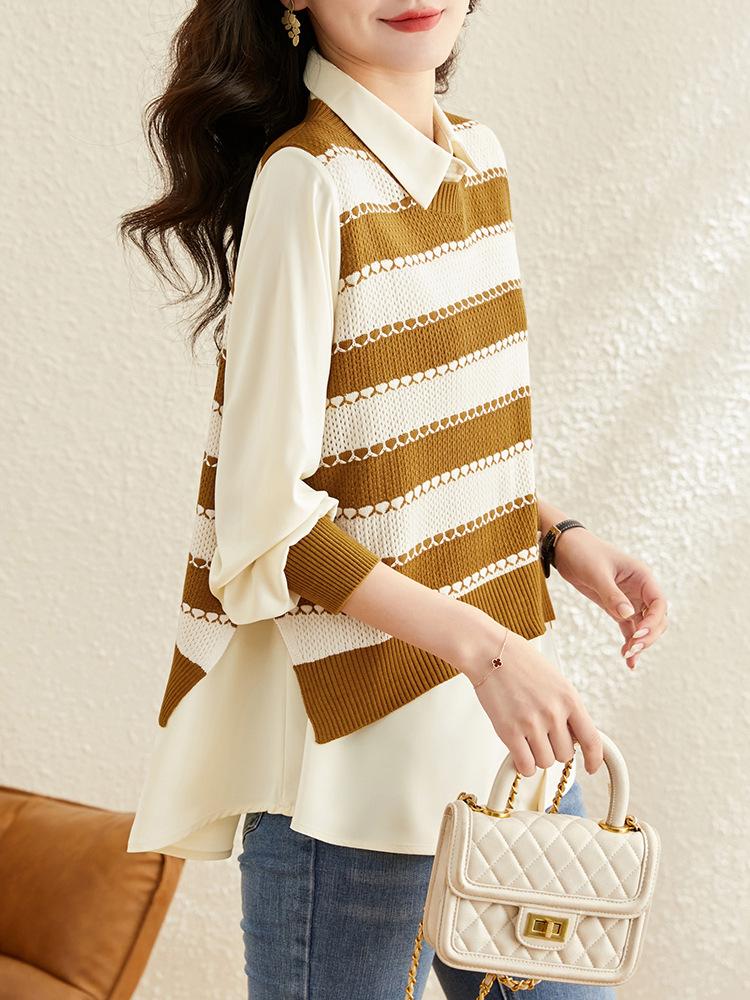 Conjunto de Dos Piezas de Camisa Blanca y Chaleco para Mujer Primavera Otoño 2025 Nuevo Estilo Estilo Extranjero Moda Chic Absolutamente Hermosa Blusa Top
