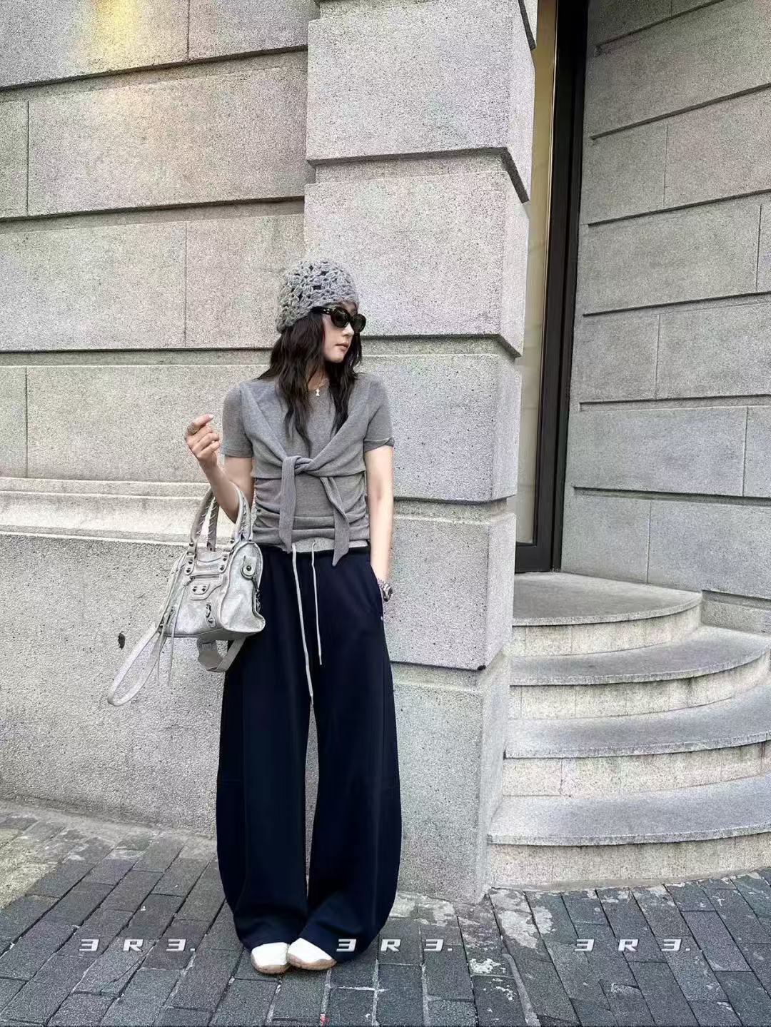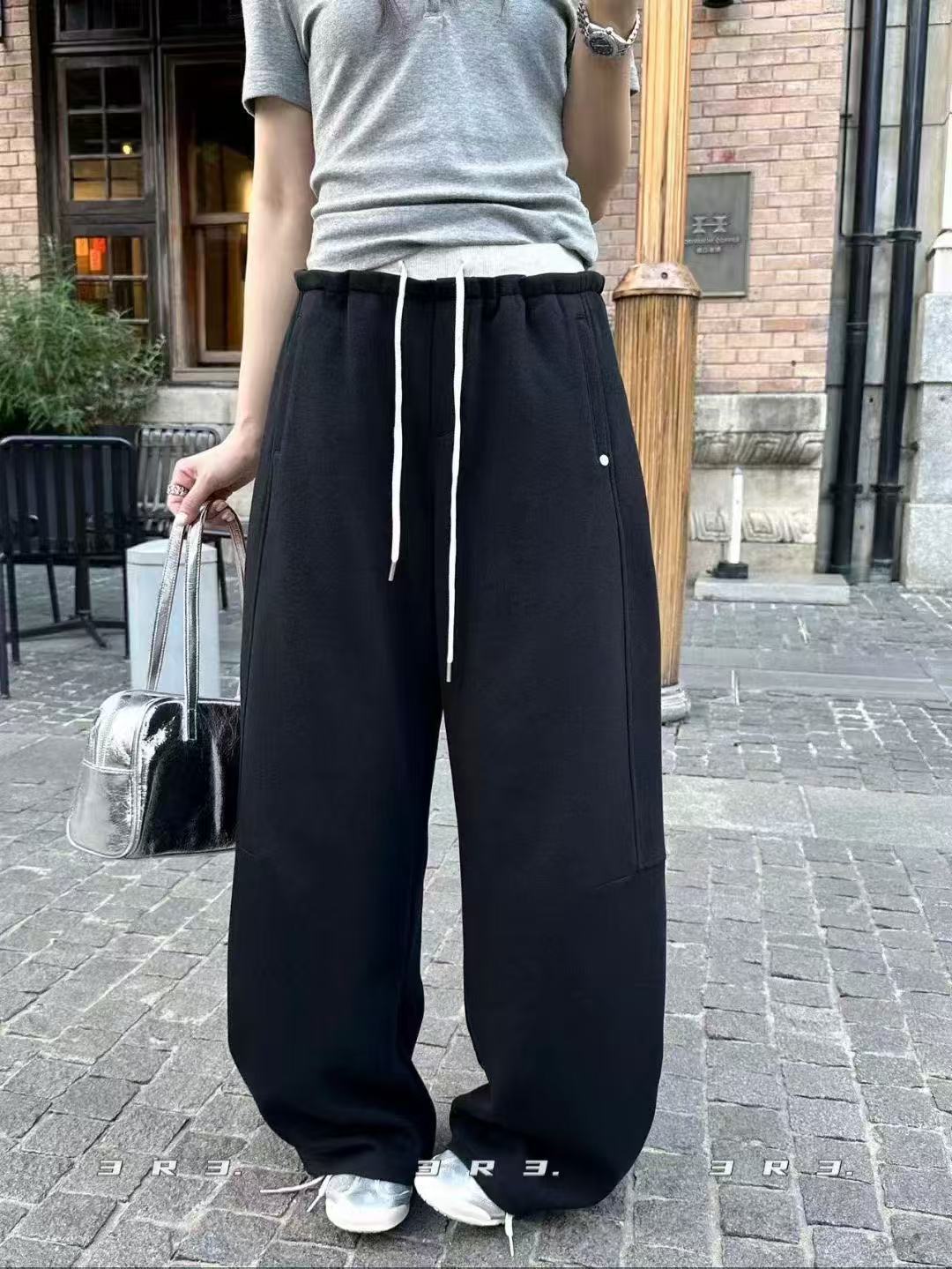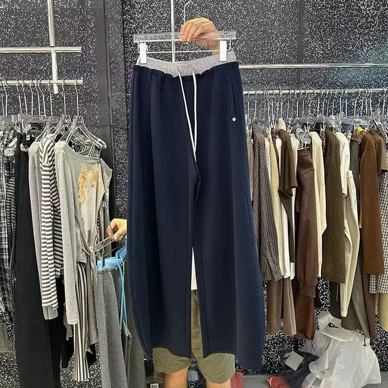 Otoño 2025 Nuevo Casual Versátil Bloque de Color Pantalones Deportivos con Cordón Cintura Elástica Pantalones Ajustados Pantalones Cimitarra Mujer