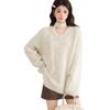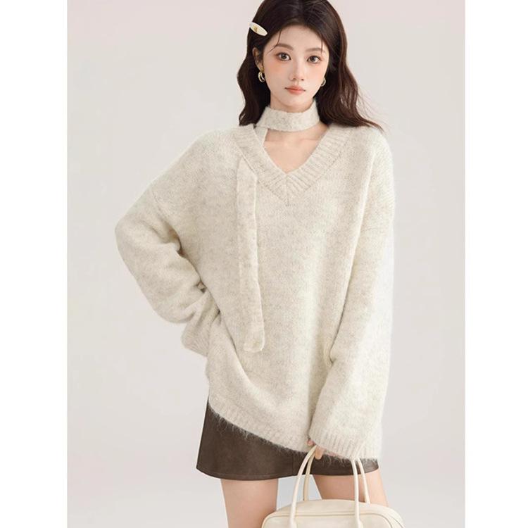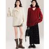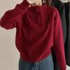 Suéter de punto de aguja gruesa suelto de cuello rojo colgante para mujer otoño/invierno 2025 talla grande top de largo medio jersey para mujer