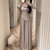 Camisola Irregular para Mujer Verano Manga Larga Protección Solar Cárdigan Conjunto de Tres Piezas con Pantalones Drapeados de Pierna Ancha y Falda Larga Traje Casual
