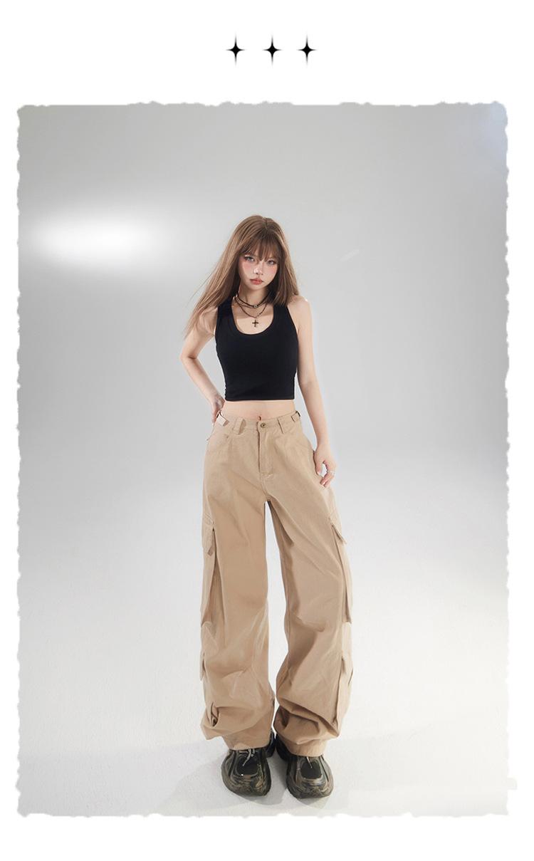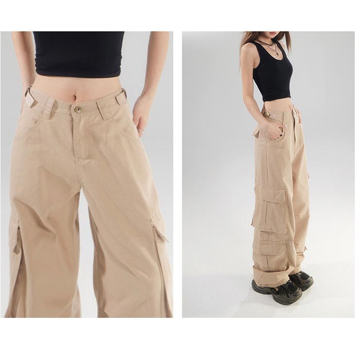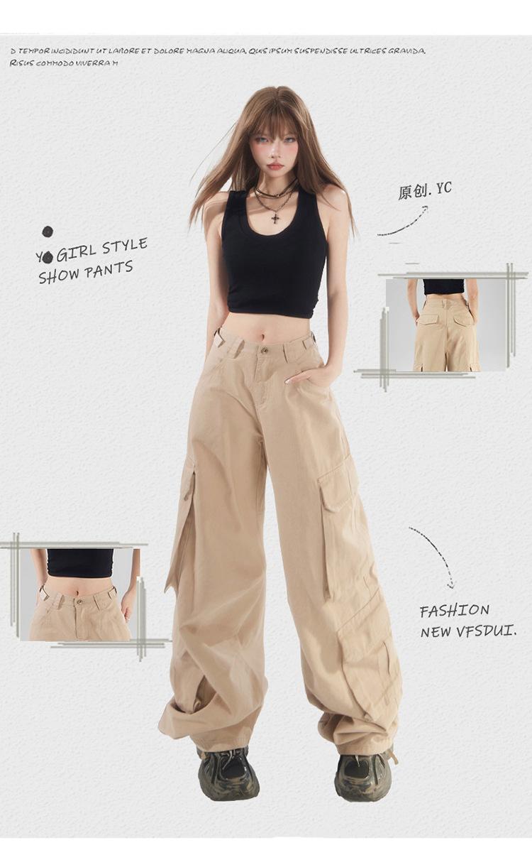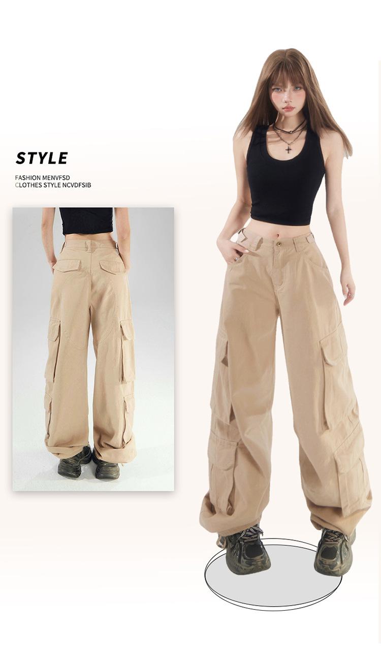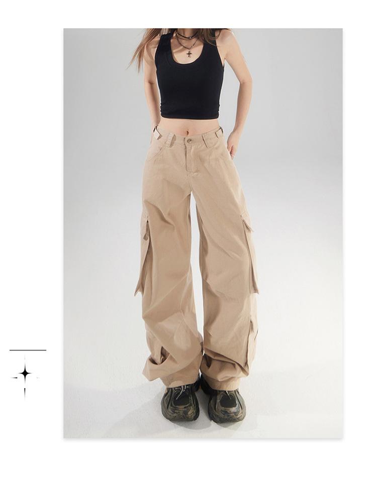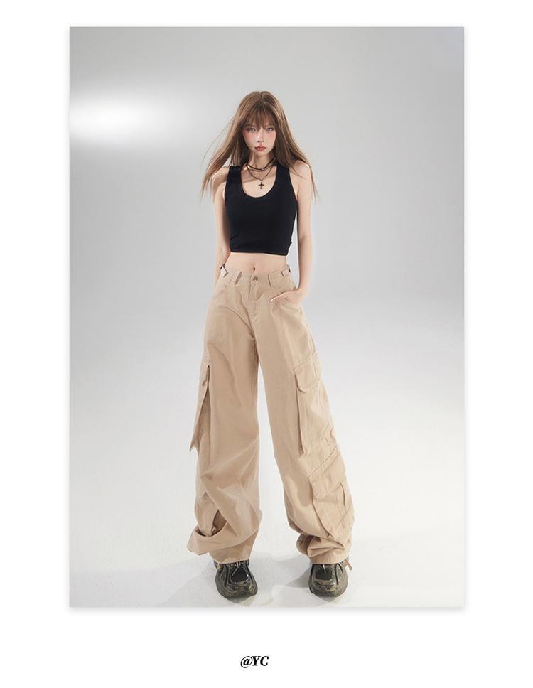 YC & Pantalones Holgados de Pierna Ancha de Cintura Alta Retro Americano Peto de Cintura Ajustable Combinable Nicho Rectos Casuales para Mujer