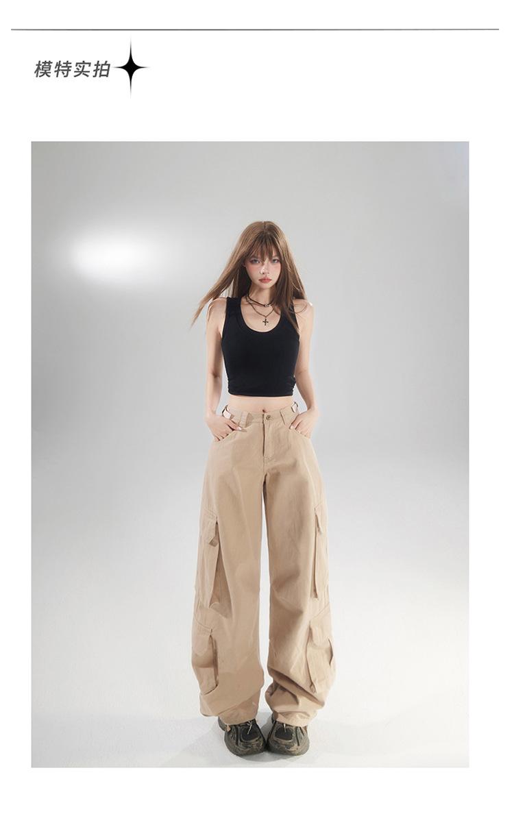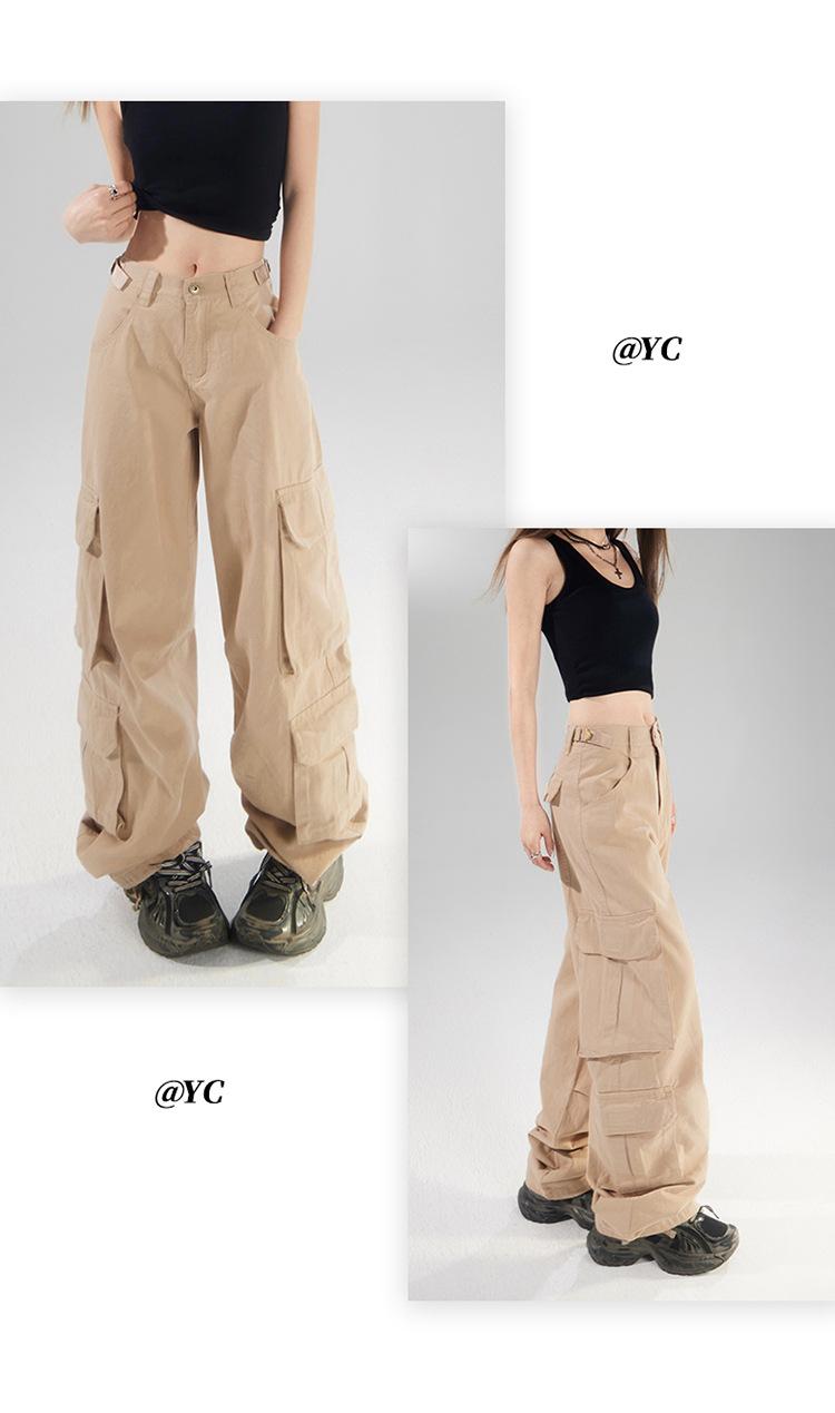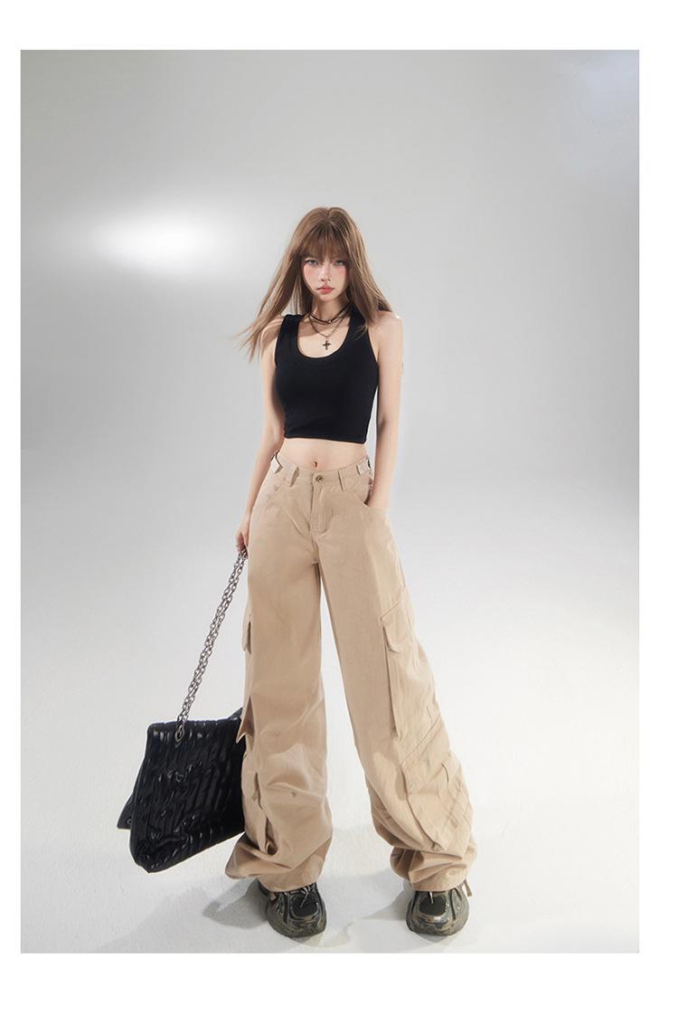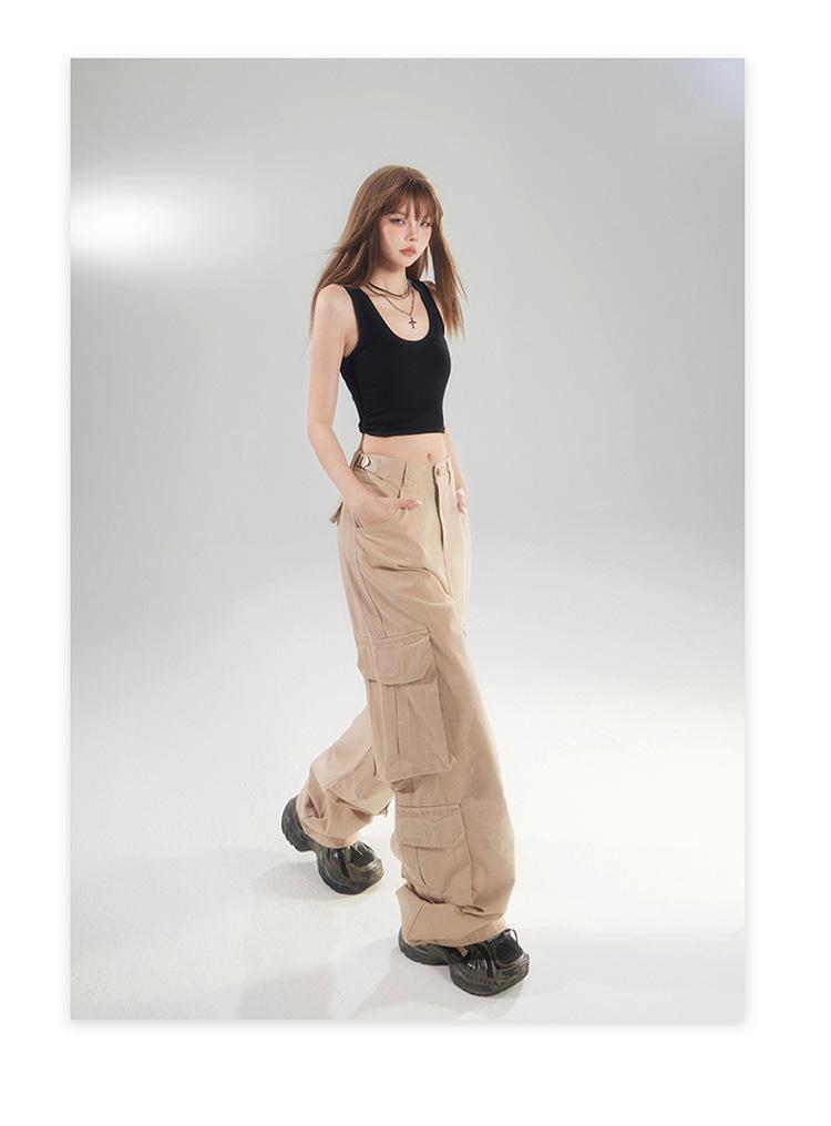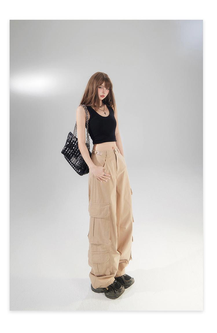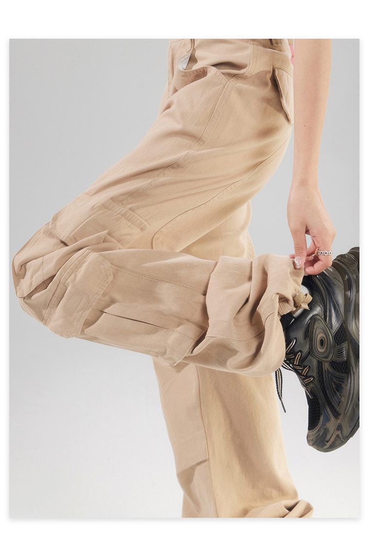 YC & Pantalones Holgados de Pierna Ancha de Cintura Alta Retro Americano Peto de Cintura Ajustable Combinable Nicho Rectos Casuales para Mujer