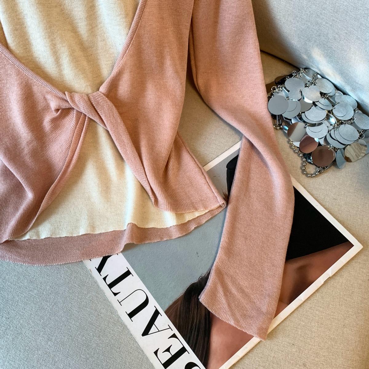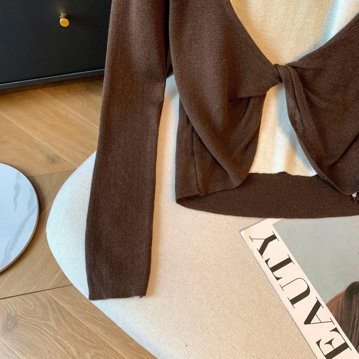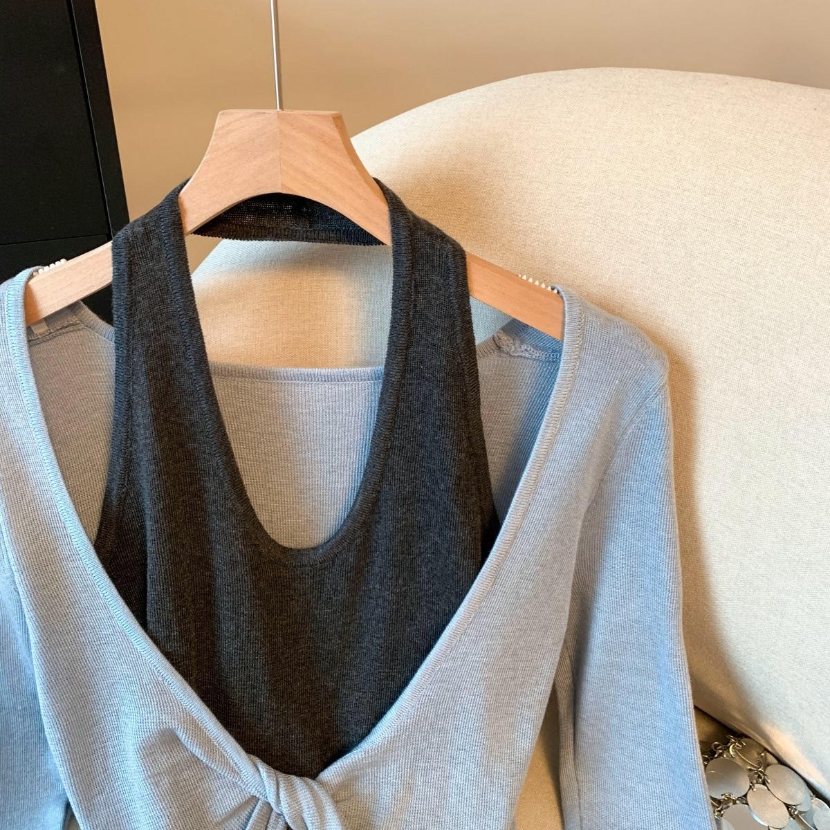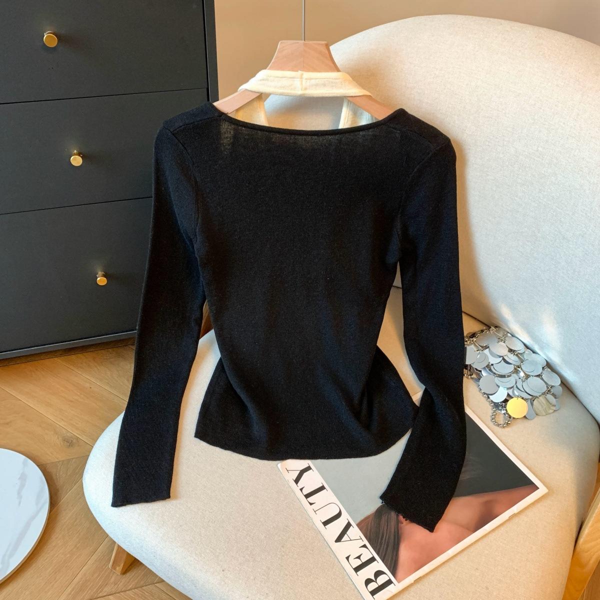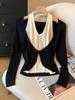 Otoño 2025 Ropa Nueva para Mujer Estilo Coreano Falso Dos Piezas Suéter Tejido para Dama Adelgazante Nicho Bloque de Color Top Mujer A7477