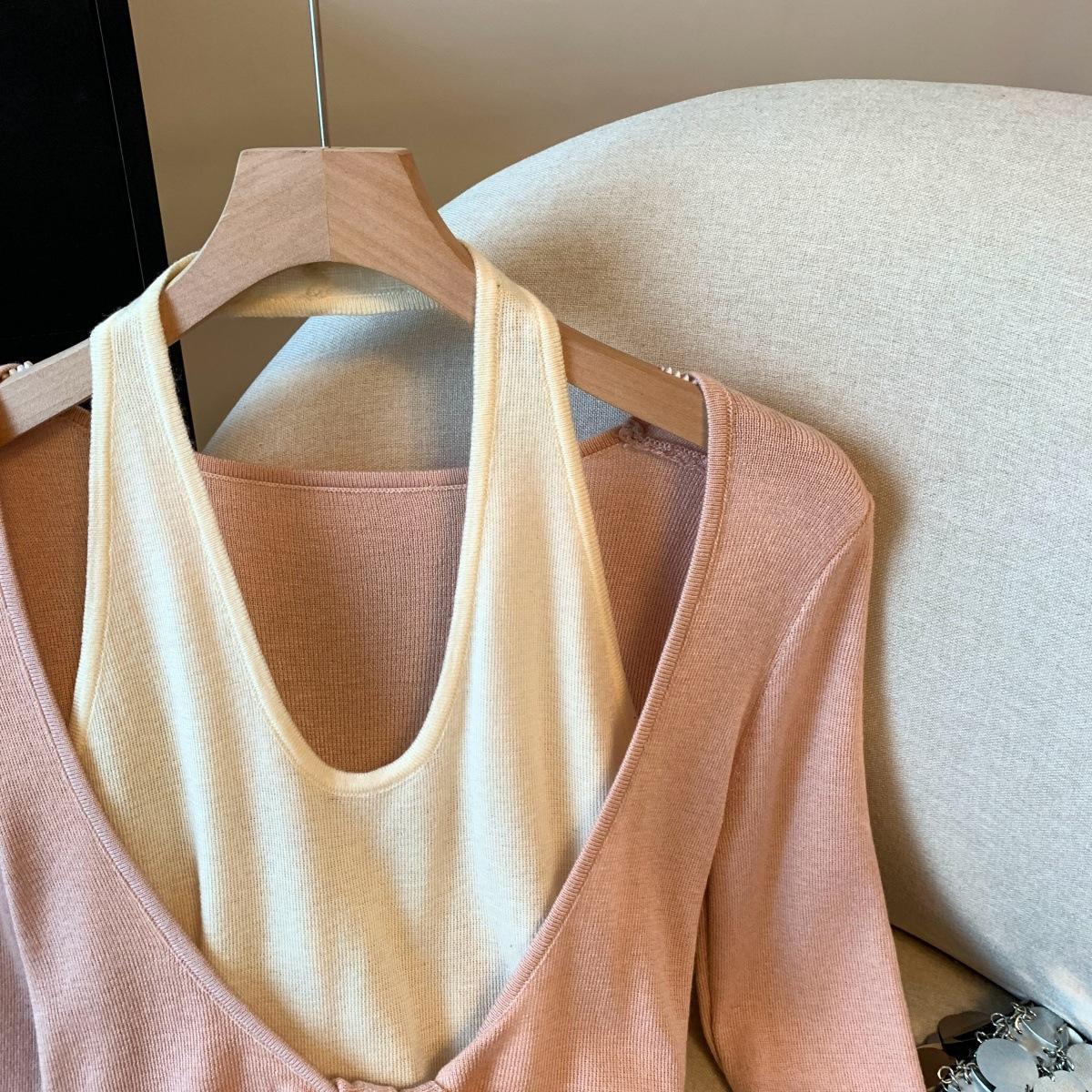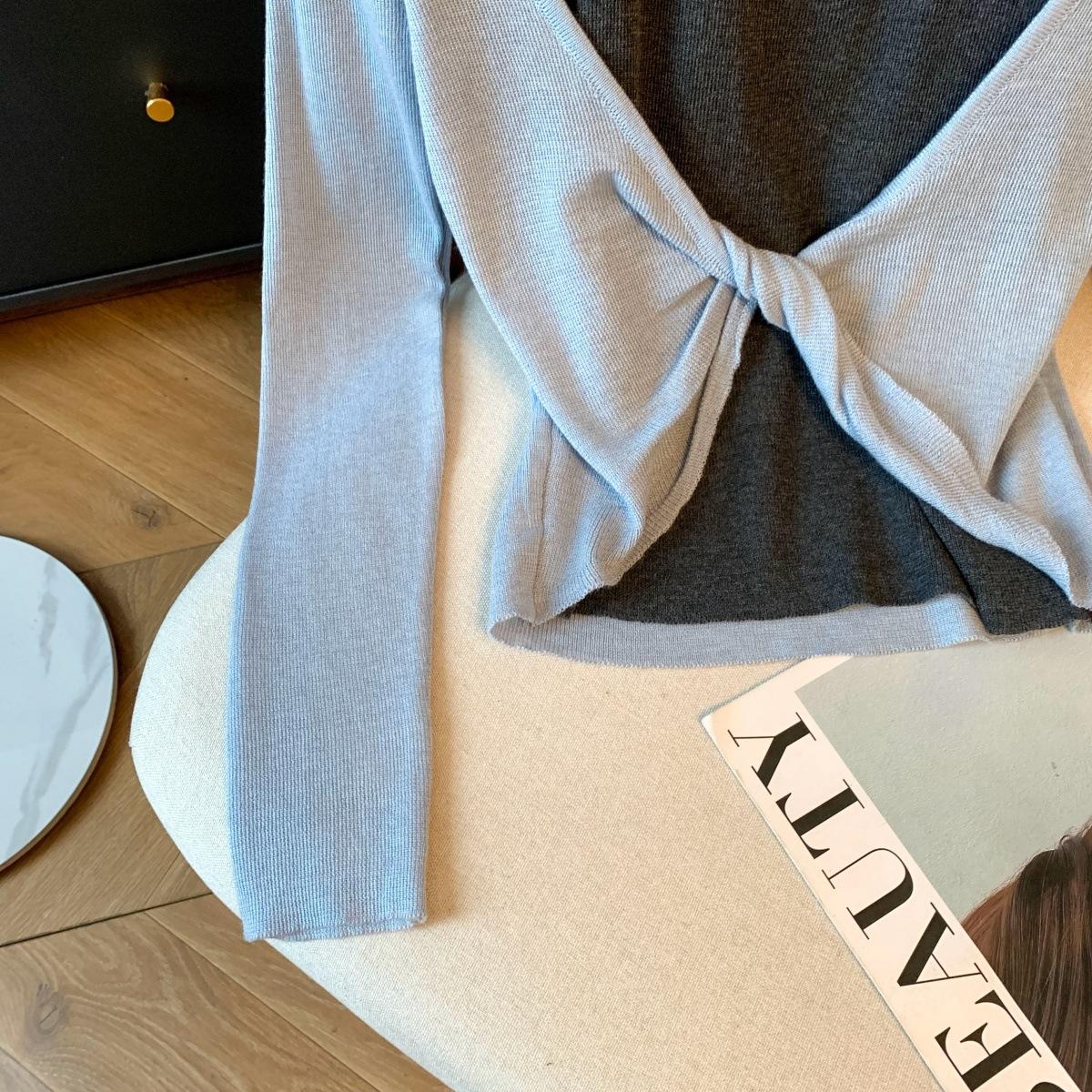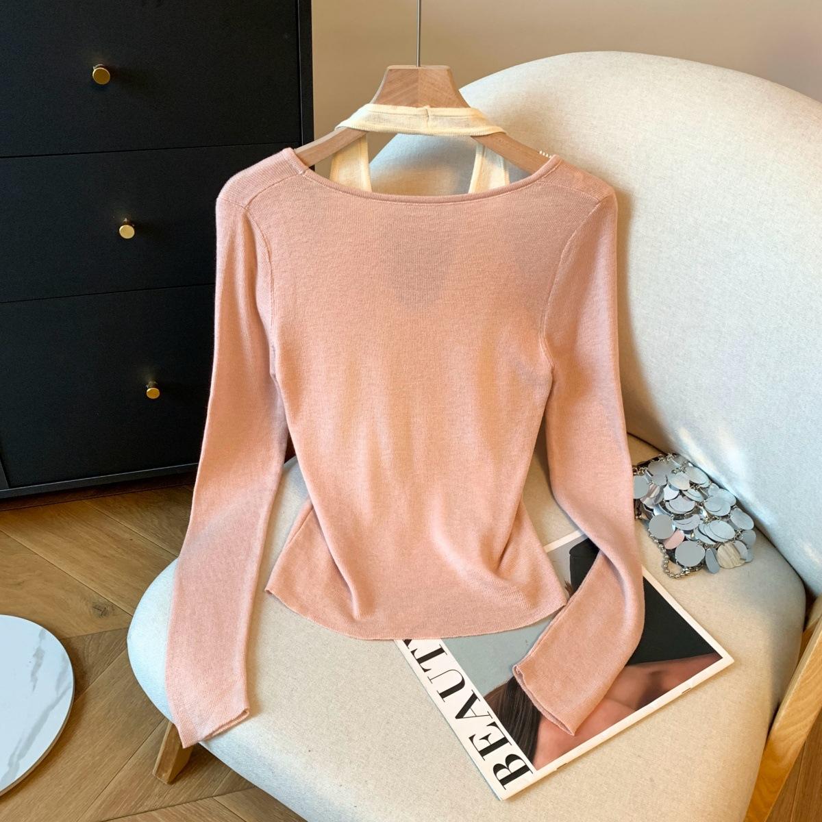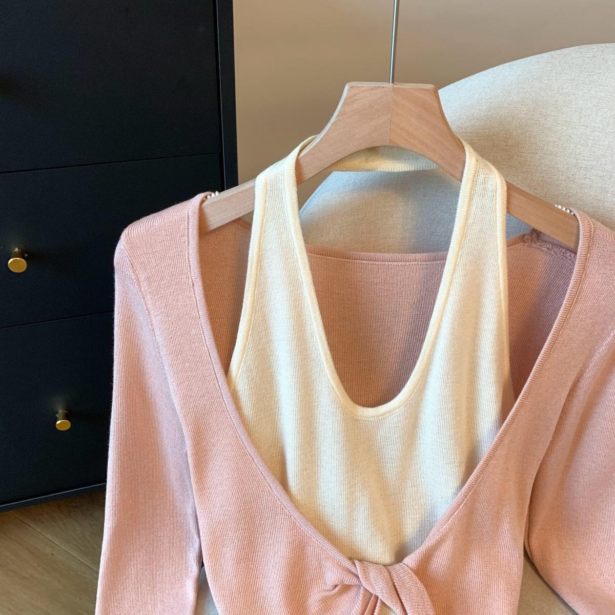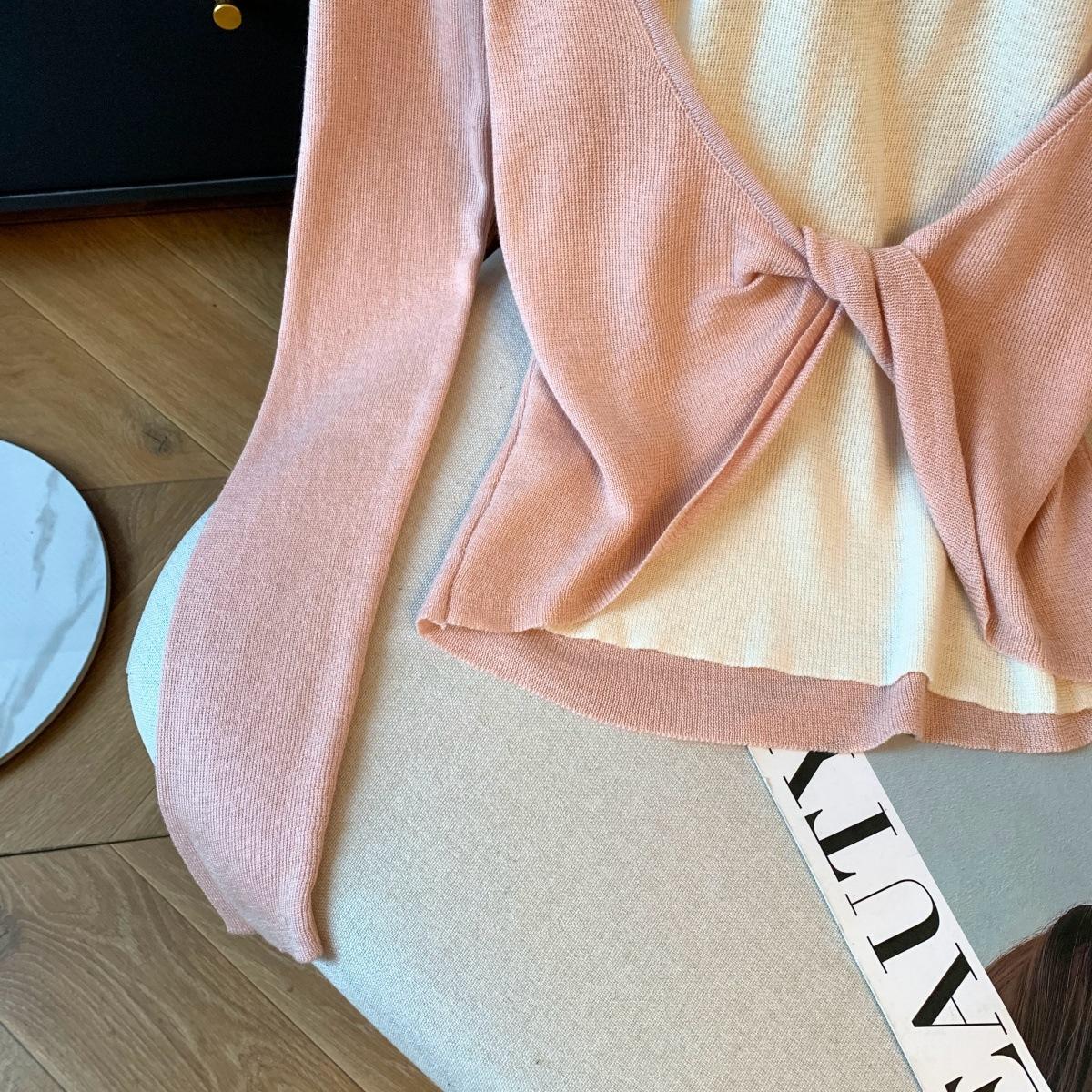 Otoño 2025 Ropa Nueva para Mujer Estilo Coreano Falso Dos Piezas Suéter Tejido para Dama Adelgazante Nicho Bloque de Color Top Mujer A7477