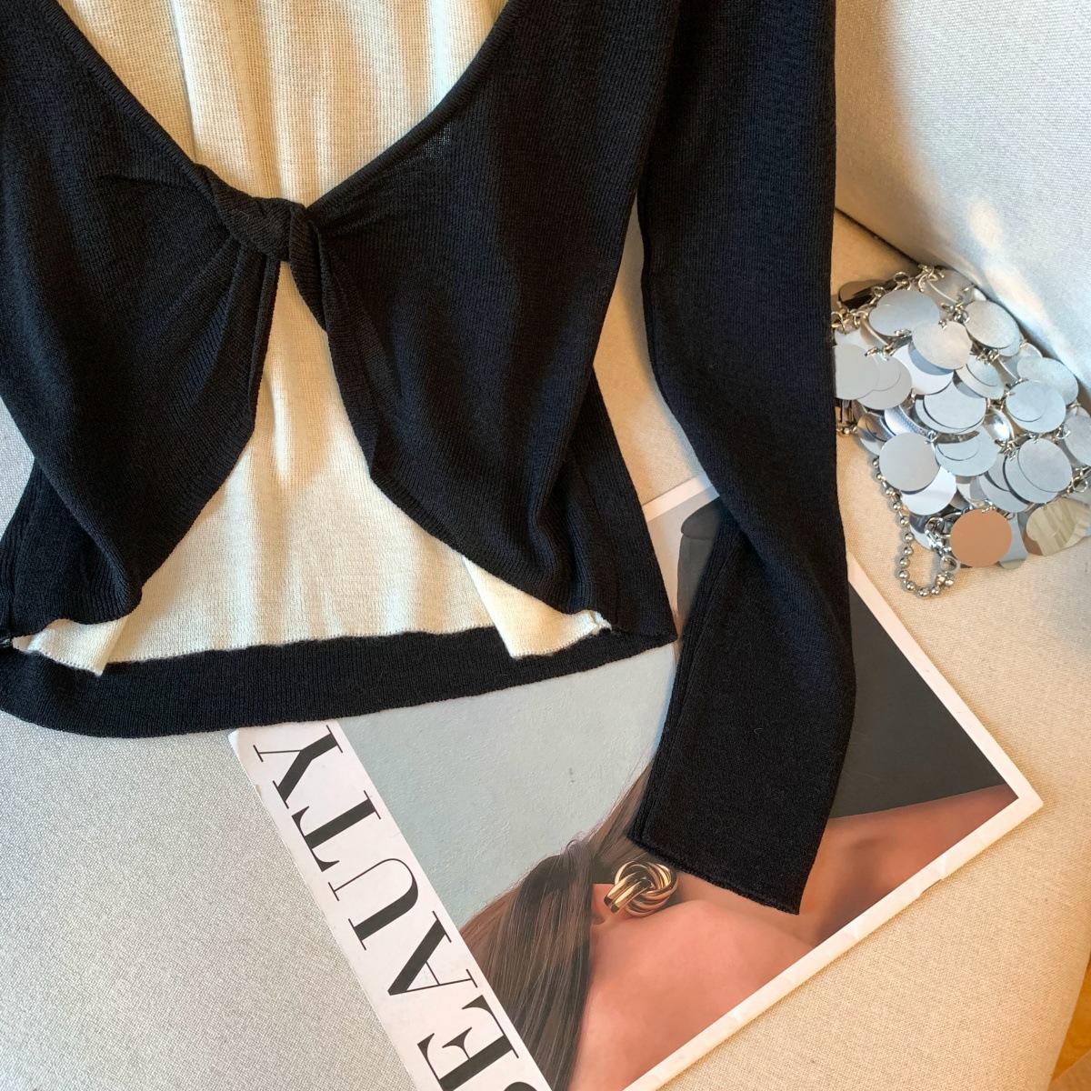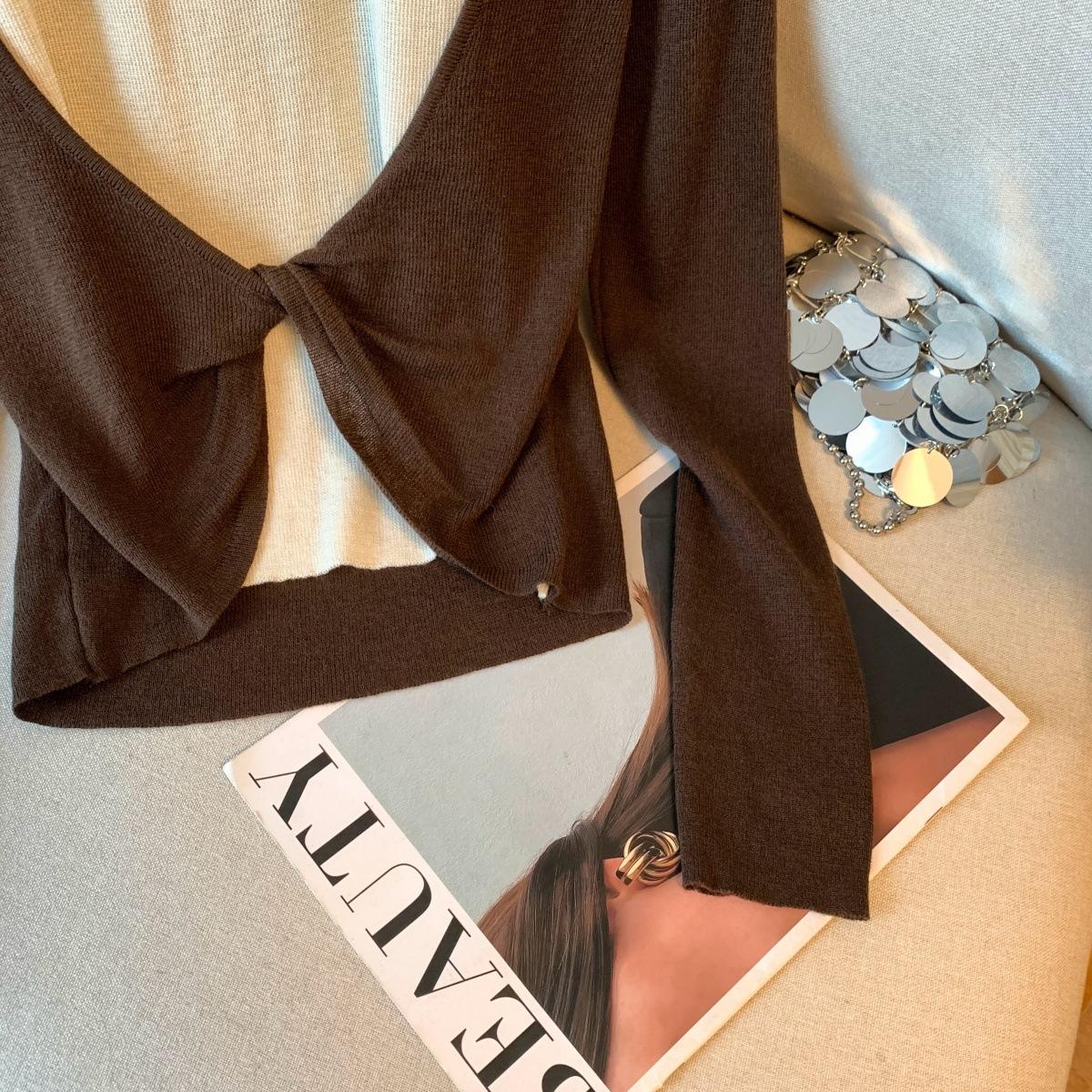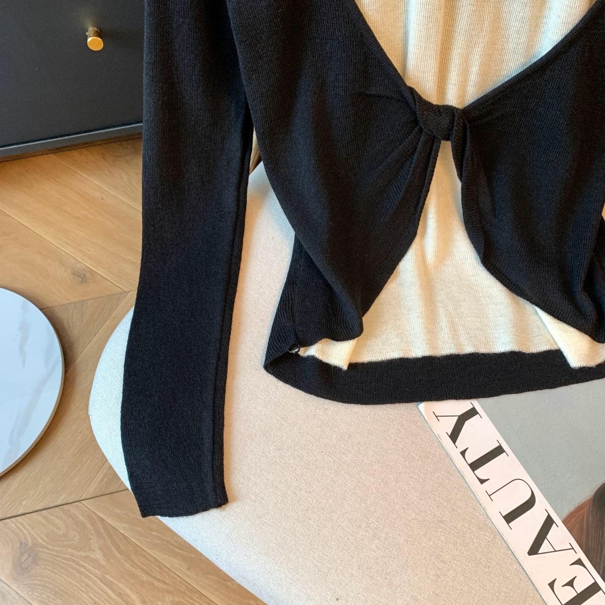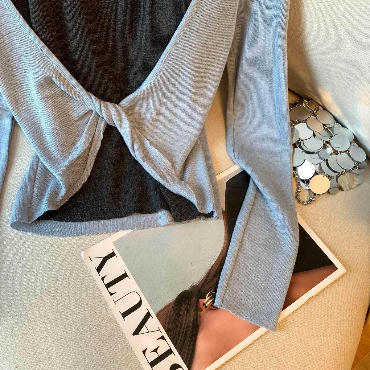 Otoño 2025 Ropa Nueva para Mujer Estilo Coreano Falso Dos Piezas Suéter Tejido para Dama Adelgazante Nicho Bloque de Color Top Mujer A7477