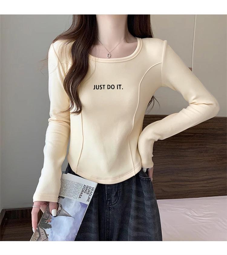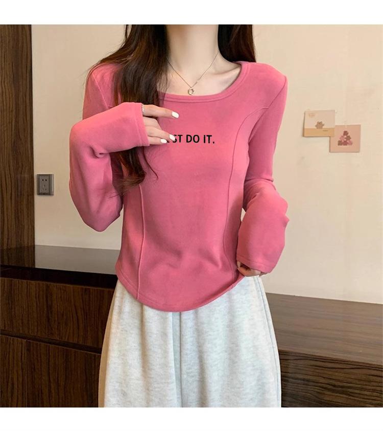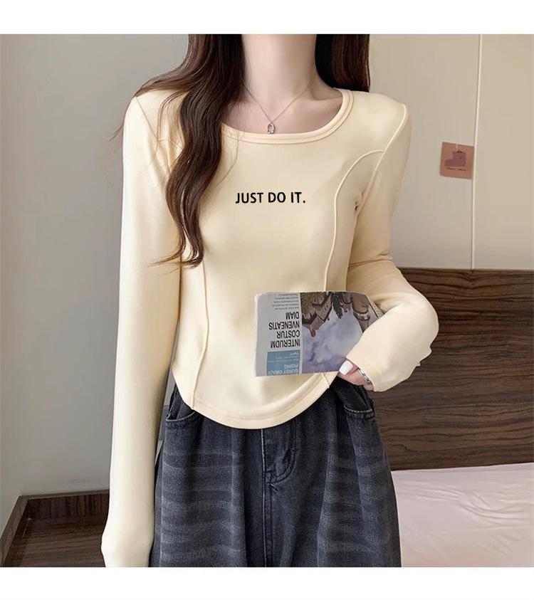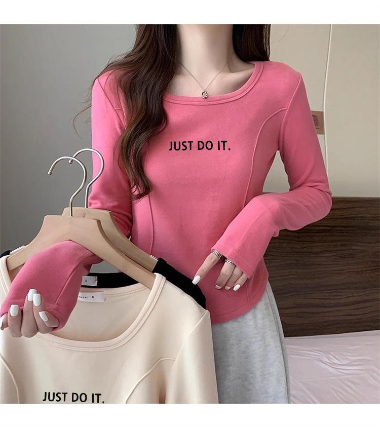 Playera interior de terciopelo de manga larga para mujer 2025 otoño e invierno nueva base cálida engrosada camiseta pequeña top corto ajustado
