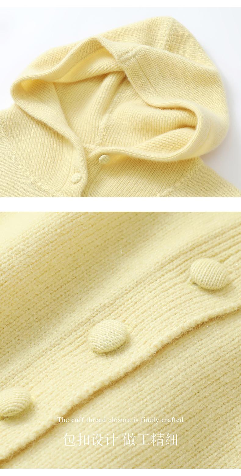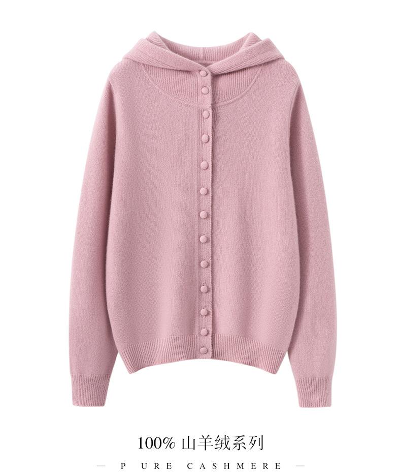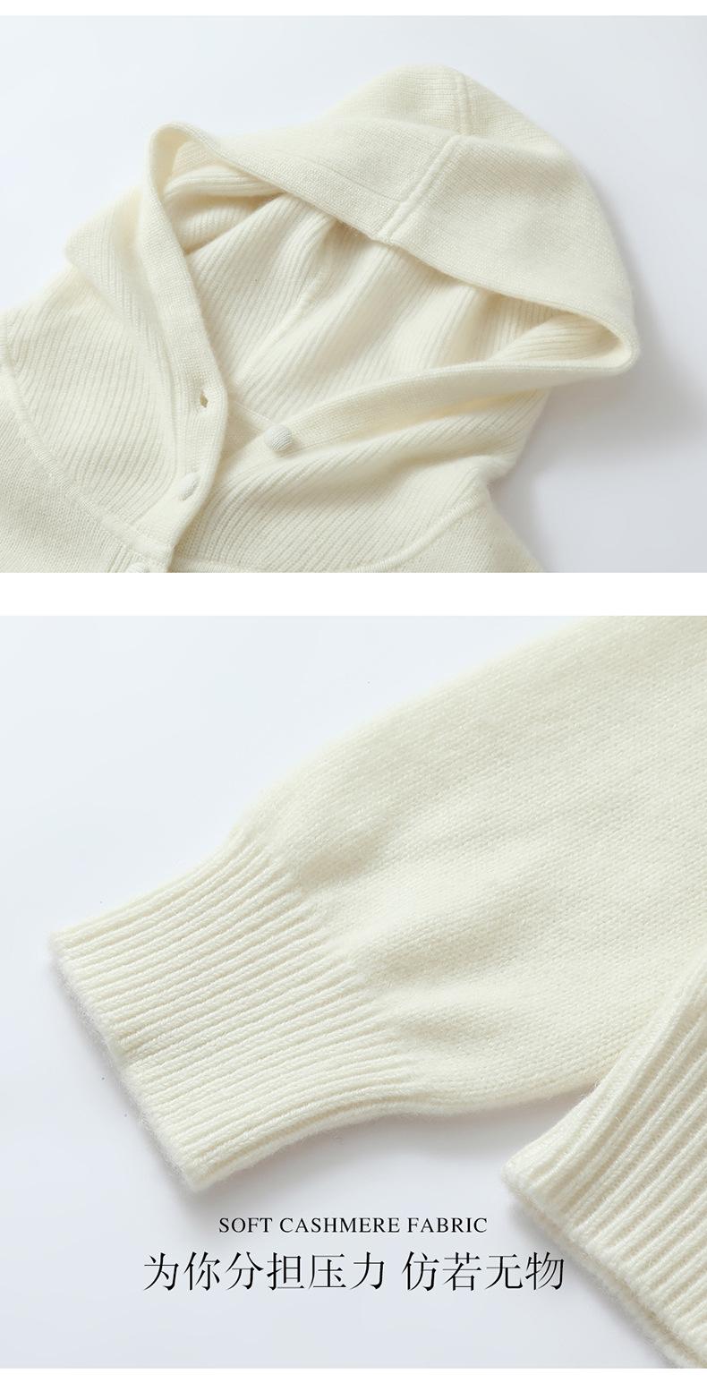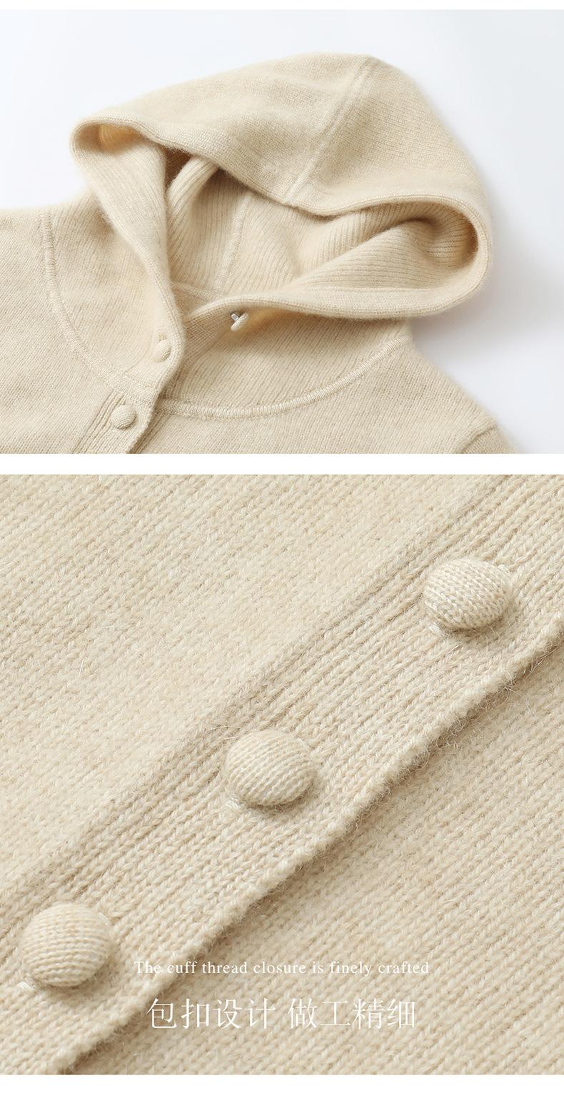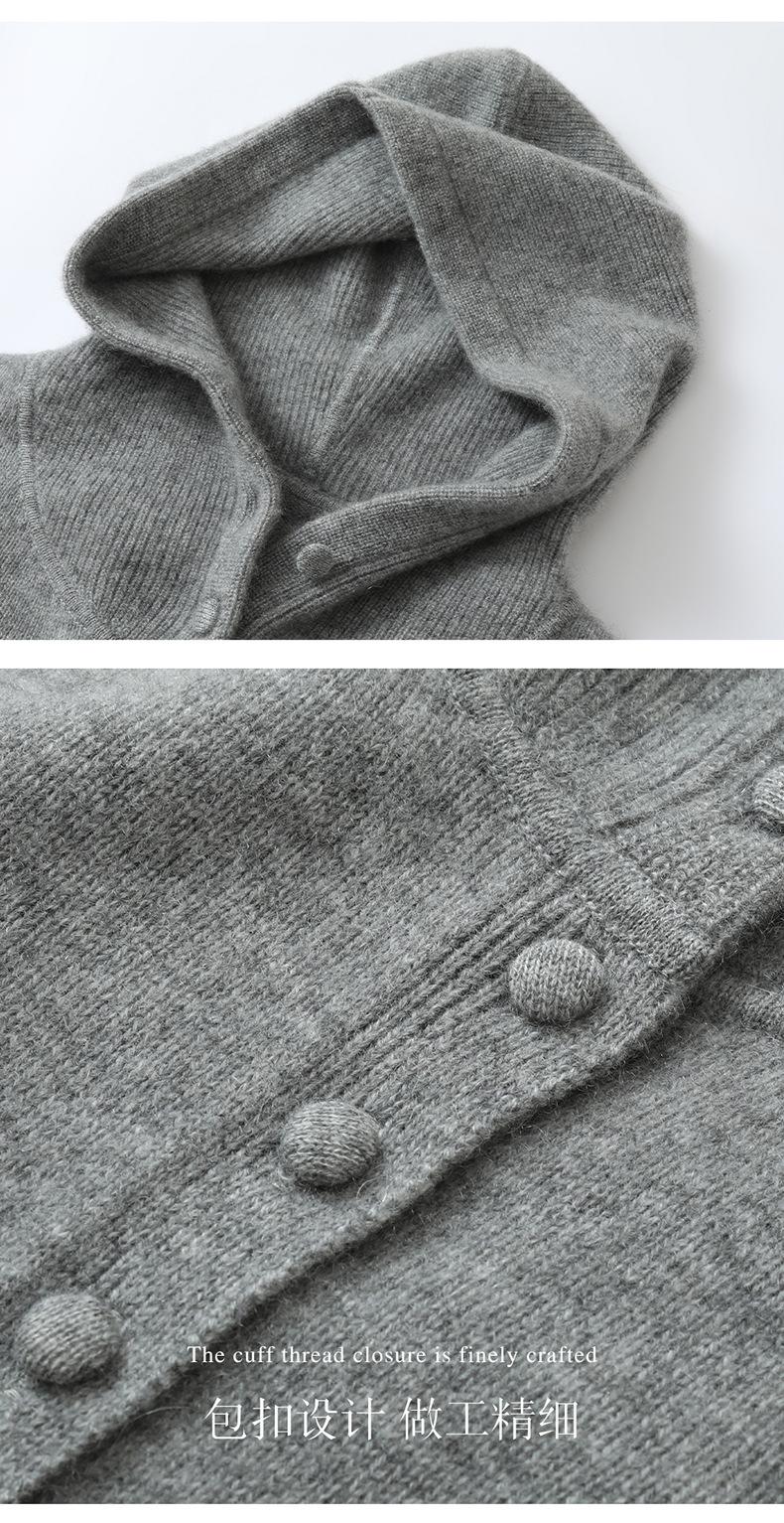 Nuevo Otoño/Invierno 100% Cachemira Pura Casual Suelto Versátil Moda Sencillo Color Sólido Cárdigan Tejido con Capucha Abrigo