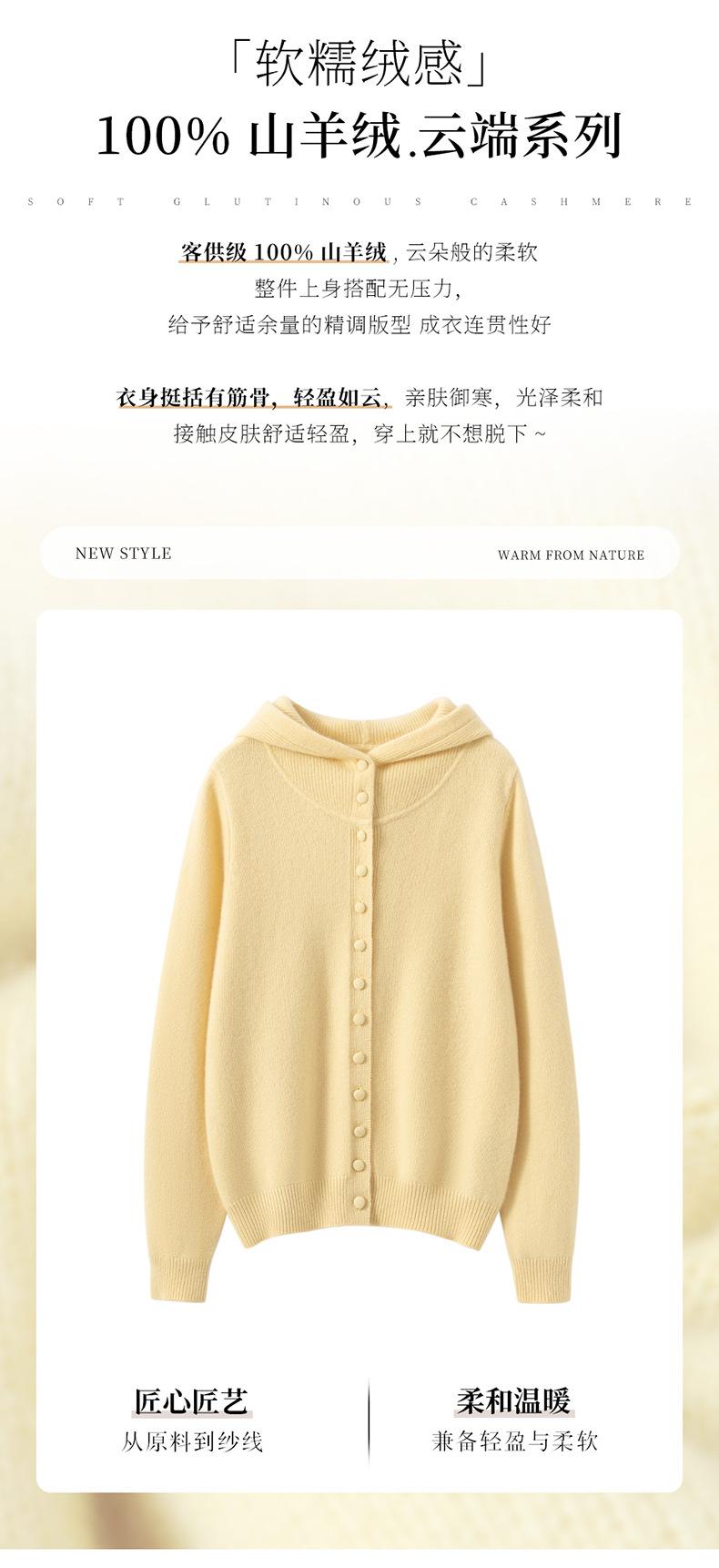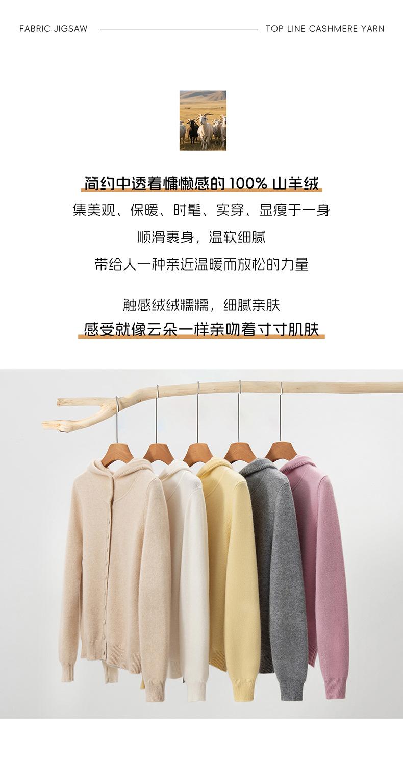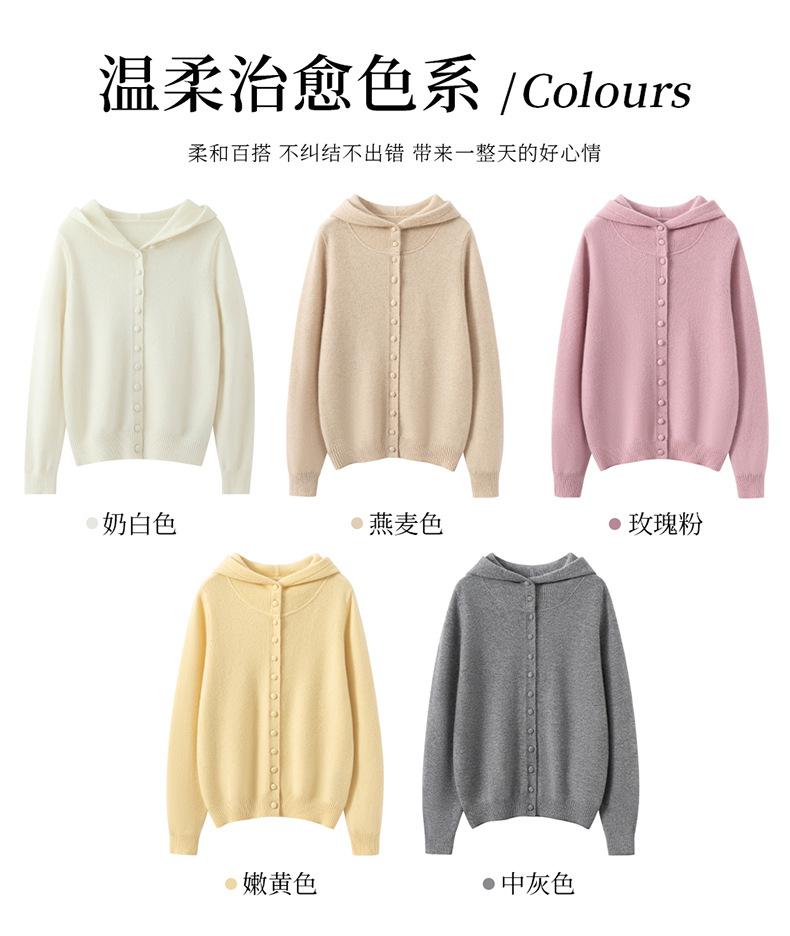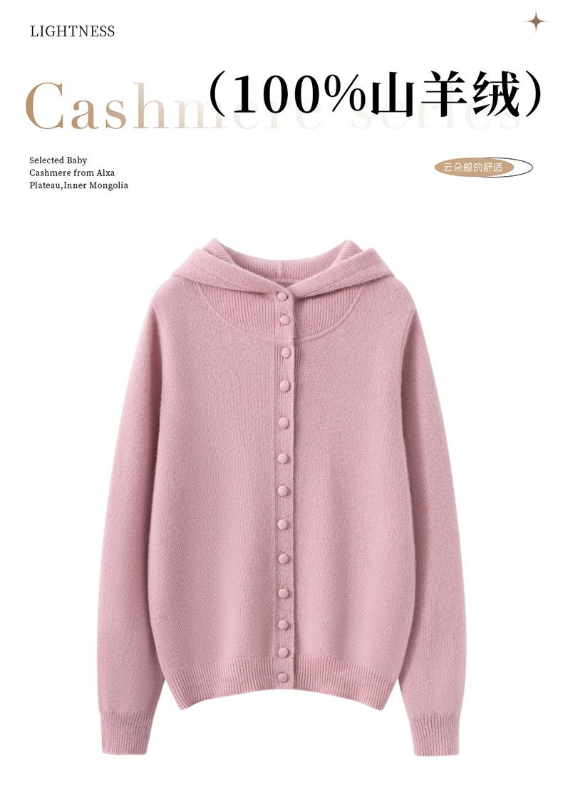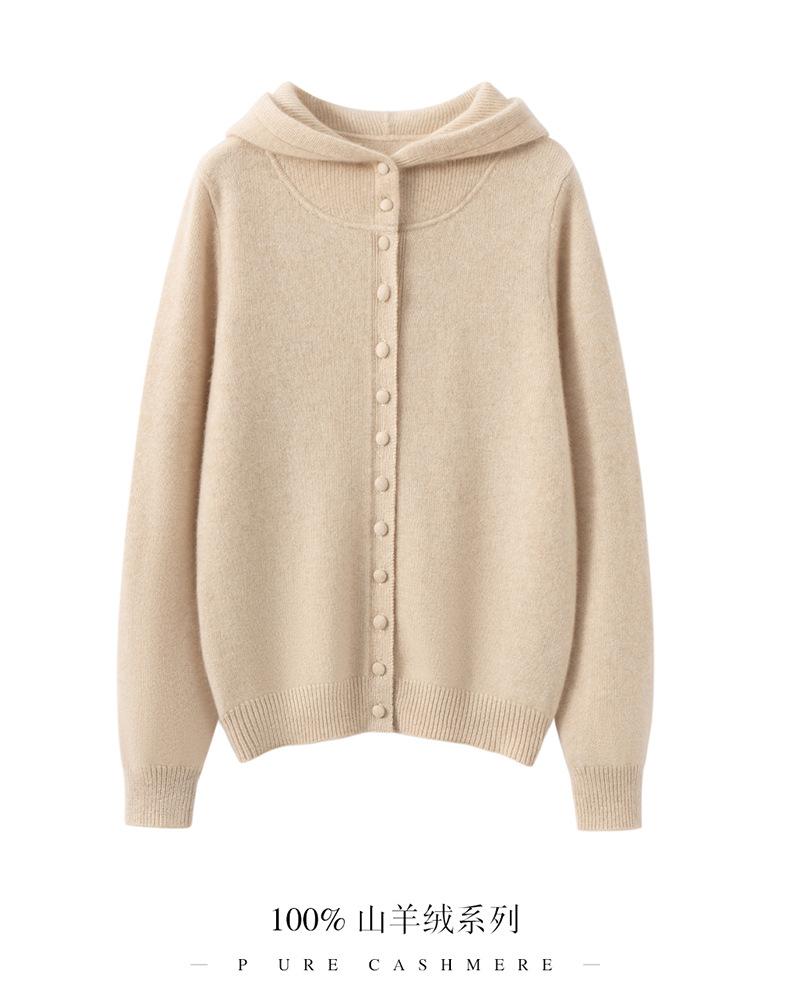 Nuevo Otoño/Invierno 100% Cachemira Pura Casual Suelto Versátil Moda Sencillo Color Sólido Cárdigan Tejido con Capucha Abrigo